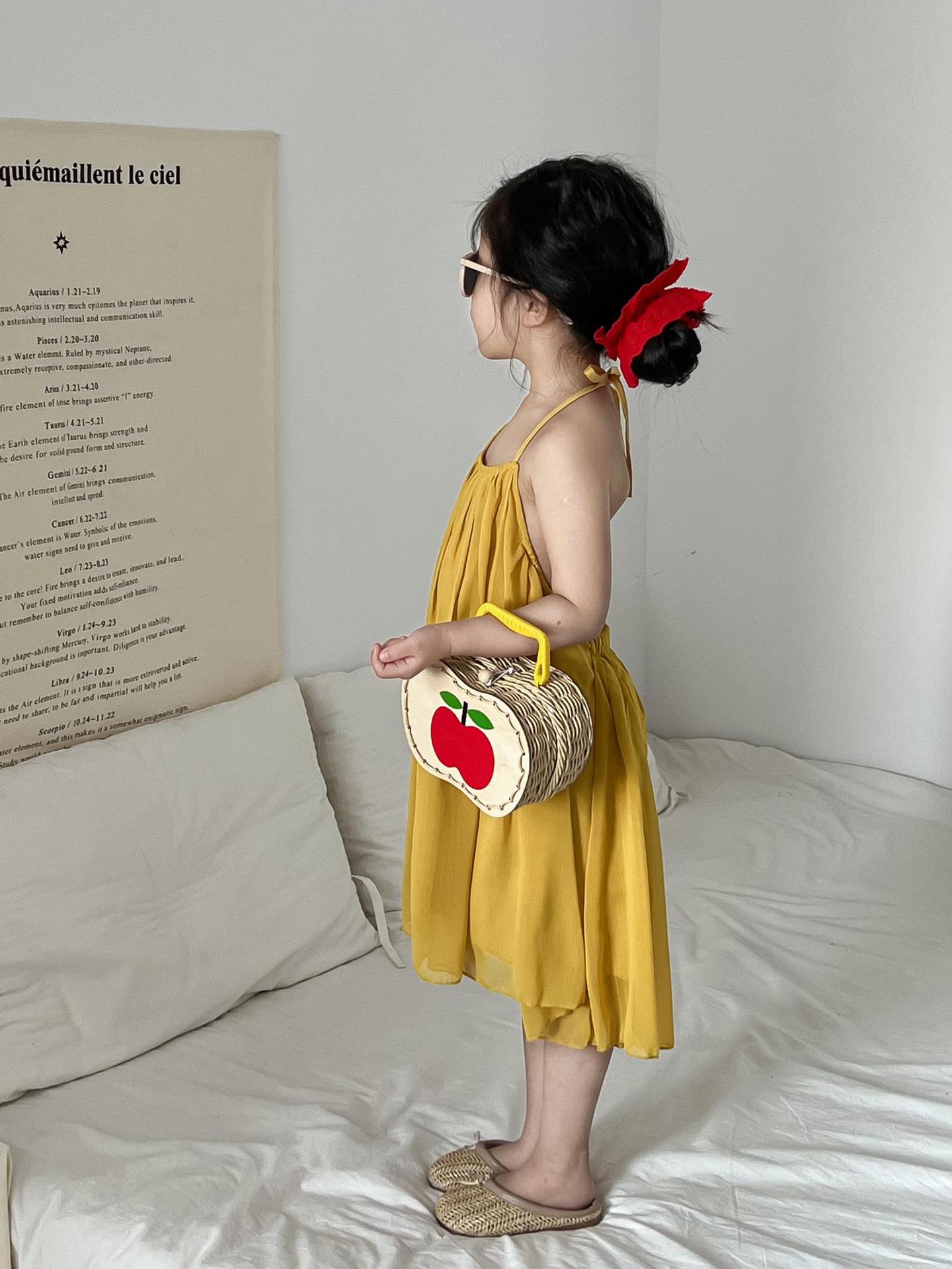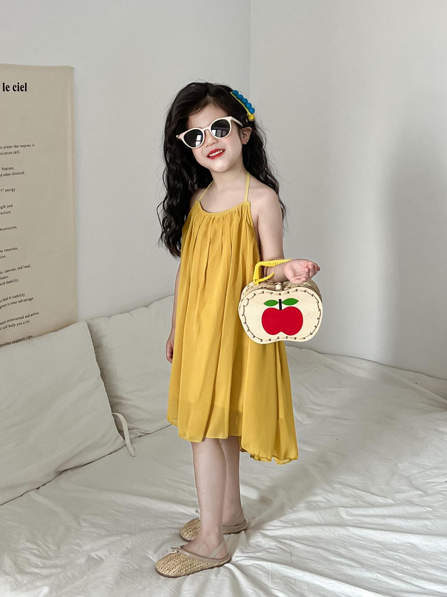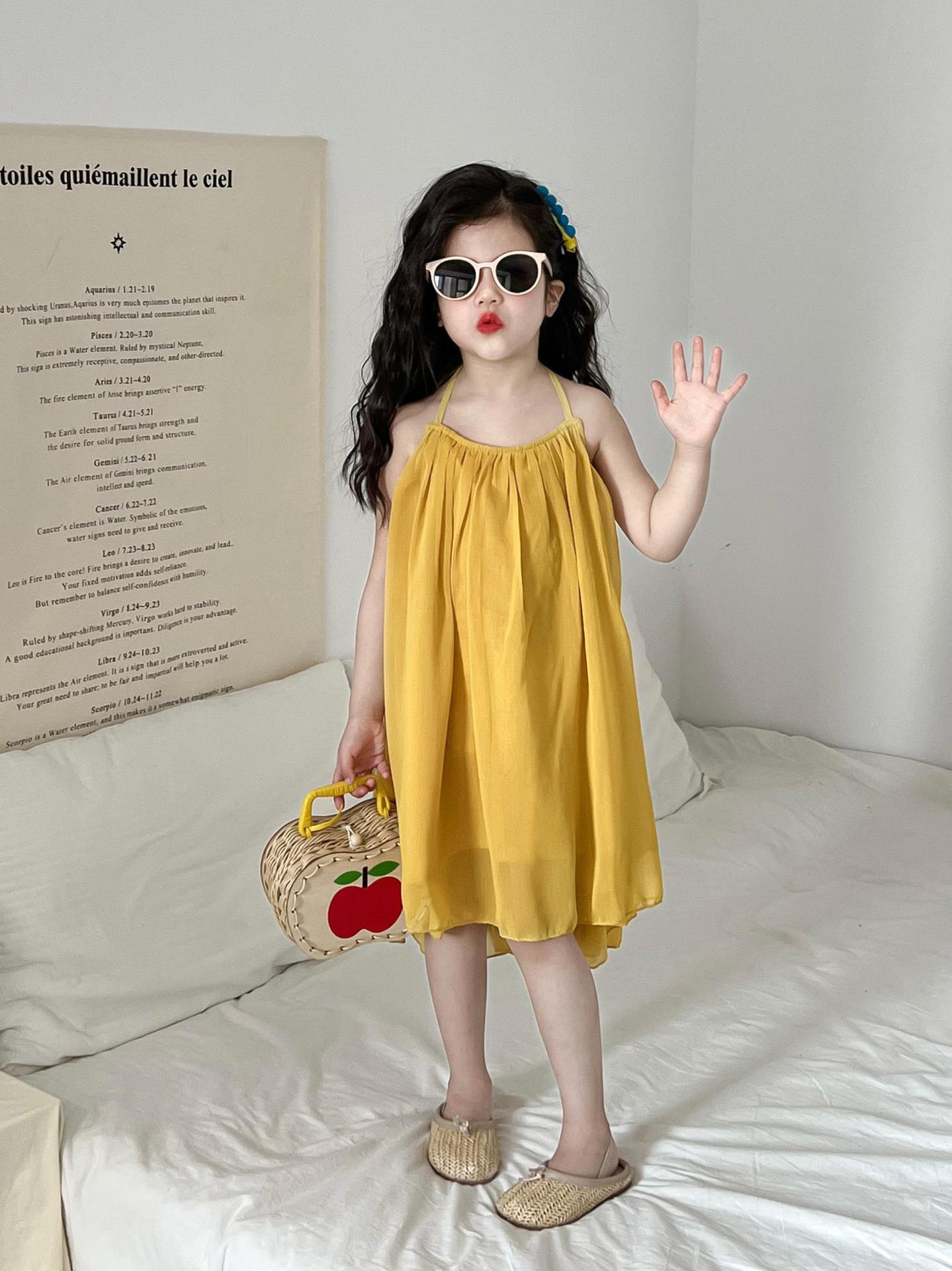 소녀의 여름 우아한 요정 노란색 홀터 배경없는 원피스 분위기 느슨한 해변 해변 슬립 스커트스토어 가기