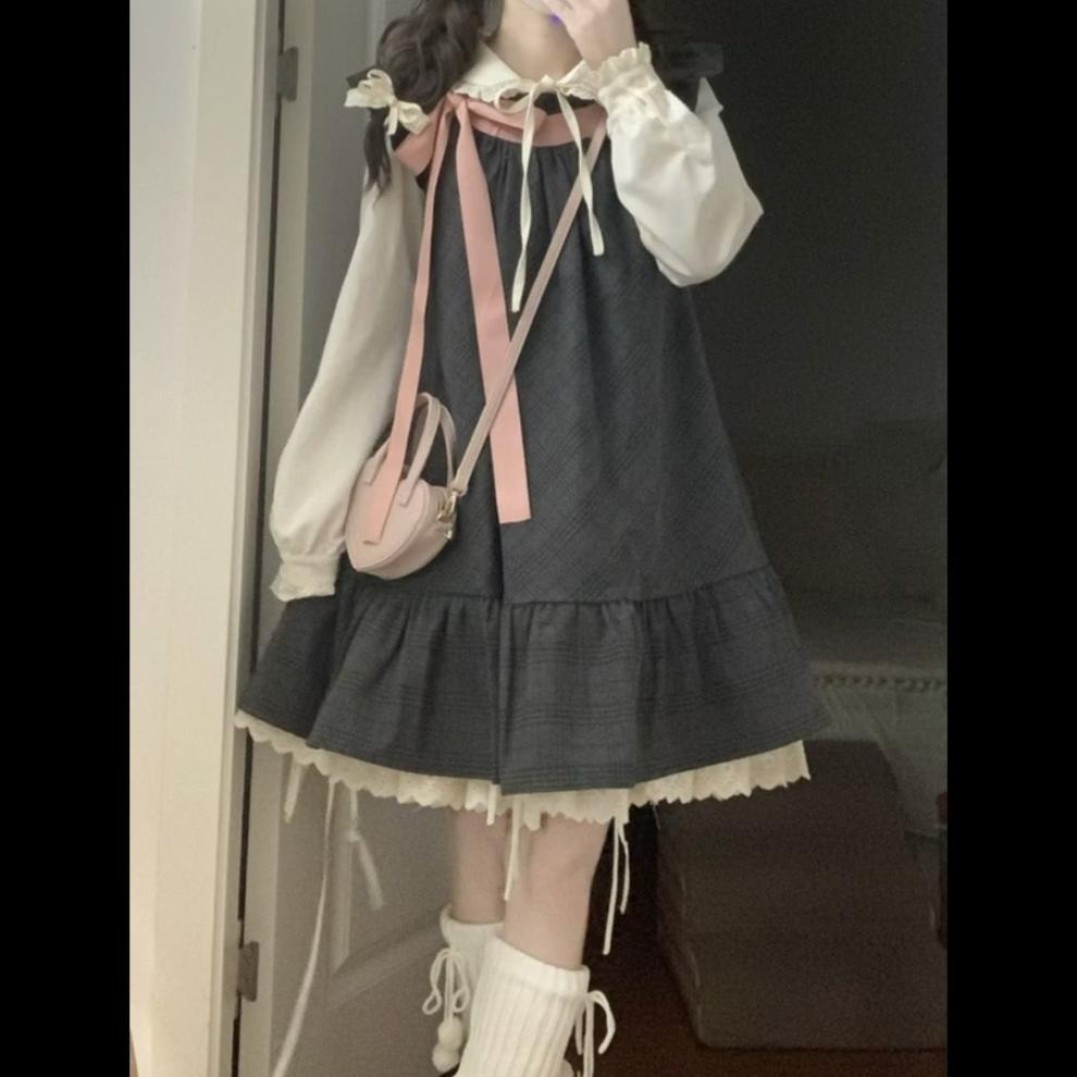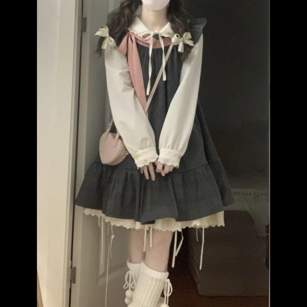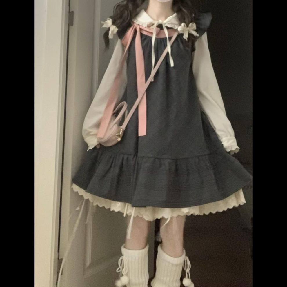 일본 리틀 맨, 귀여운 레이스 인형 칼라 셔츠 첫사랑 올매치 틈새 디자인 감각 원피스 세트