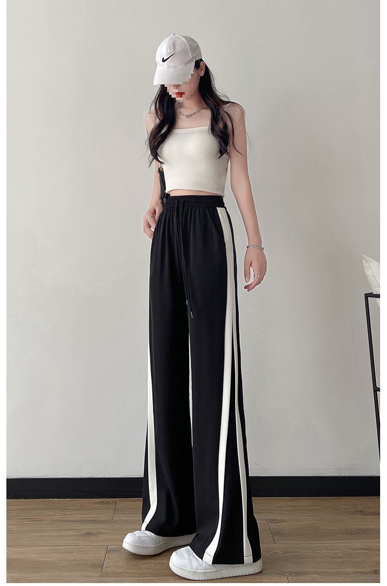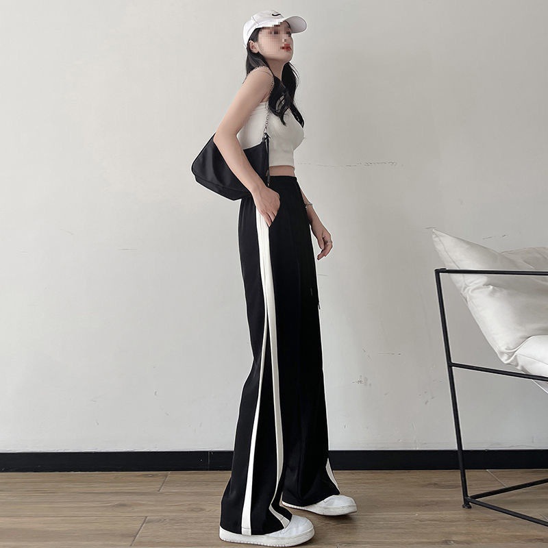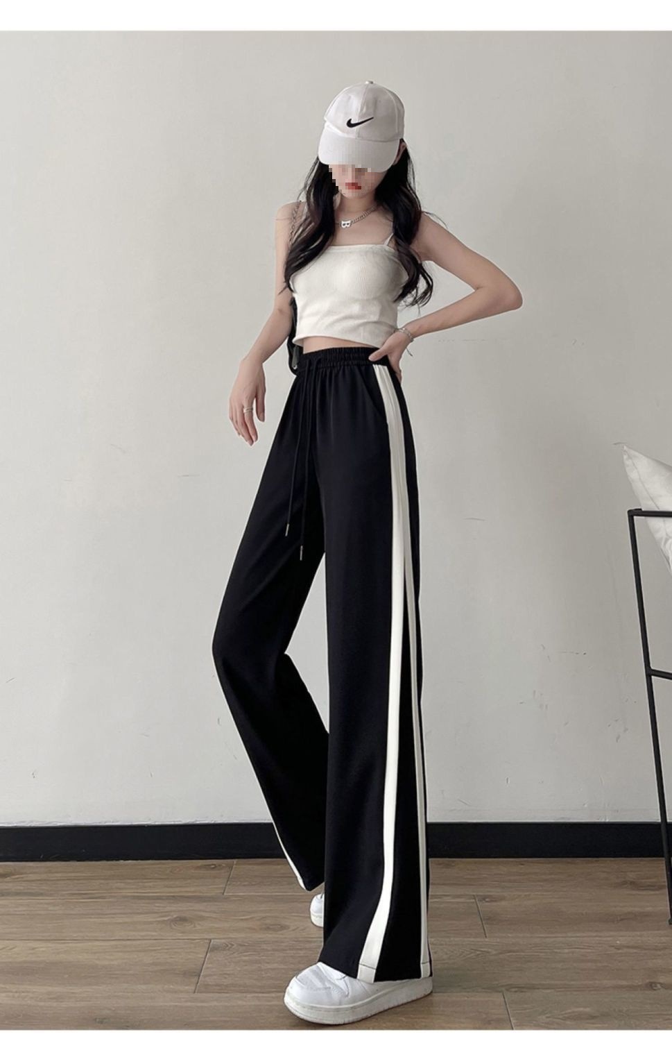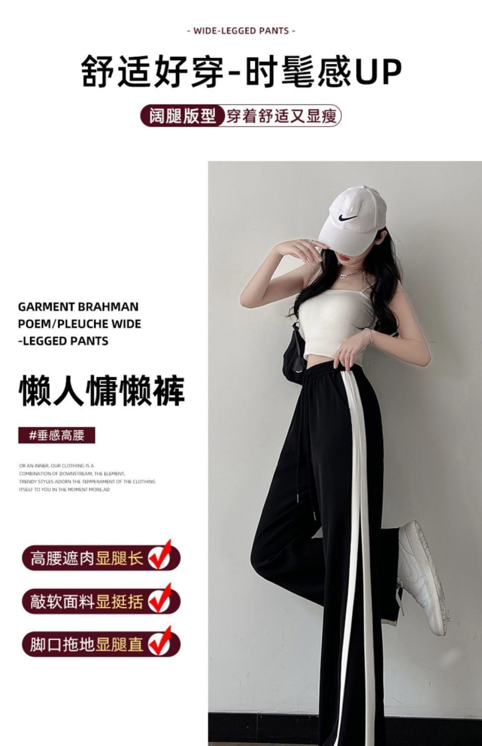 여자 봄과 여름 새 통통녀 플러스 사이즈 블랙 와이드 다리 바지 인스 타 그램 스타일 트렌디 올매치 느슨한 캐주얼 바지