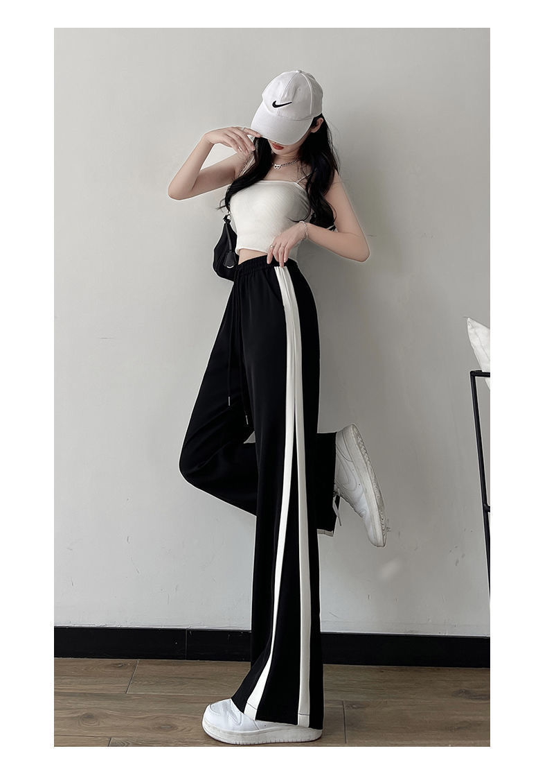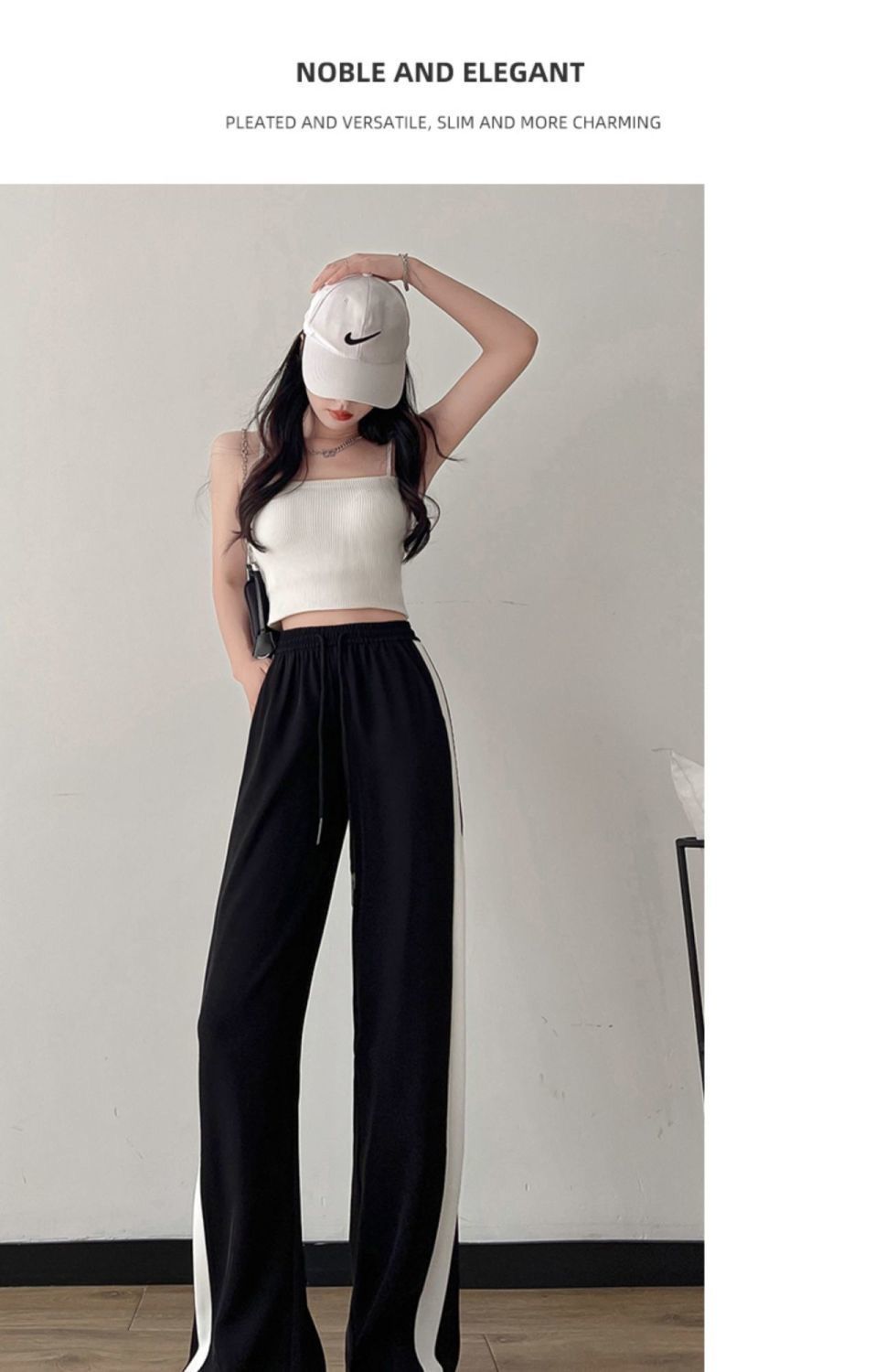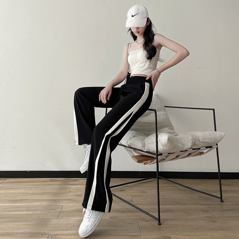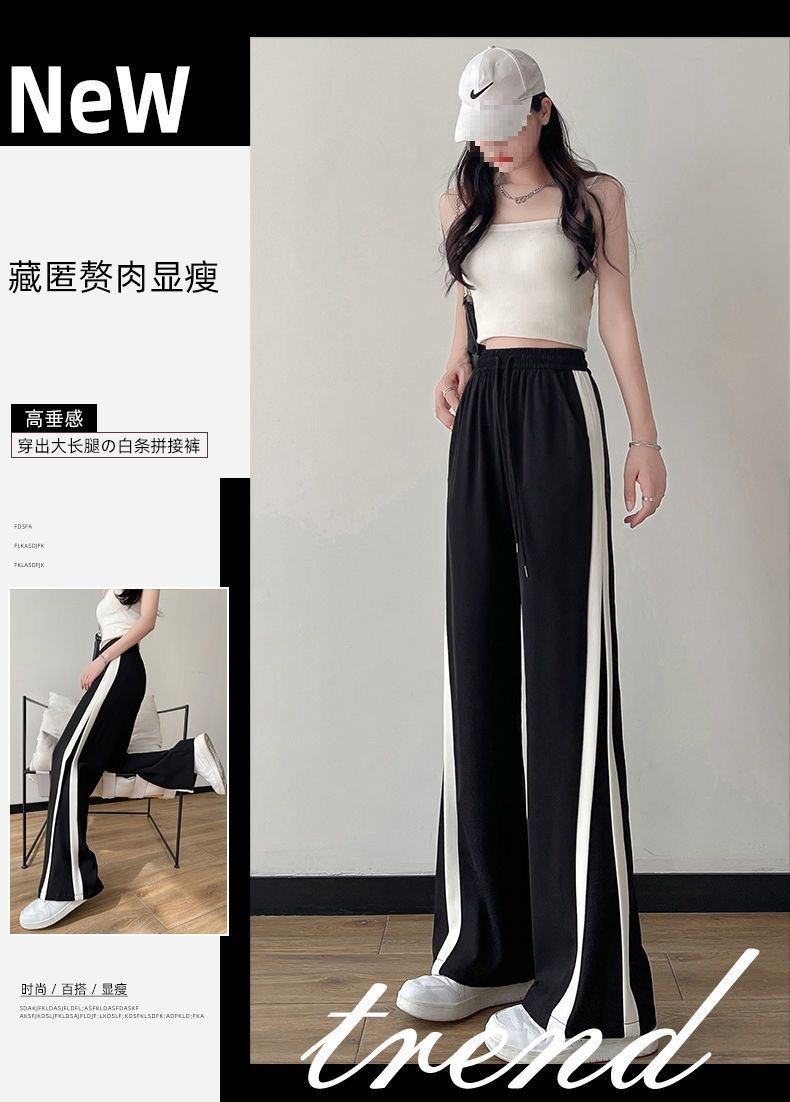 여자 봄과 여름 새 통통녀 플러스 사이즈 블랙 와이드 다리 바지 인스 타 그램 스타일 트렌디 올매치 느슨한 캐주얼 바지