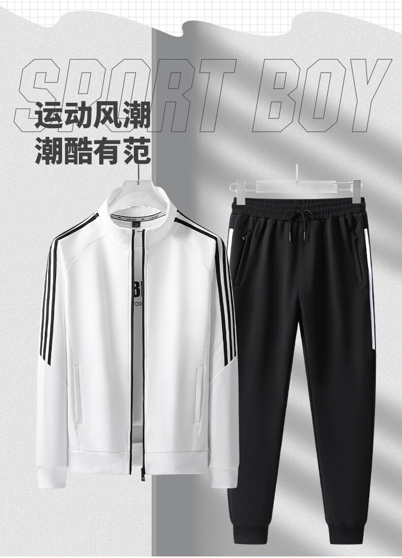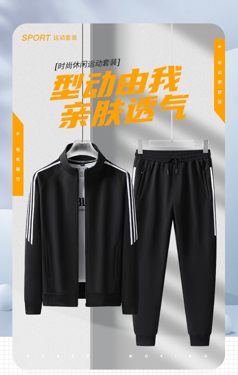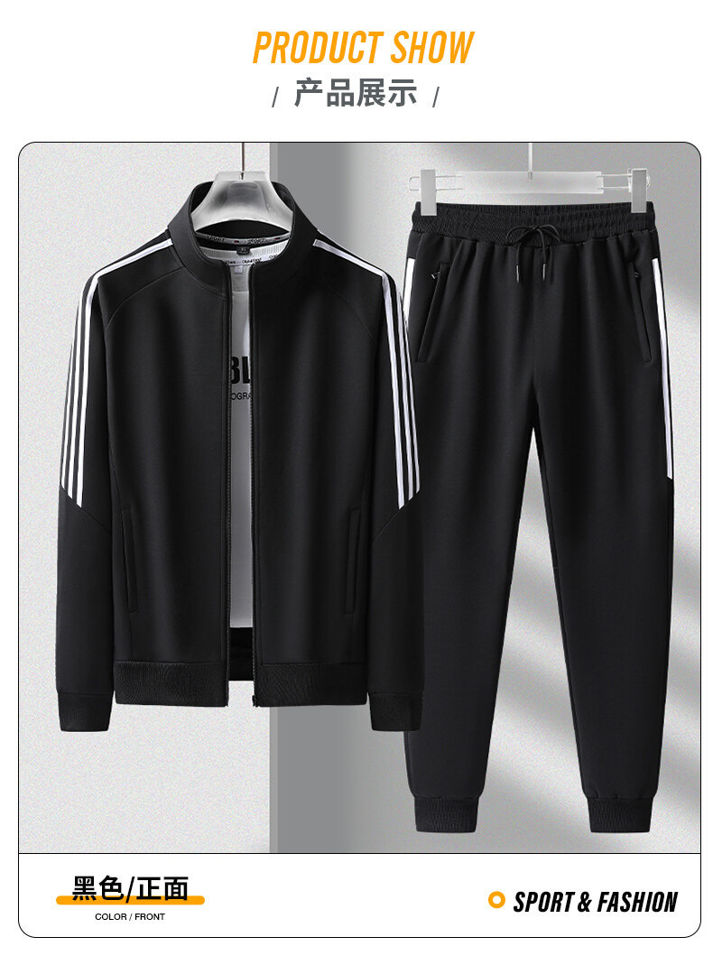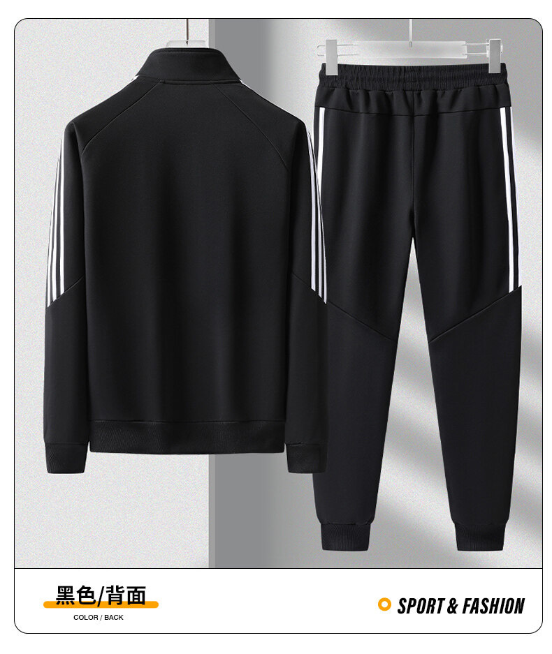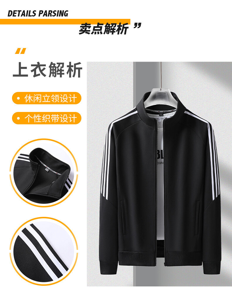 크로스보더 카디건 스타일의 스탠드업 칼라 스웨트셔츠 세트, 남녀공용 아웃도어 스포츠 봄가을 삼선 스트라이프 청년 커플 캐주얼 투피스 세트스토어 가기