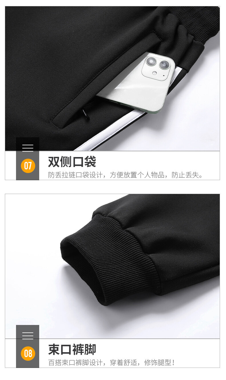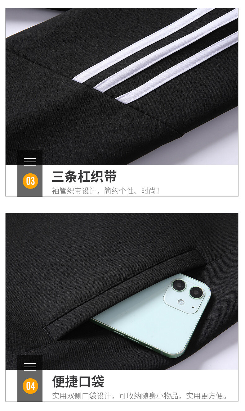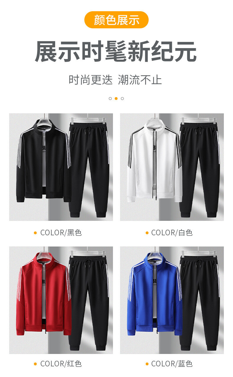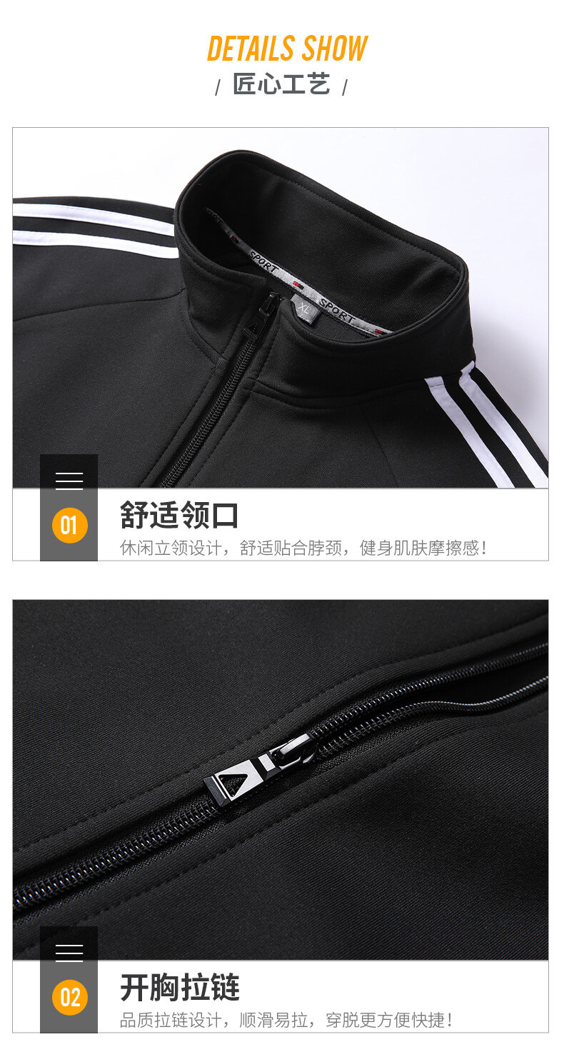 크로스보더 카디건 스타일의 스탠드업 칼라 스웨트셔츠 세트, 남녀공용 아웃도어 스포츠 봄가을 삼선 스트라이프 청년 커플 캐주얼 투피스 세트스토어 가기