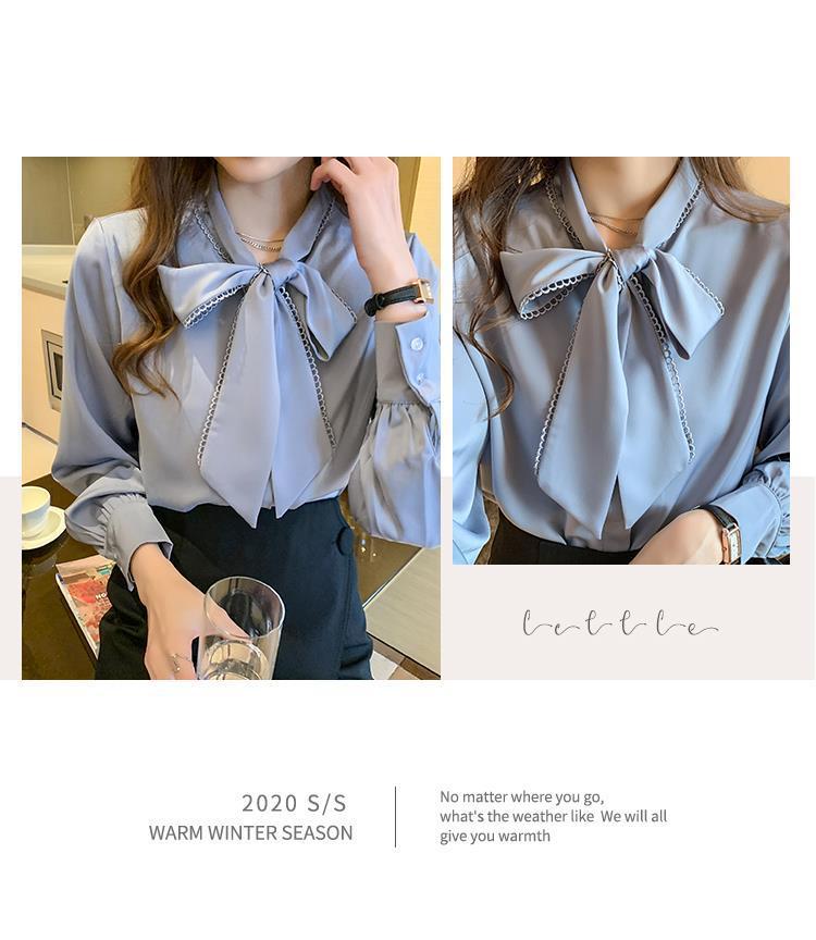 셔츠 여성의 봄과 가을 새로운 한국식 새틴 쉬폰 셔츠 여성용 활 느슨한 긴팔 서양식 셔츠 탑