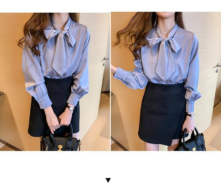 셔츠 여성의 봄과 가을 새로운 한국식 새틴 쉬폰 셔츠 여성용 활 느슨한 긴팔 서양식 셔츠 탑스토어 가기