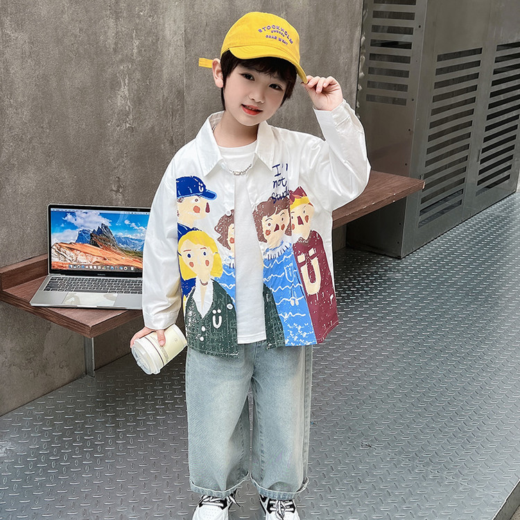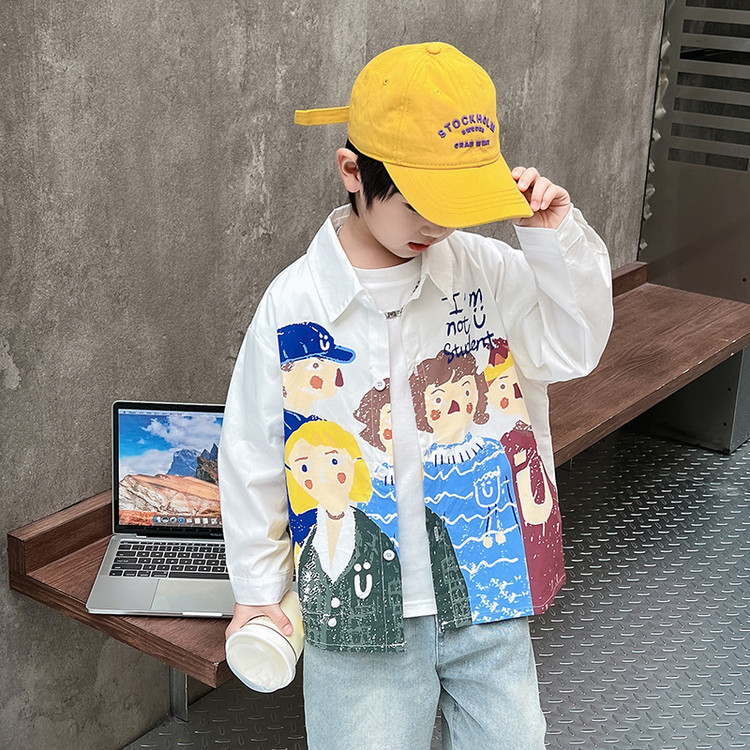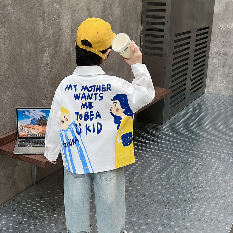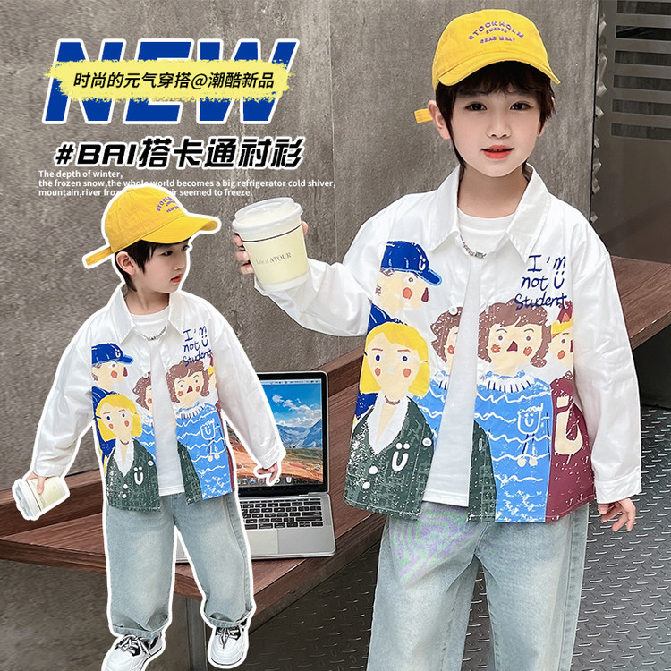 7516 소년 셔츠 코트 봄과 가을 어린이 만화 셔츠 2025 새로운 도착 소년 봄 옷스토어 가기