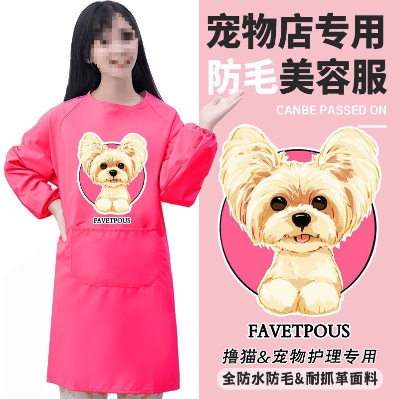 우표 애완 동물 가게 작업 옷 안티 울 스틱 헤어 안티 스플래싱 마스터의 착용 긴 소매 앞치마 인쇄 우표 없음