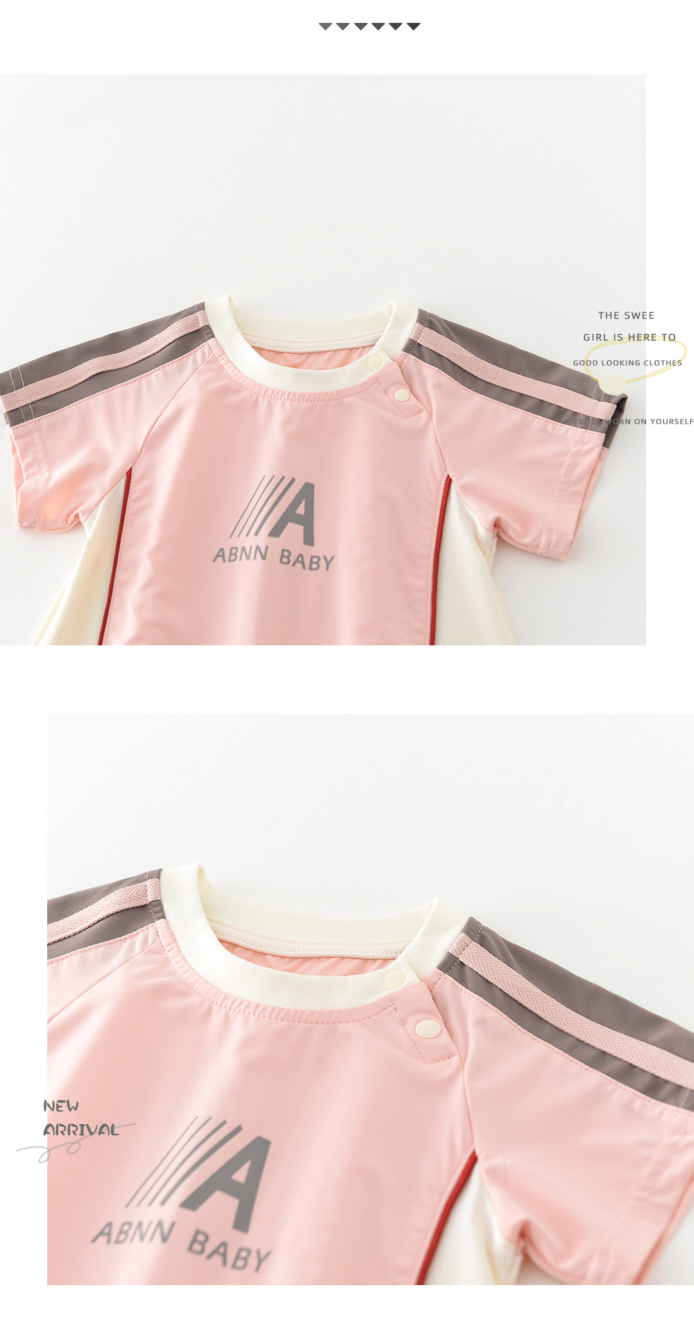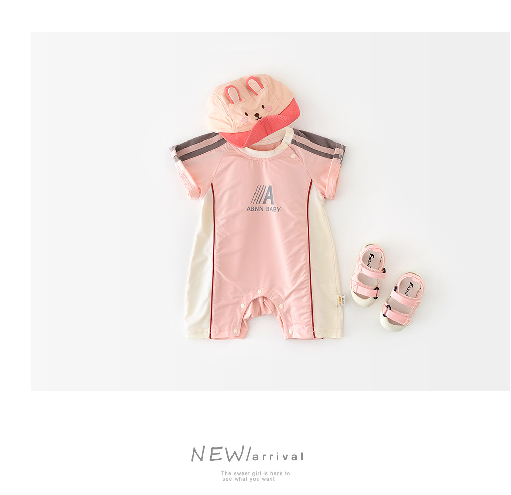 2025秋季新款儿童卡通连身衣 新生儿条纹脱卸领长袖爬服53566