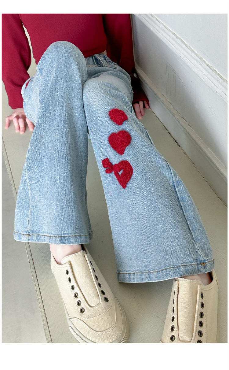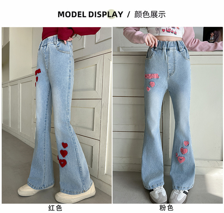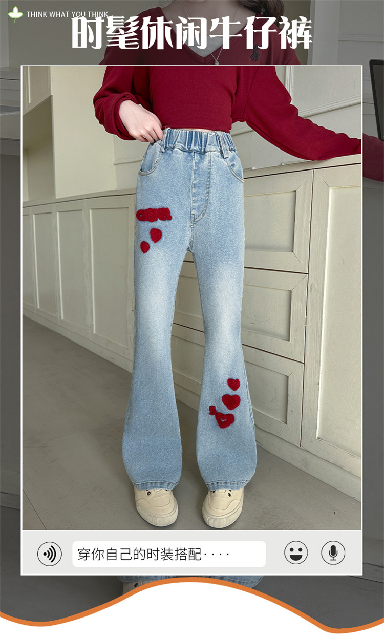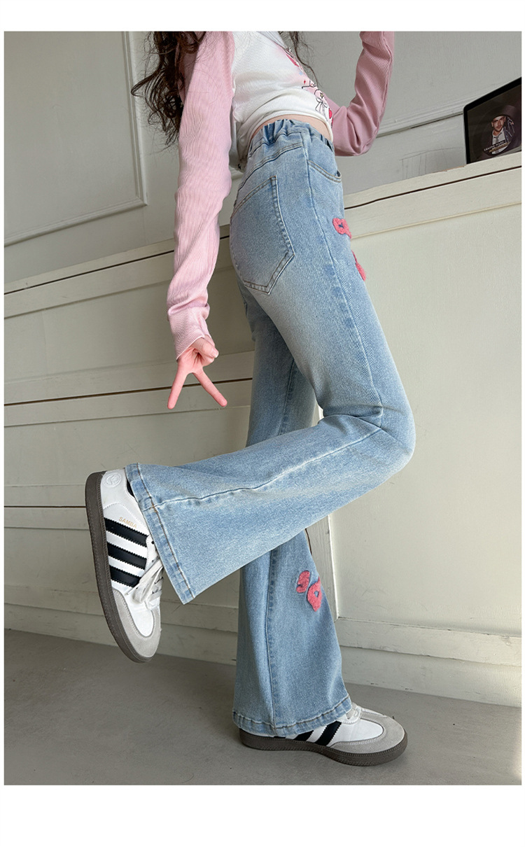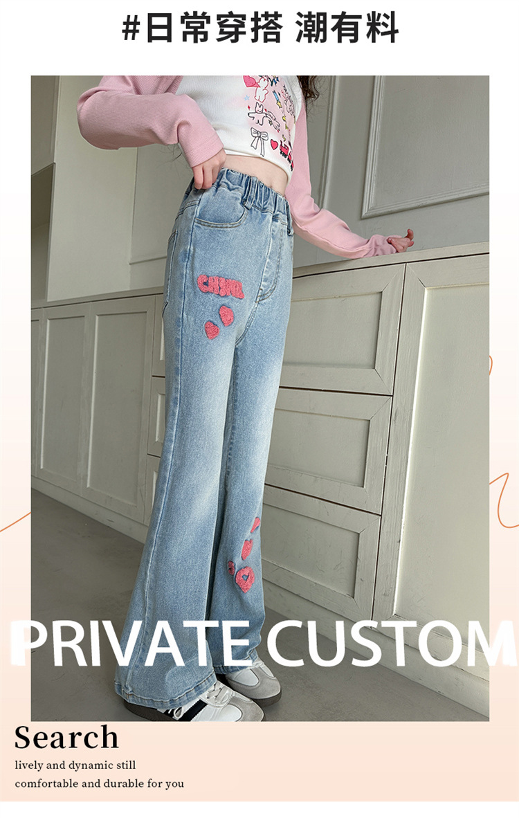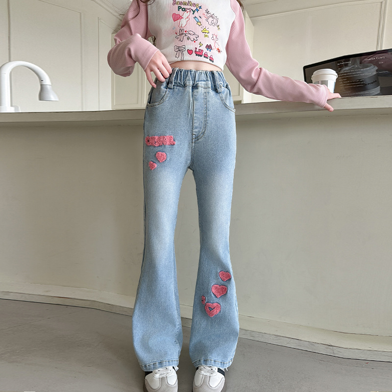 소녀들의 봄과 가을 청바지 소녀들 서양식 유행 봄 바지 어린이 봄 한국 캐주얼 플라 바지스토어 가기