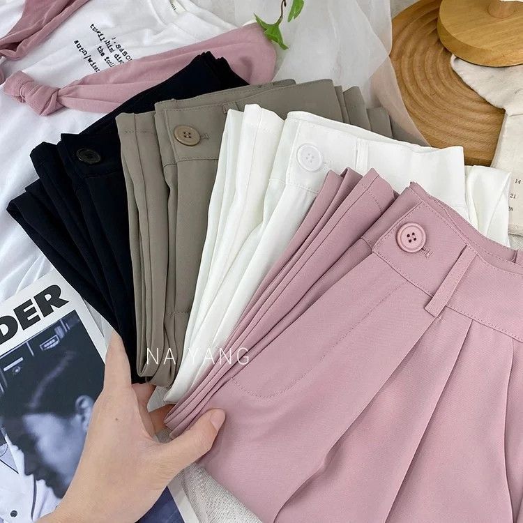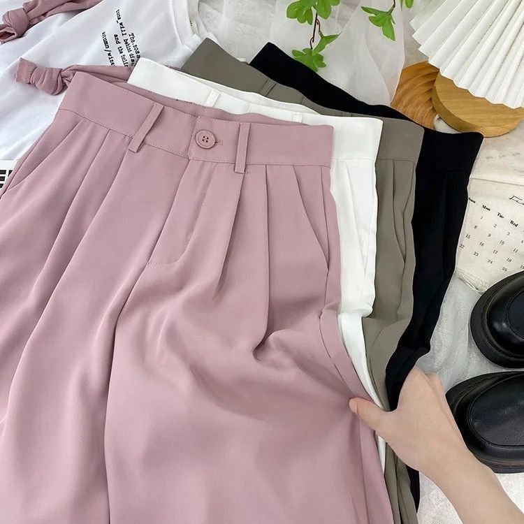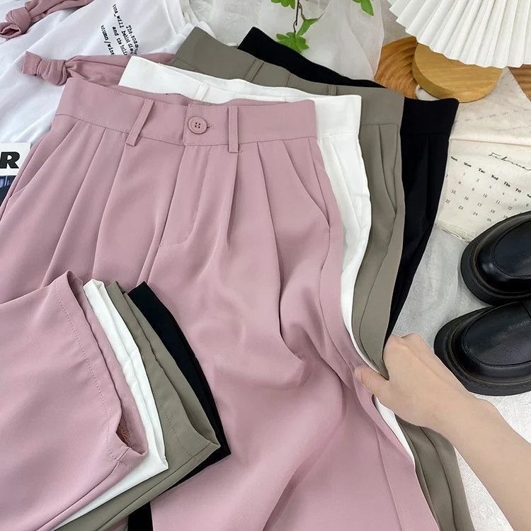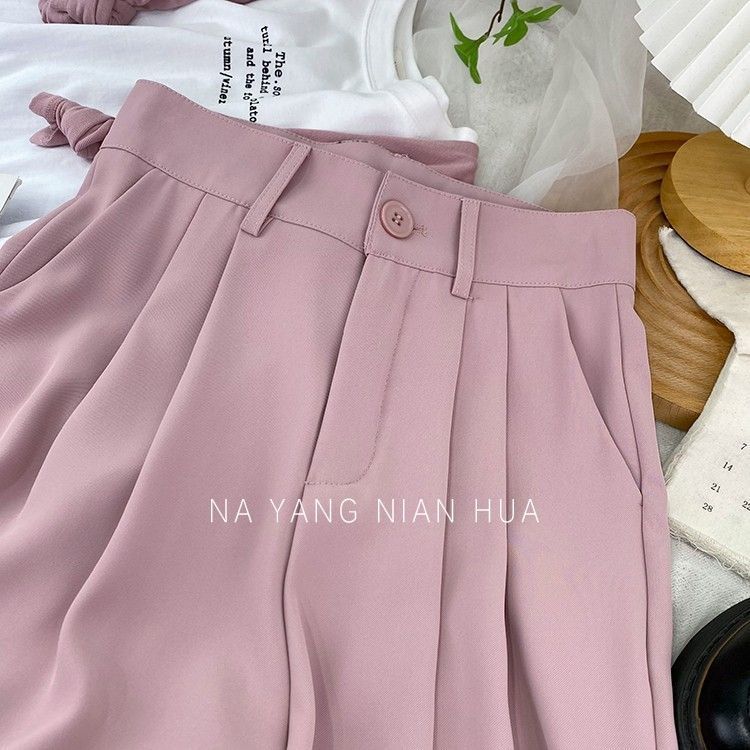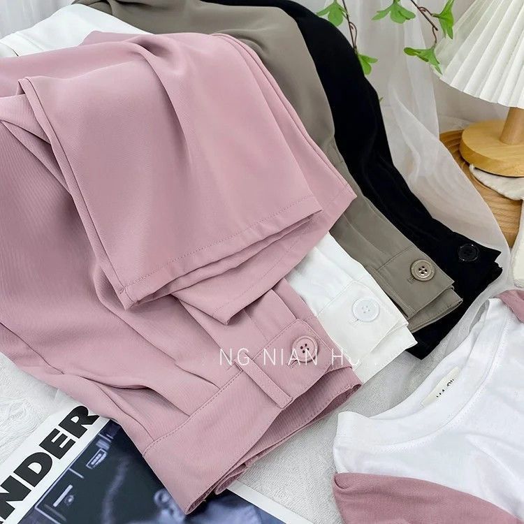 여성의 봄과 여름 새로운 높은 허리 슬리밍 느슨한 얼음 파쇄 담배 바지 캐주얼 스트레이트 작은 바지스토어 가기