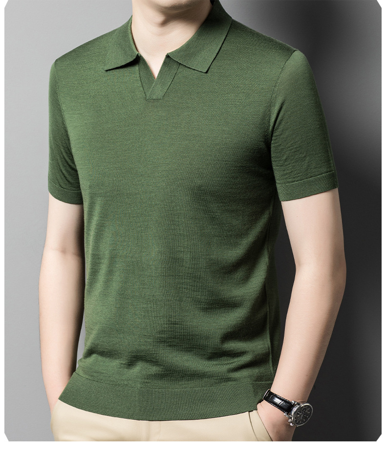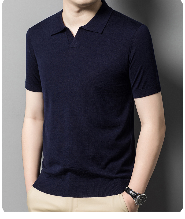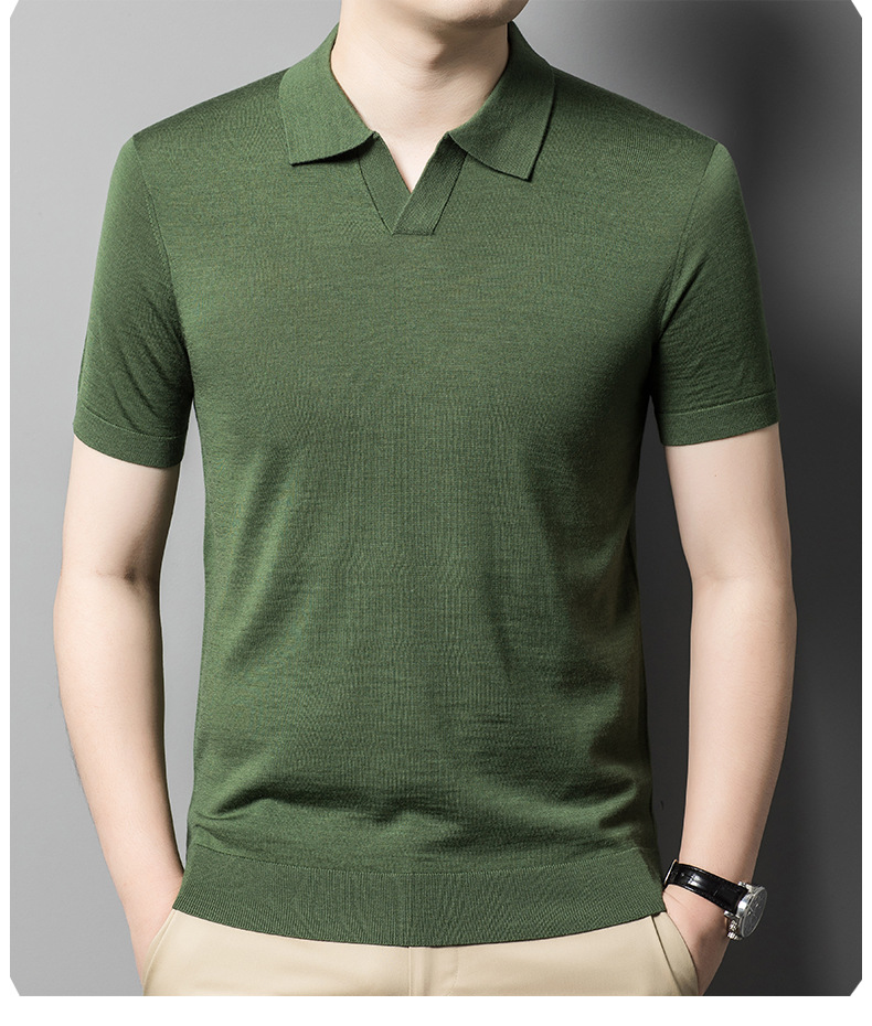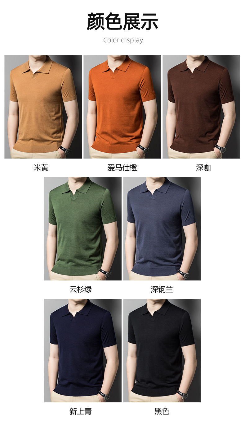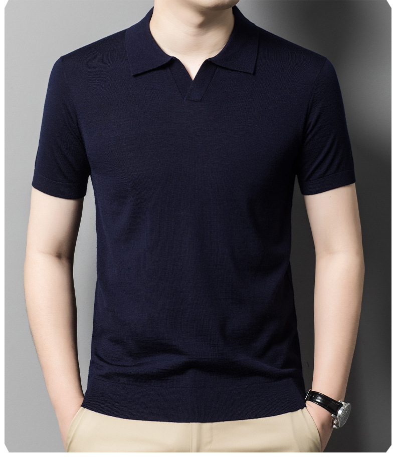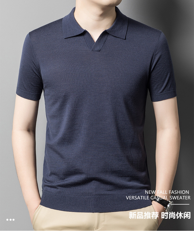 최악의 울 스웨터 남자 반팔 가위 칼라 얇은 스웨터 티셔츠 봄과 여름 솔리드 컬러 랩 반소매 티셔츠스토어 가기