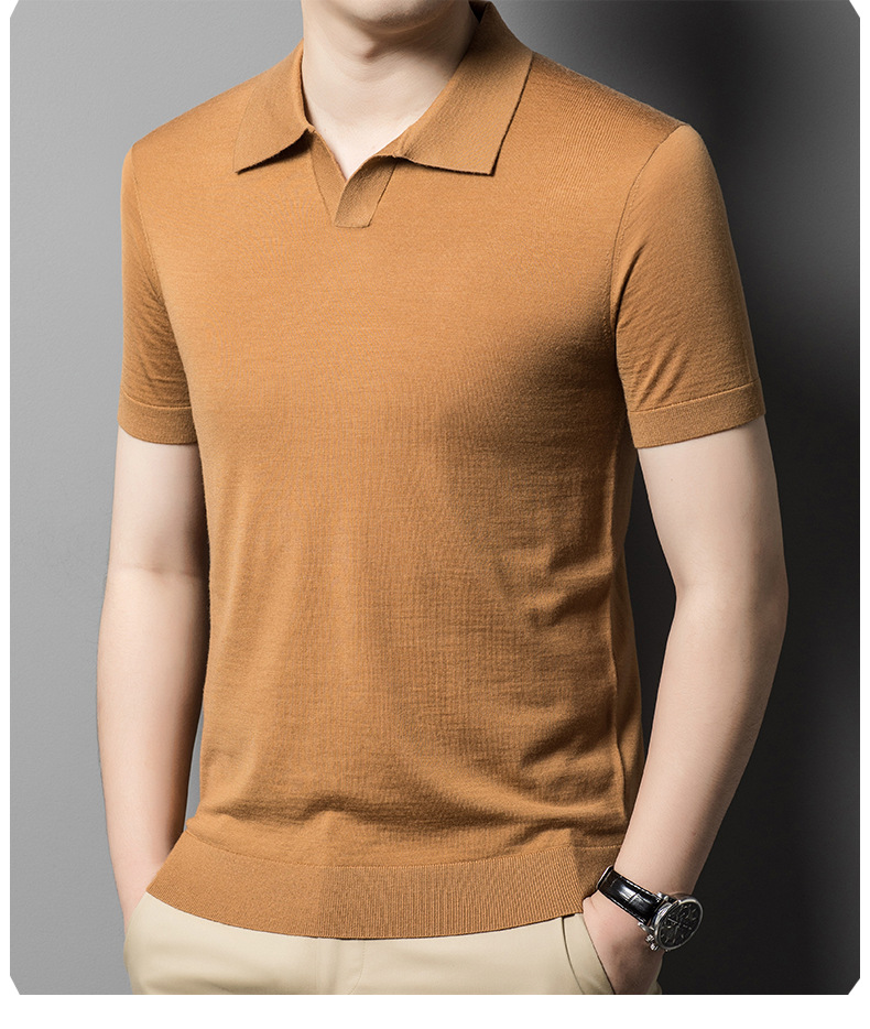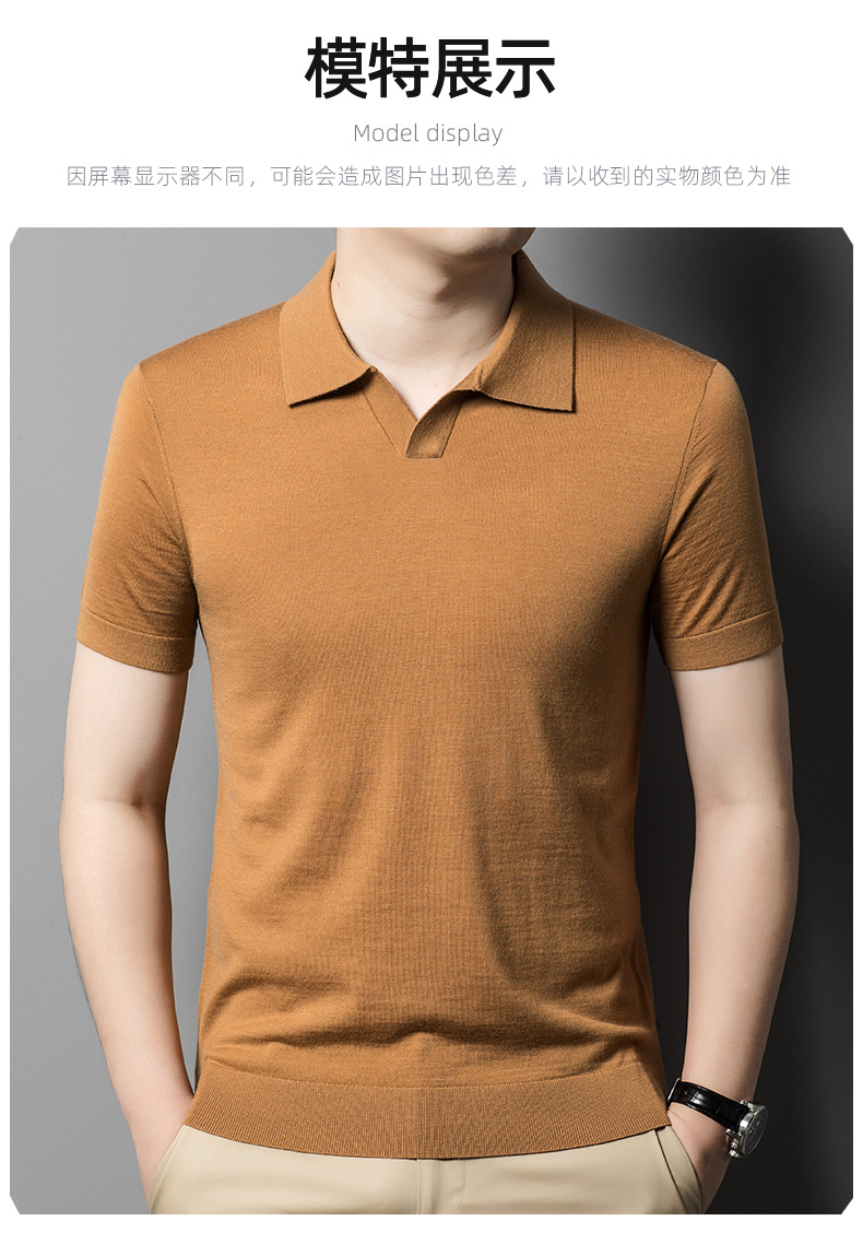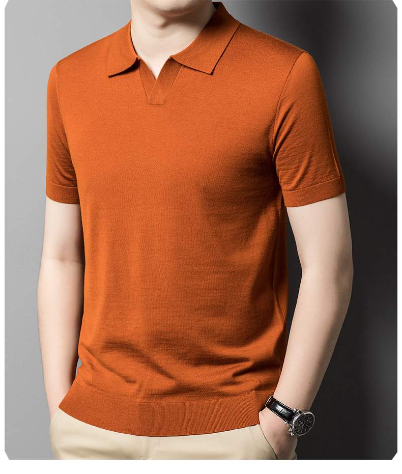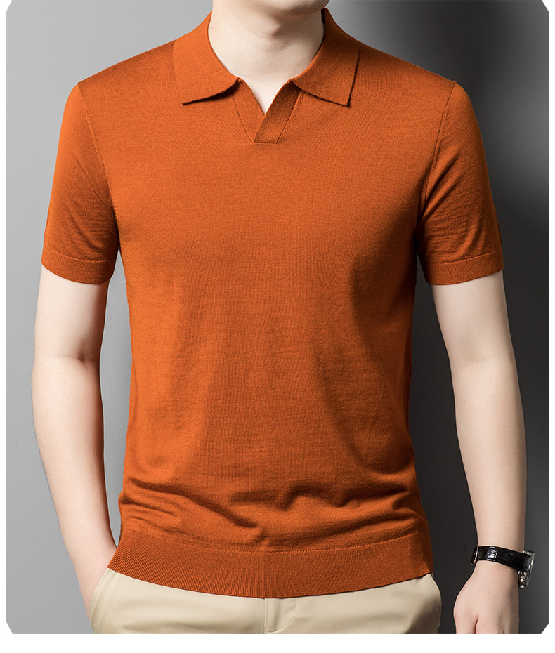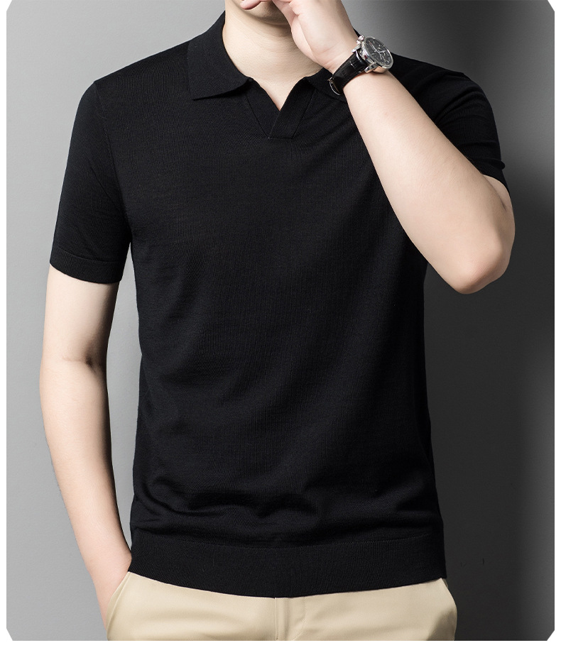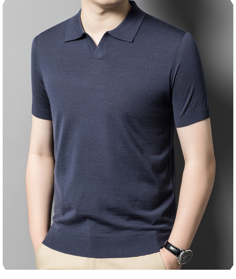 최악의 울 스웨터 남자 반팔 가위 칼라 얇은 스웨터 티셔츠 봄과 여름 솔리드 컬러 랩 반소매 티셔츠스토어 가기