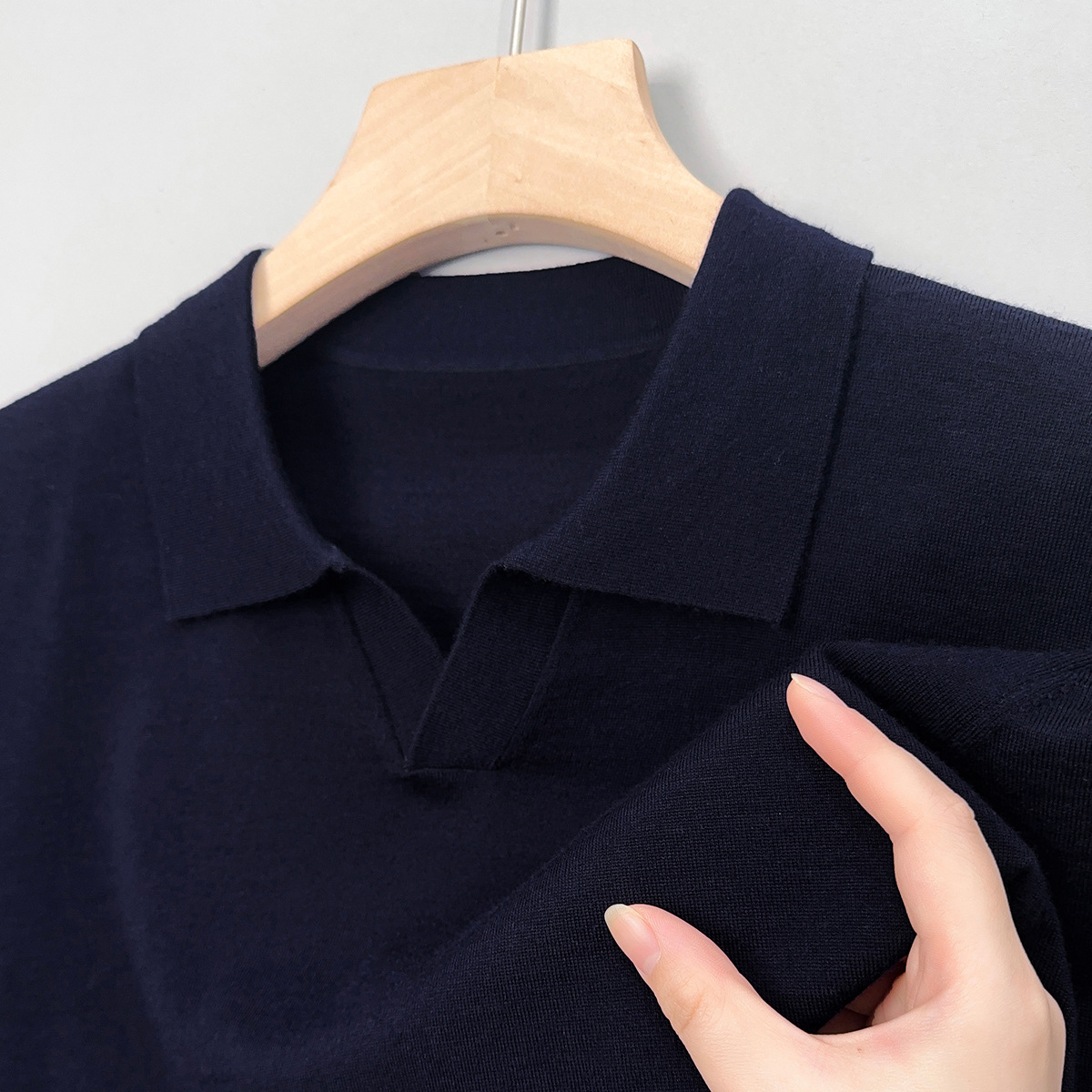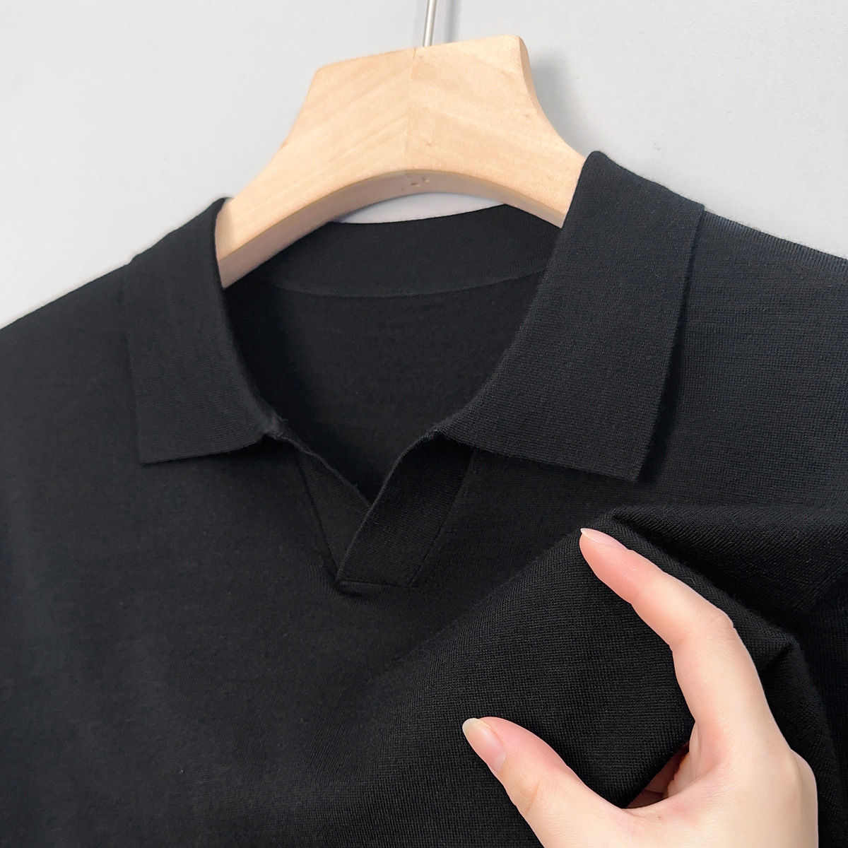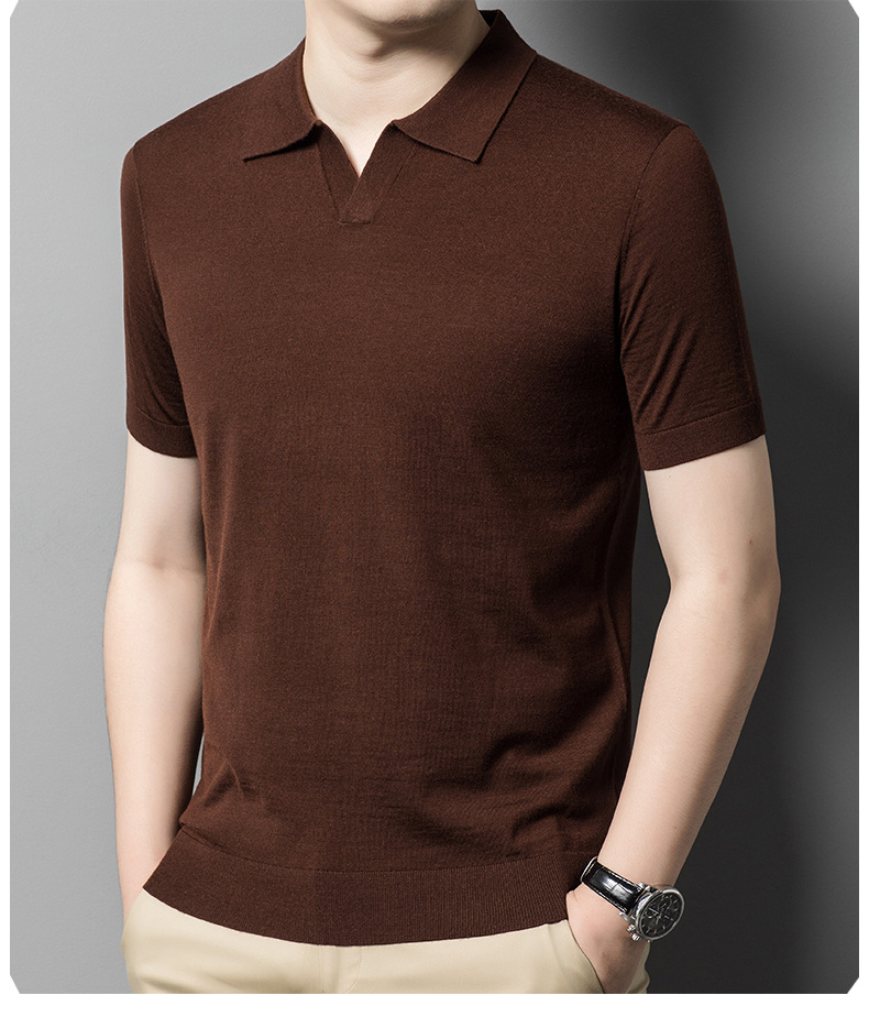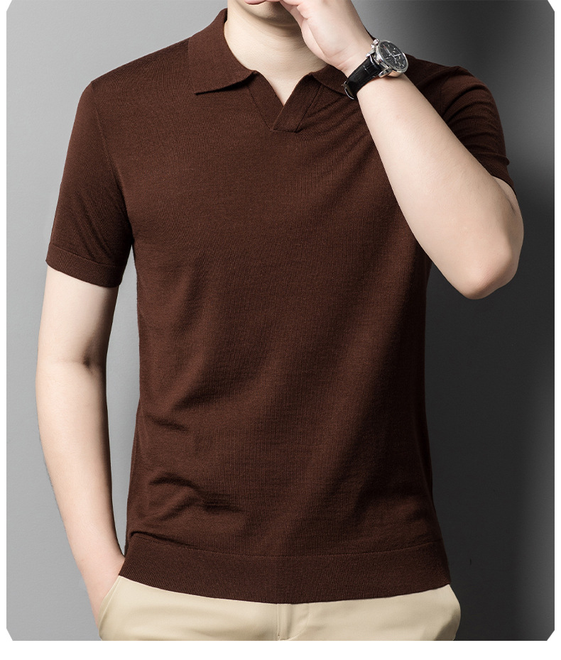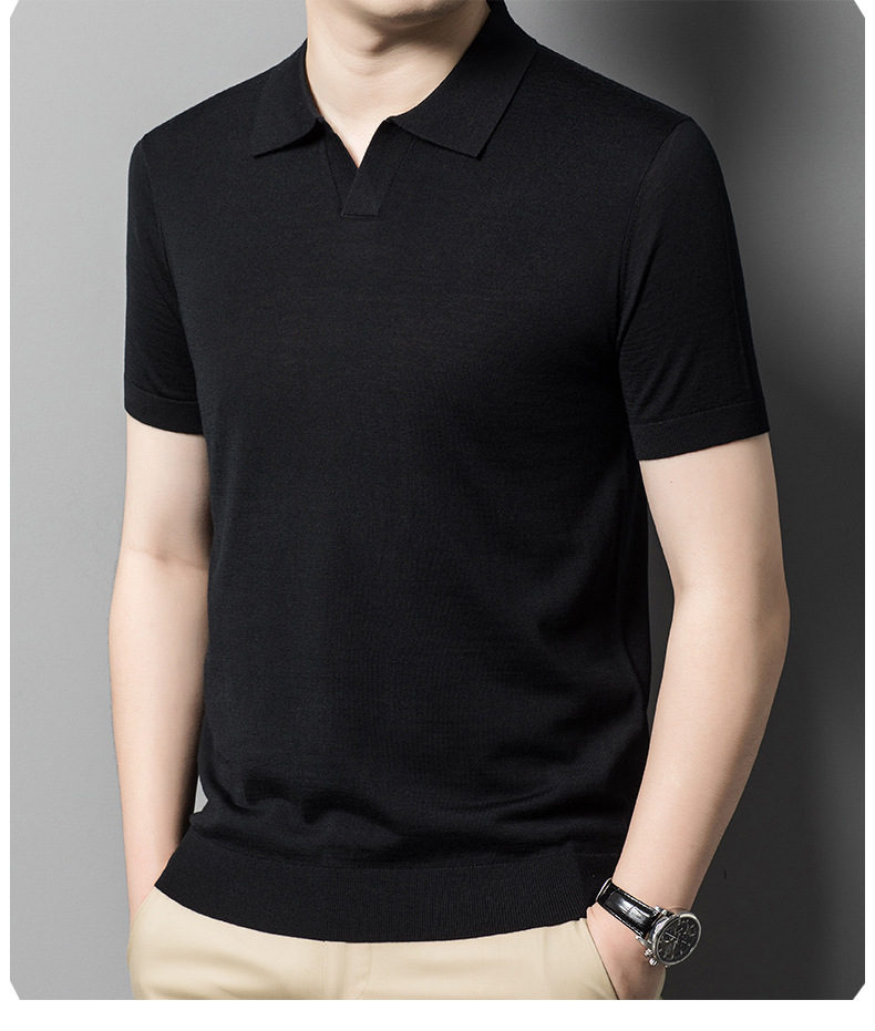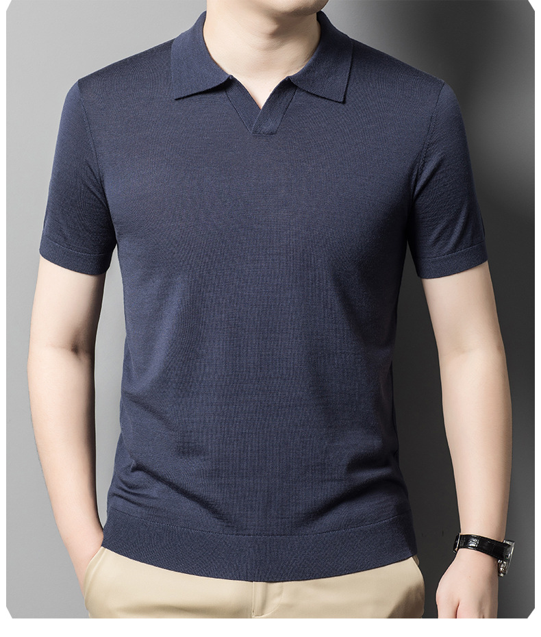 최악의 울 스웨터 남자 반팔 가위 칼라 얇은 스웨터 티셔츠 봄과 여름 솔리드 컬러 랩 반소매 티셔츠스토어 가기