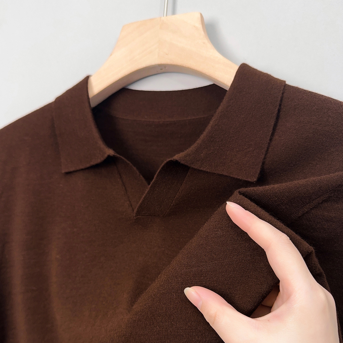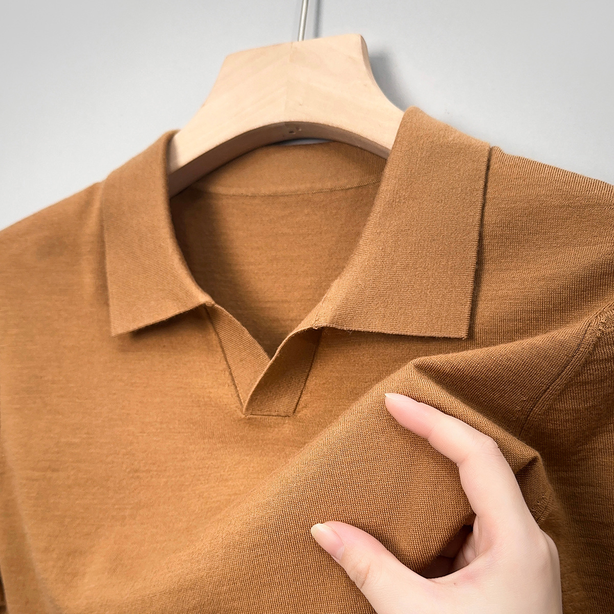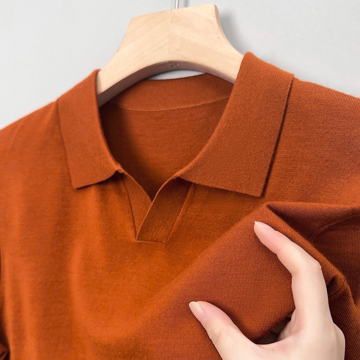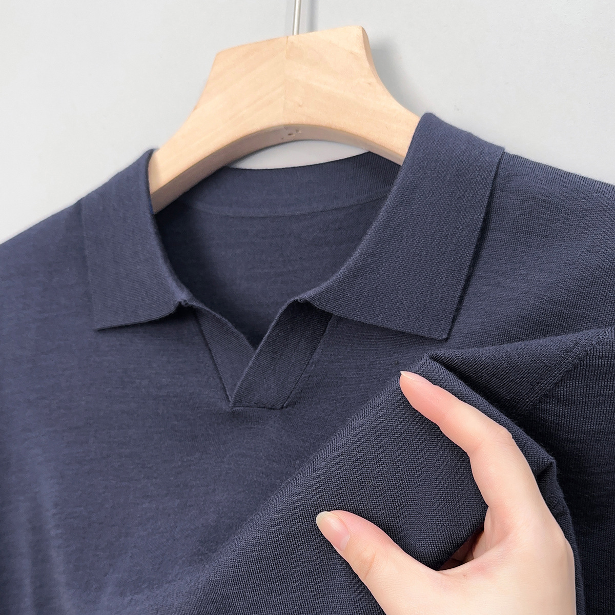 최악의 울 스웨터 남자 반팔 가위 칼라 얇은 스웨터 티셔츠 봄과 여름 솔리드 컬러 랩 반소매 티셔츠스토어 가기