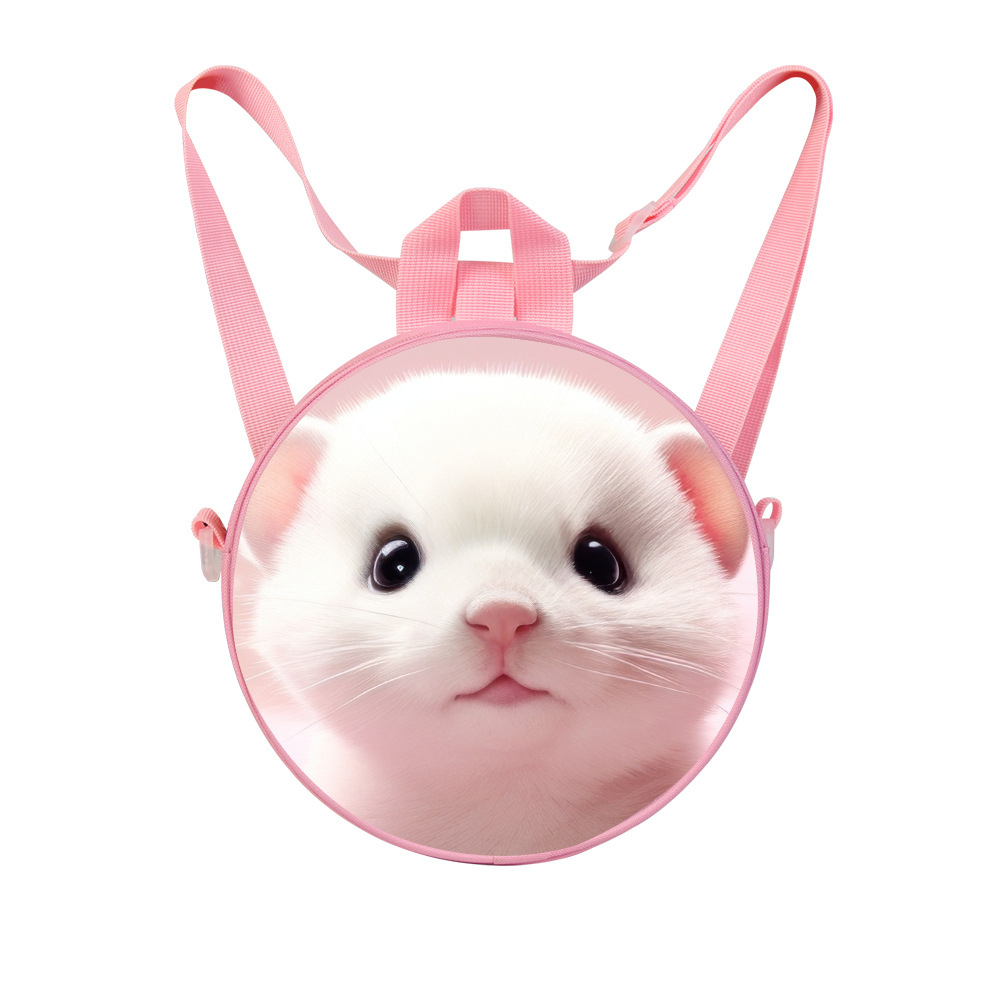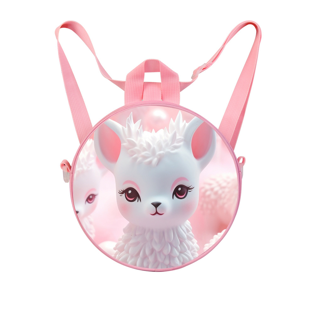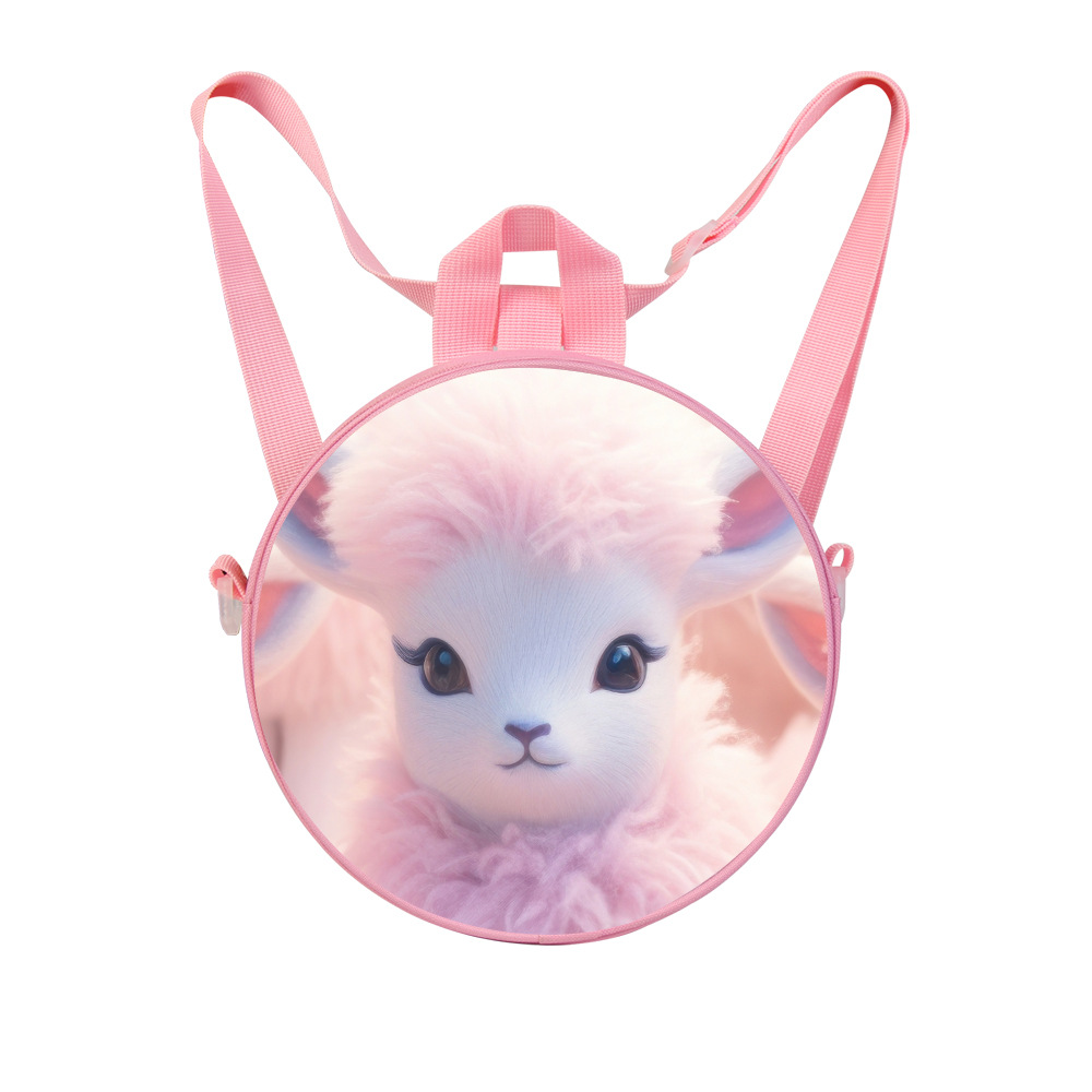새로운 작은 라운드 가방 국경 2025 여성 가방 귀여운 동물 핑크 인쇄 폴리 에스테르 배낭 어린이 가방