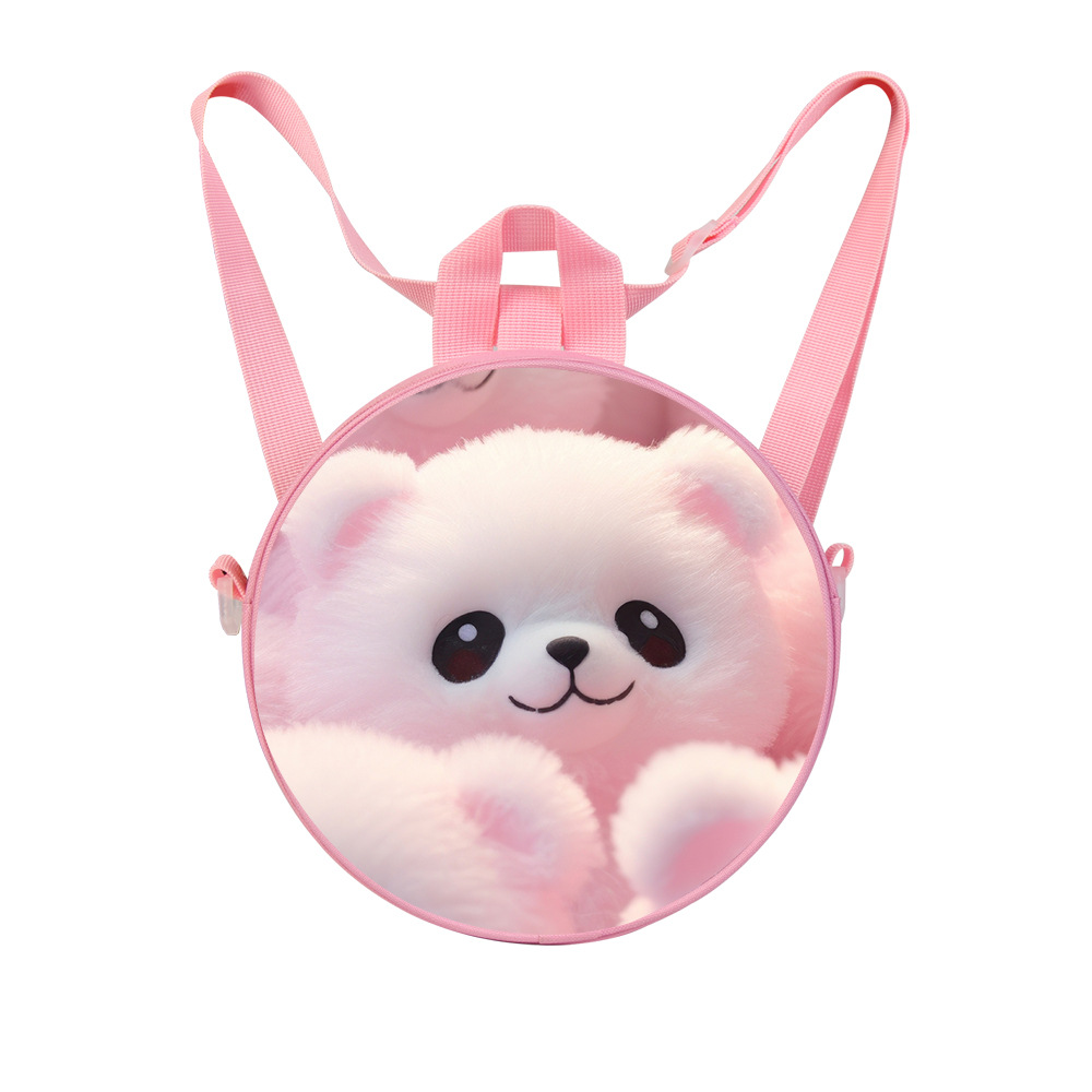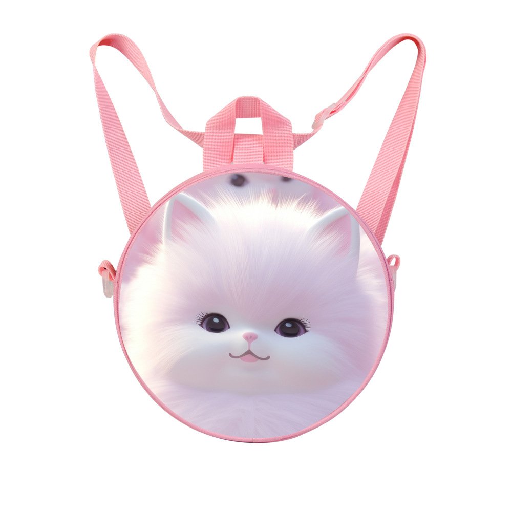 새로운 작은 라운드 가방 국경 2025 여성 가방 귀여운 동물 핑크 인쇄 폴리 에스테르 배낭 어린이 가방스토어 가기
