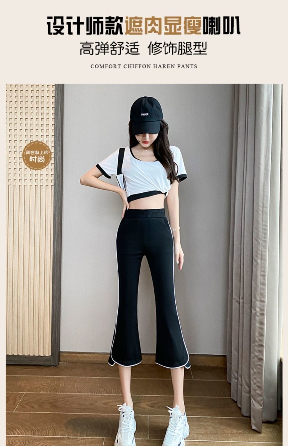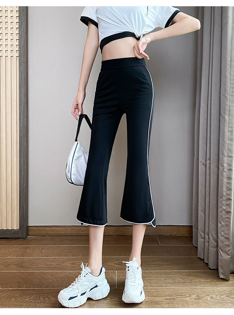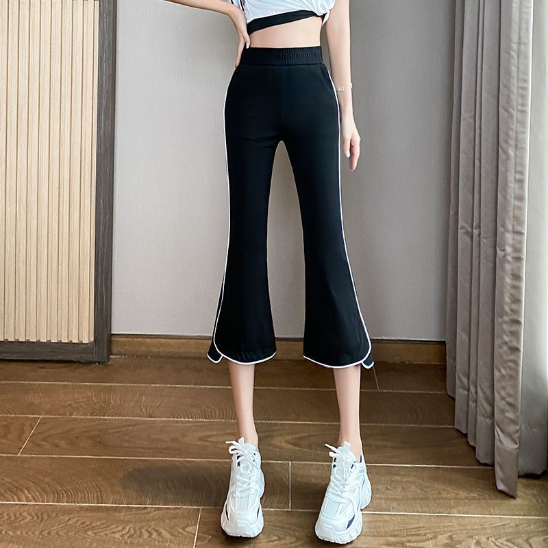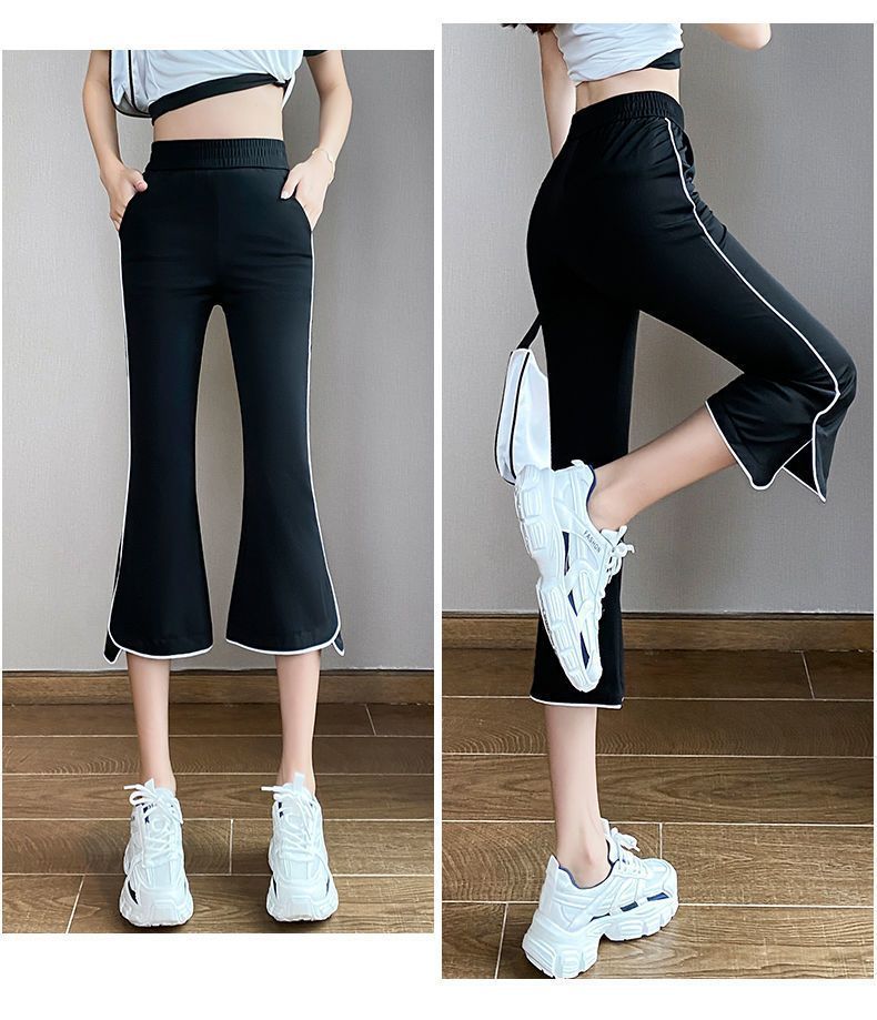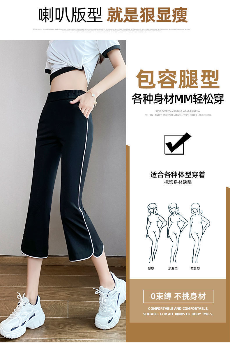 플러스 사이즈 자른 바지 여자 여름 얇은 높은 허리 슬리밍 작은 캐주얼 분할 마이크로 혼 스포츠 바지스토어 가기