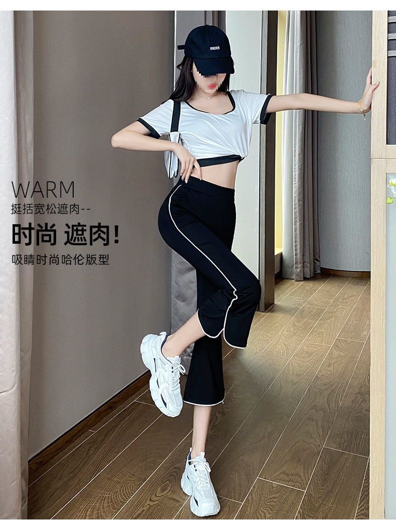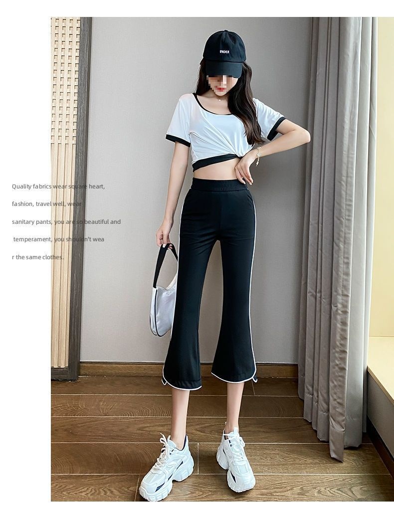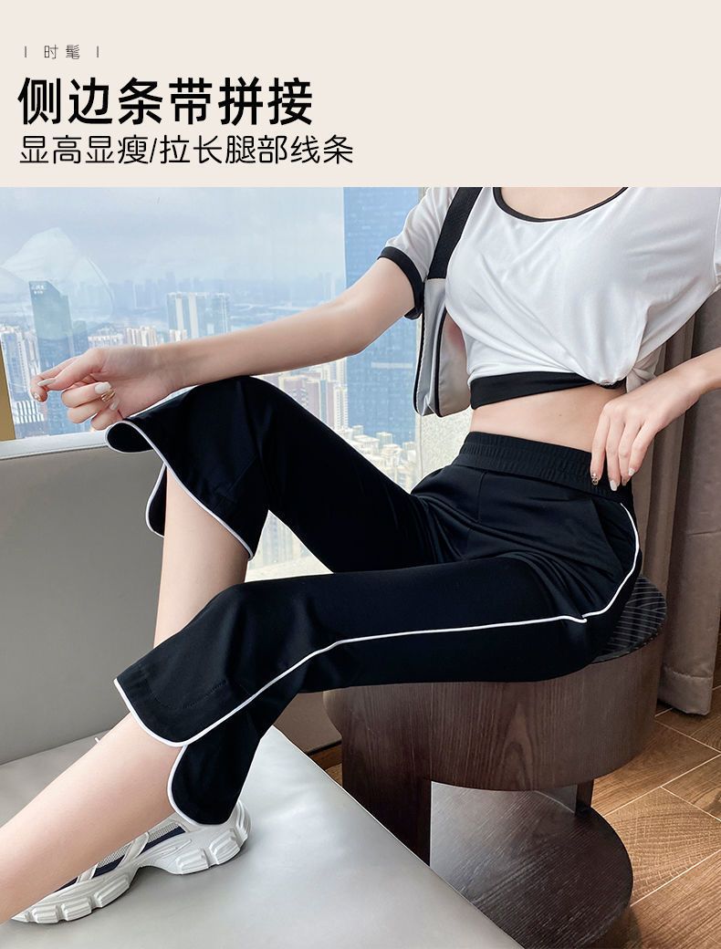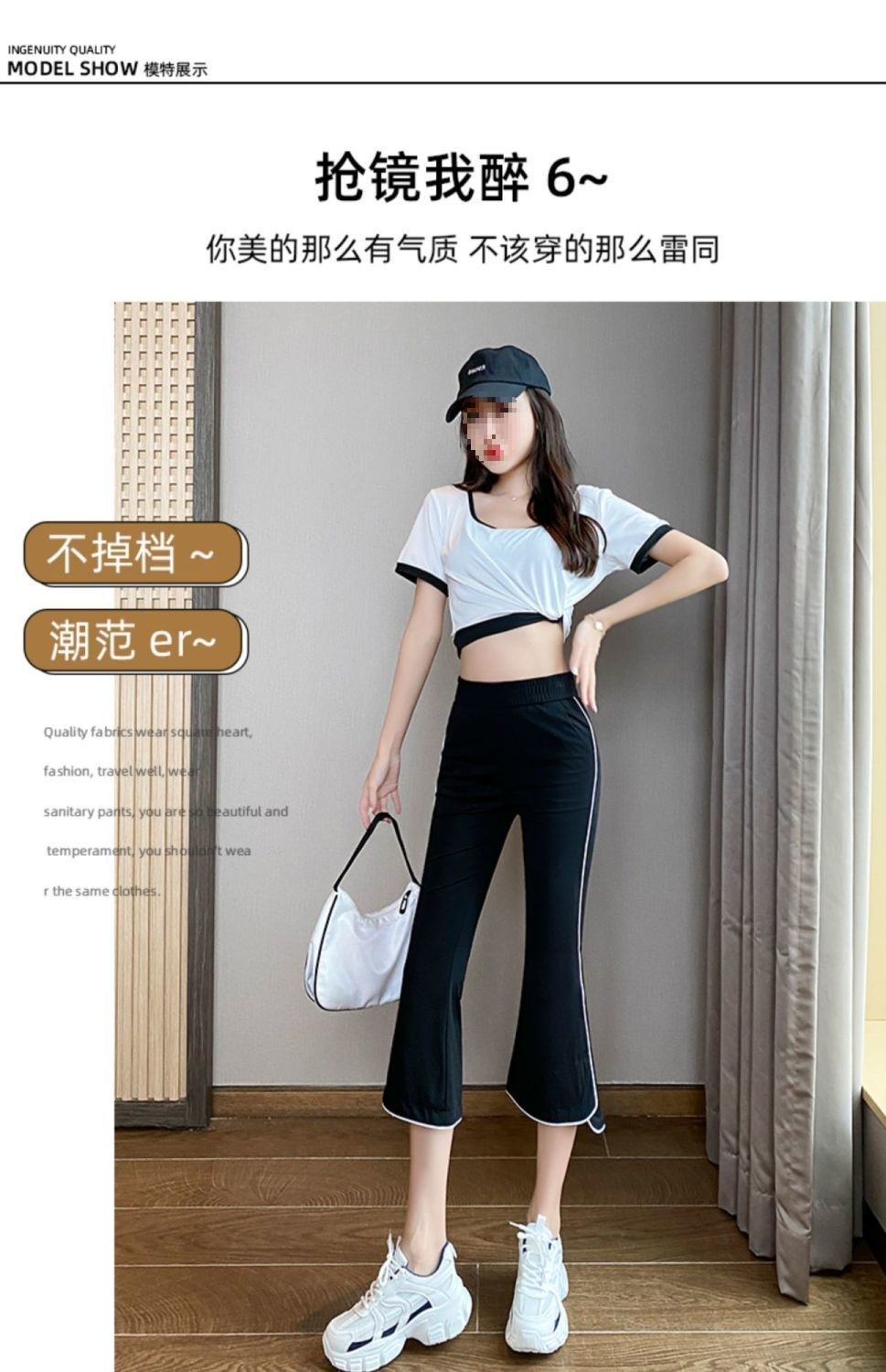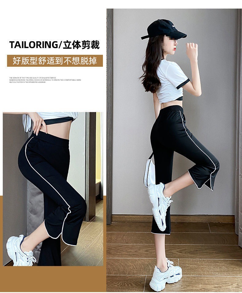 플러스 사이즈 자른 바지 여자 여름 얇은 높은 허리 슬리밍 작은 캐주얼 분할 마이크로 혼 스포츠 바지스토어 가기