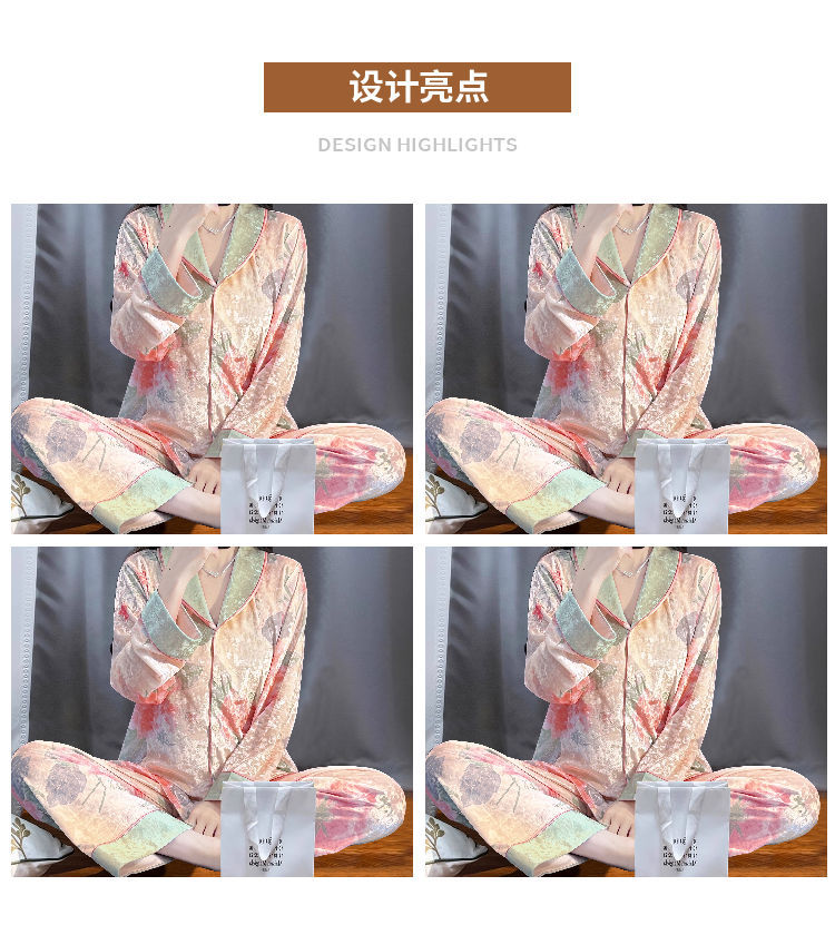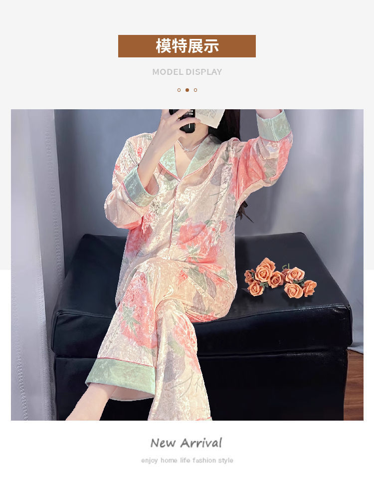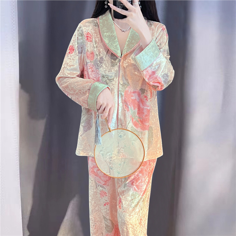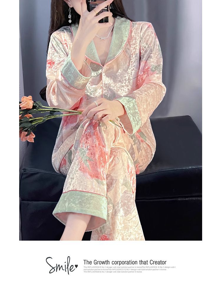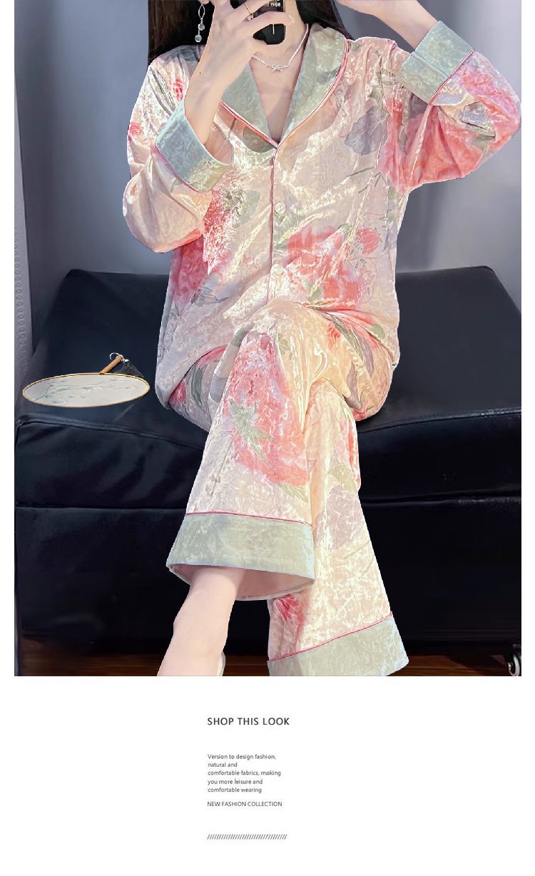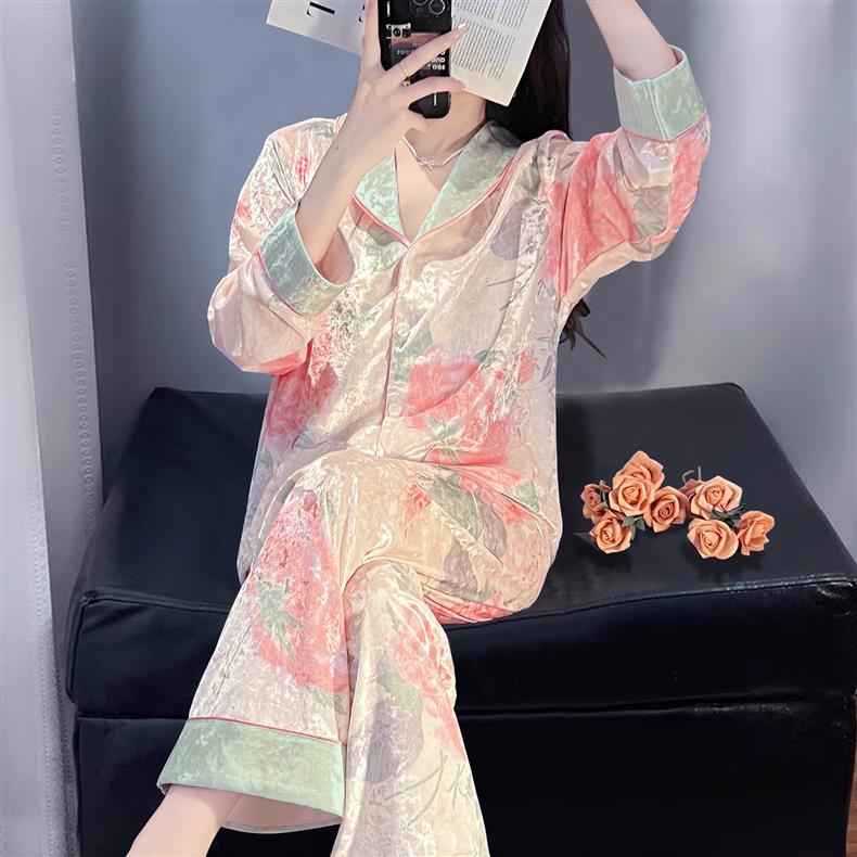 가벼운 럭셔리 2024 새로운 다이아몬드 벨벳 파자마 여성의 가을과 겨울 긴 소매 인쇄 홈 의류 세트 봄과 가을 외부 착용 두 조각스토어 가기
