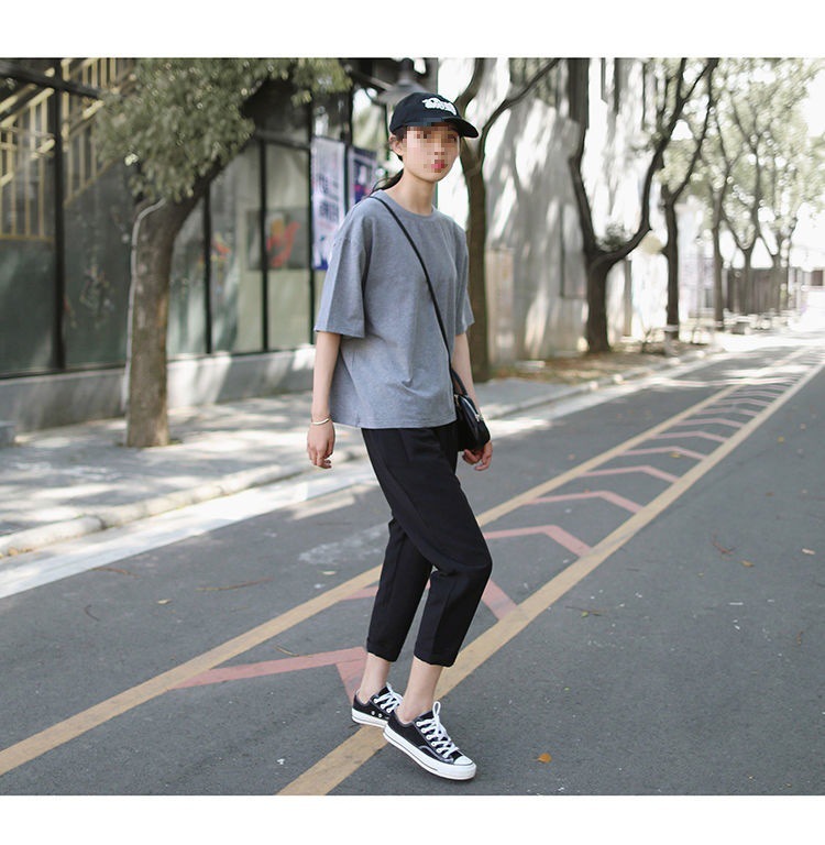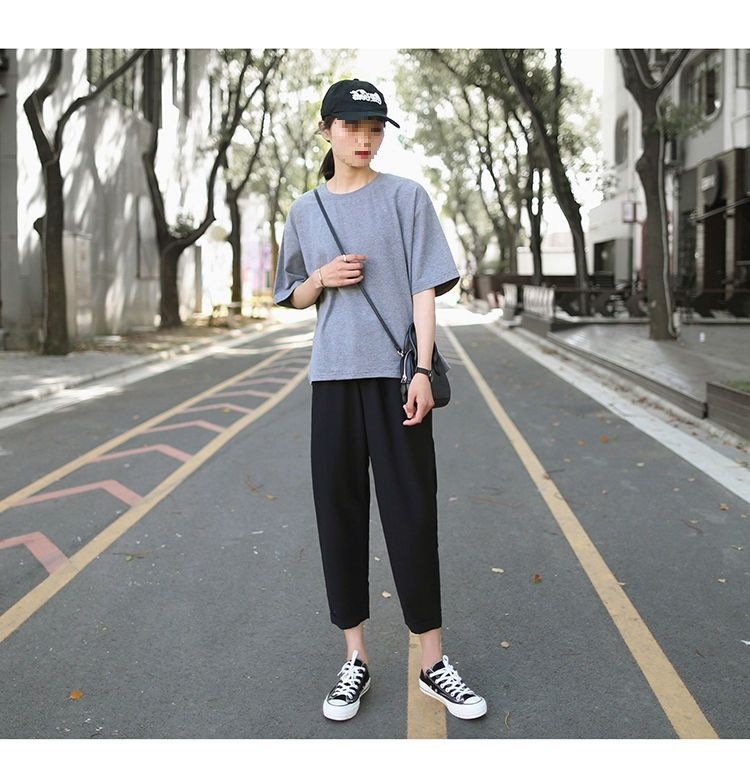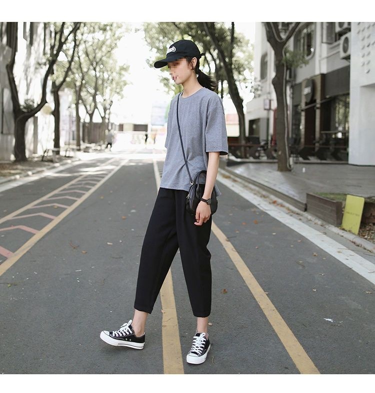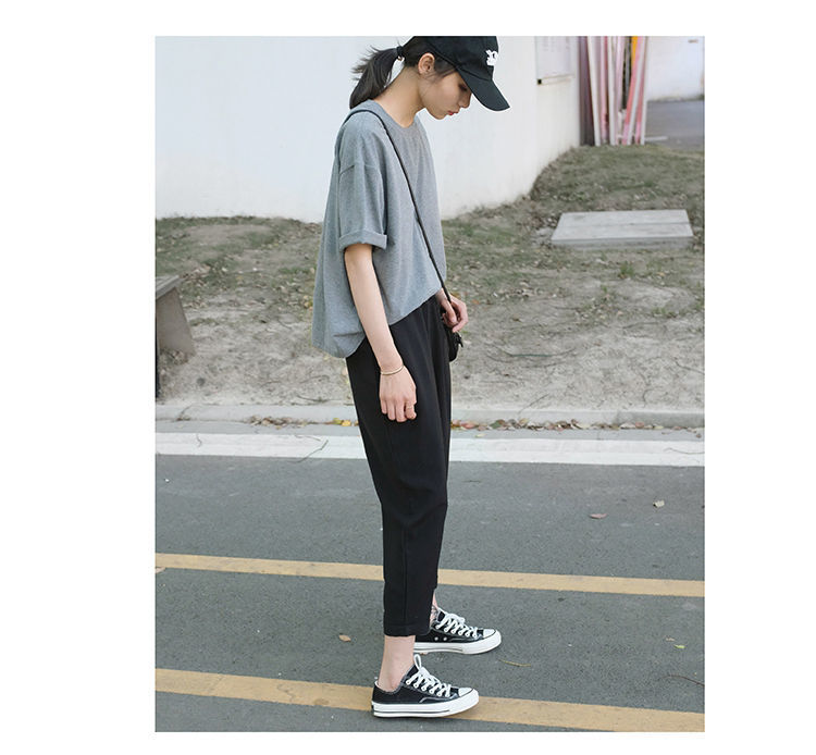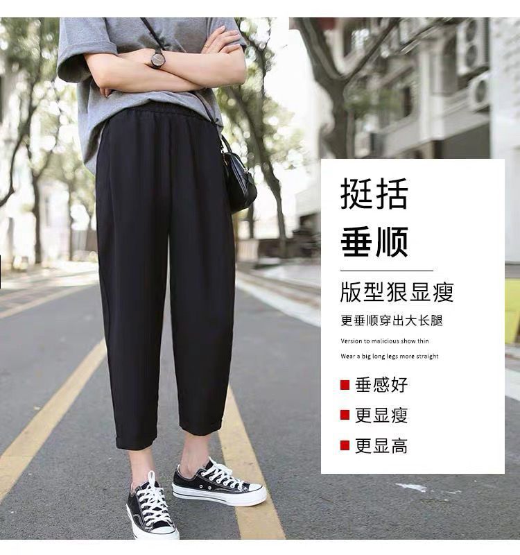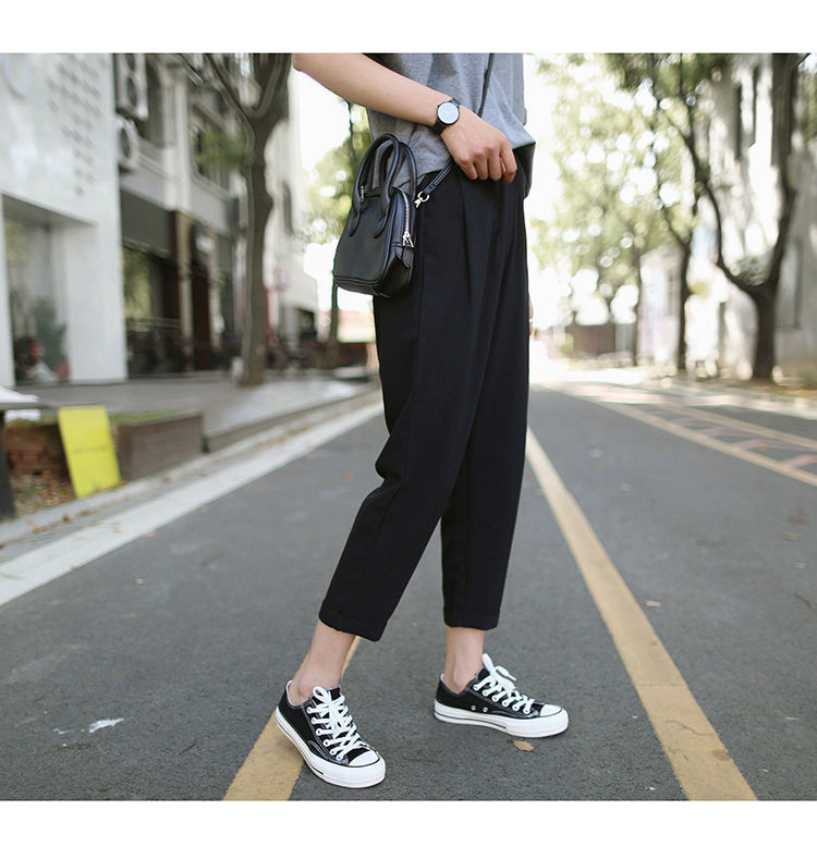 봄과 여름 검은 할렌 바지 여성 높은 허리 느슨한 슬리밍 플러스 사이즈 학생 용 넓은 다리 캐주얼 자른 스트레이트 바지스토어 가기
