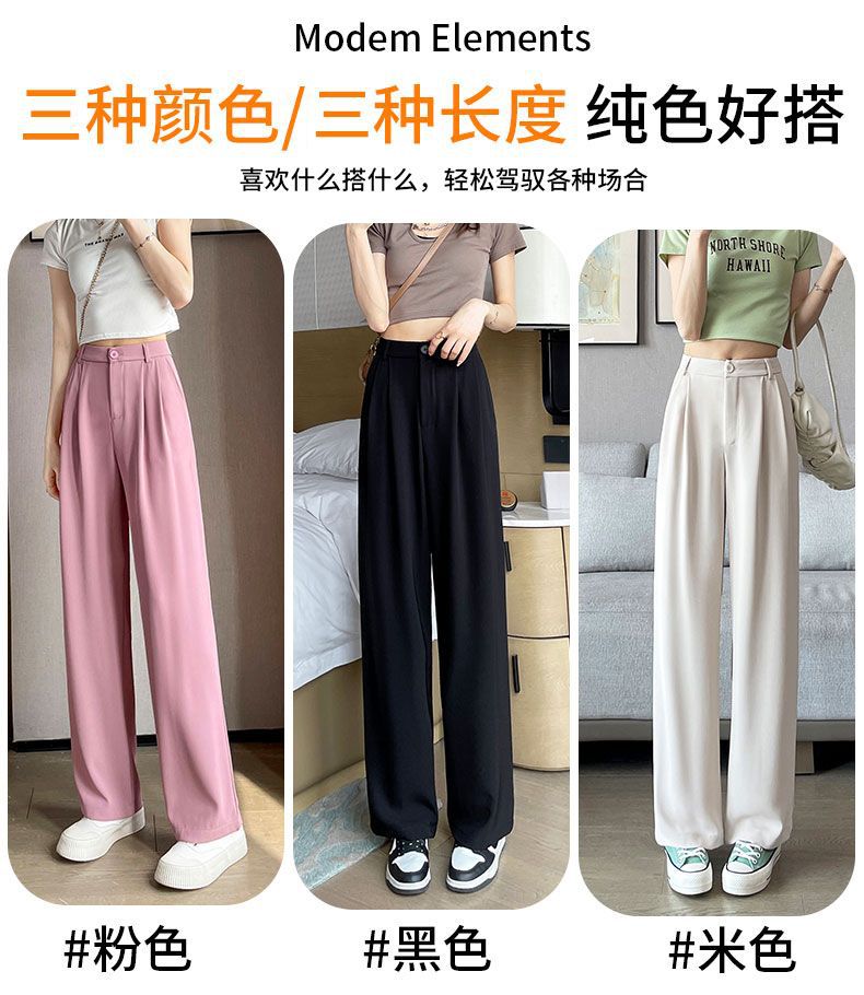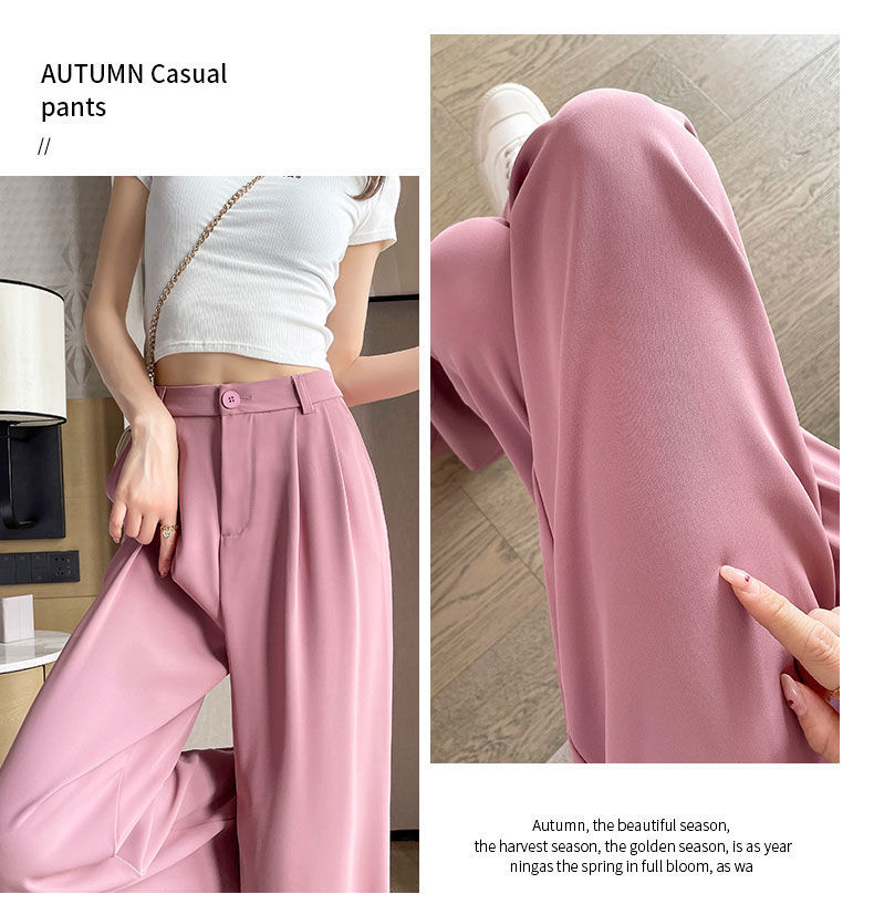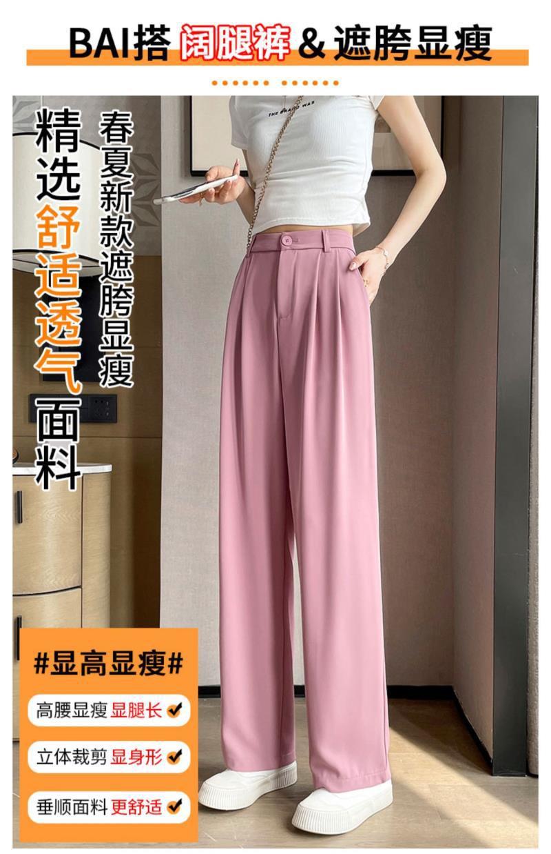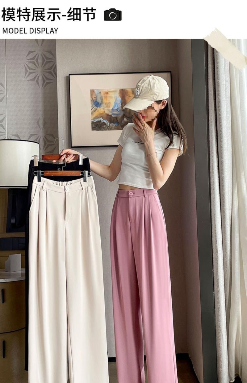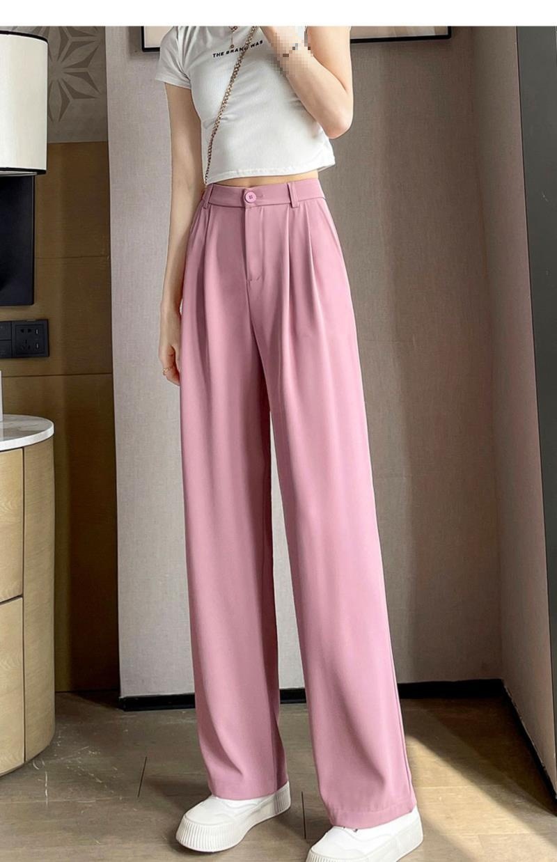 핑크 세트 바지 여성용 여름 얇은 여름 하이 엔드 센스 작은 바지 스트레이트 하이 웨이스트 슬림 와이드 다리 바지스토어 가기