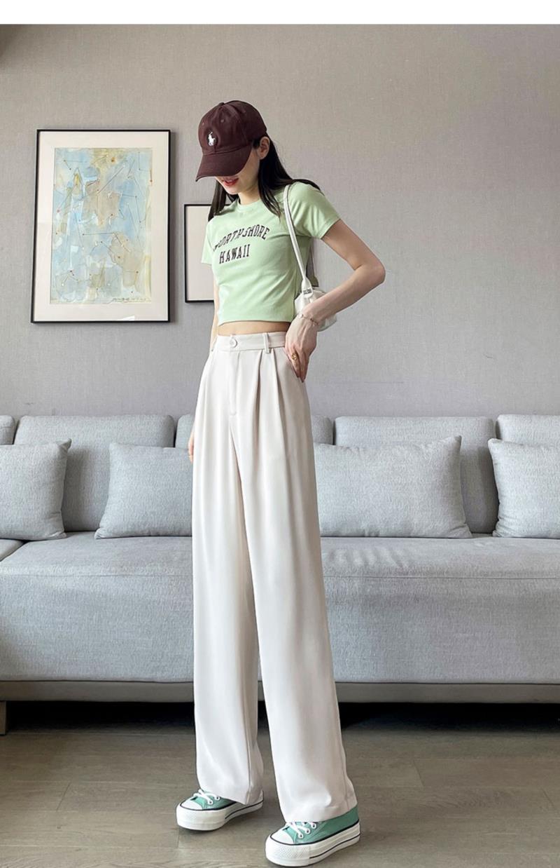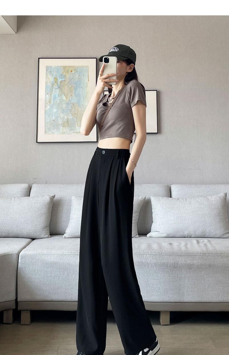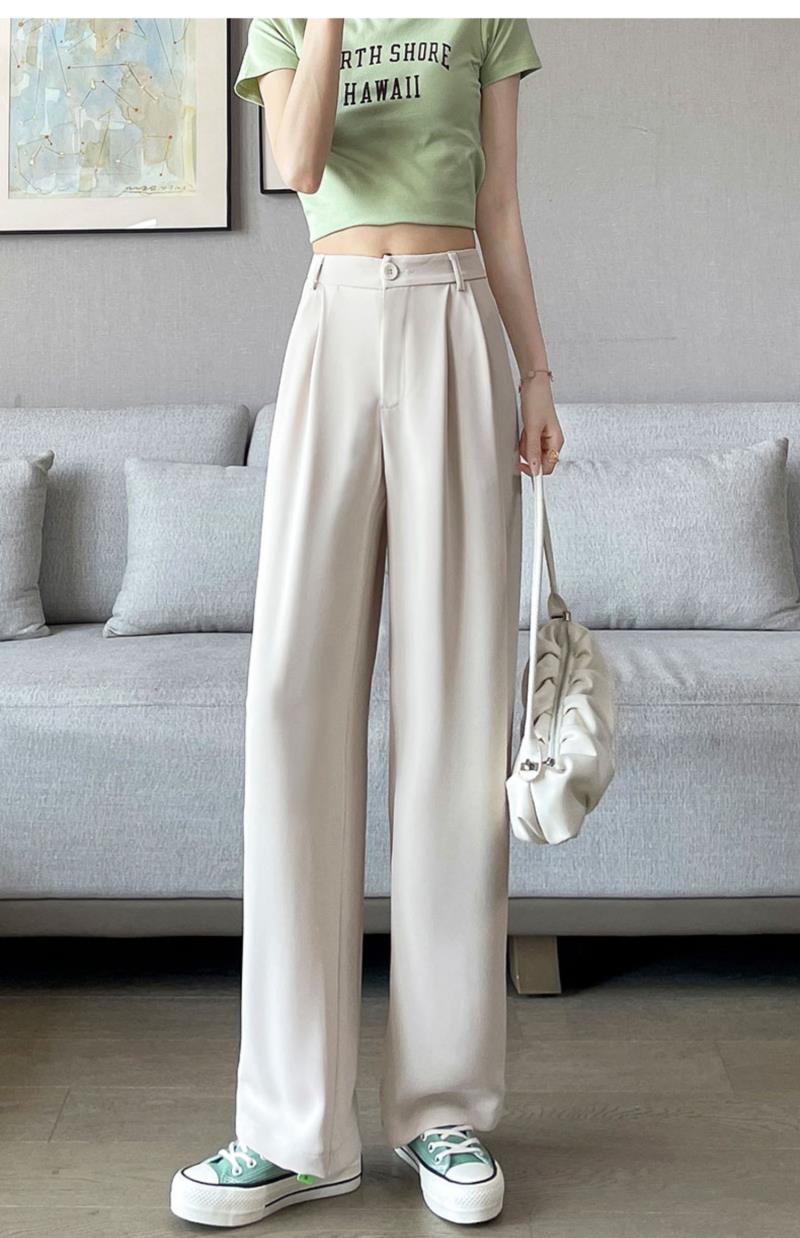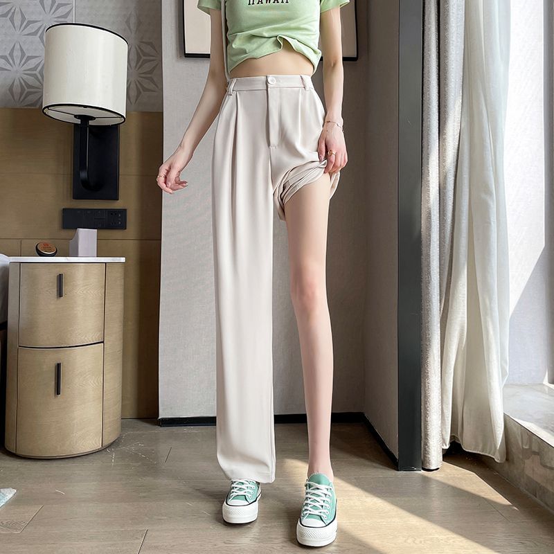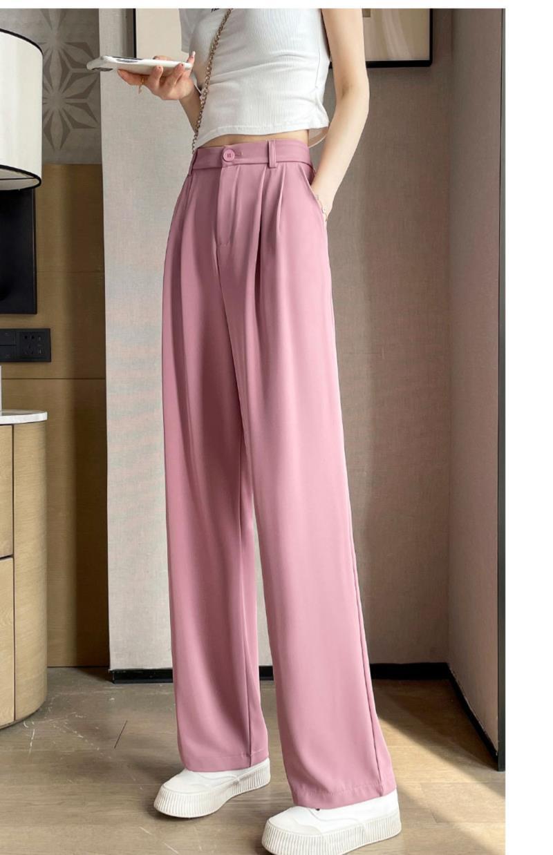 핑크 세트 바지 여성용 여름 얇은 여름 하이 엔드 센스 작은 바지 스트레이트 하이 웨이스트 슬림 와이드 다리 바지스토어 가기