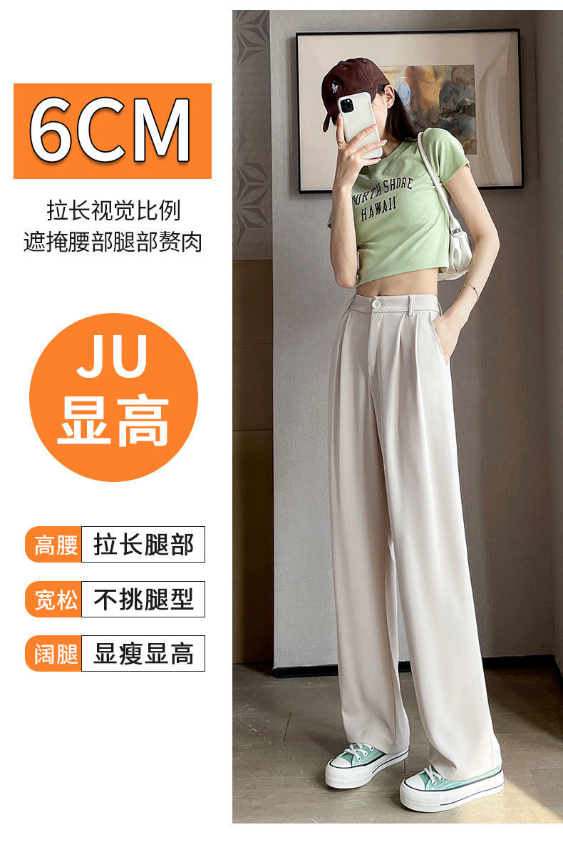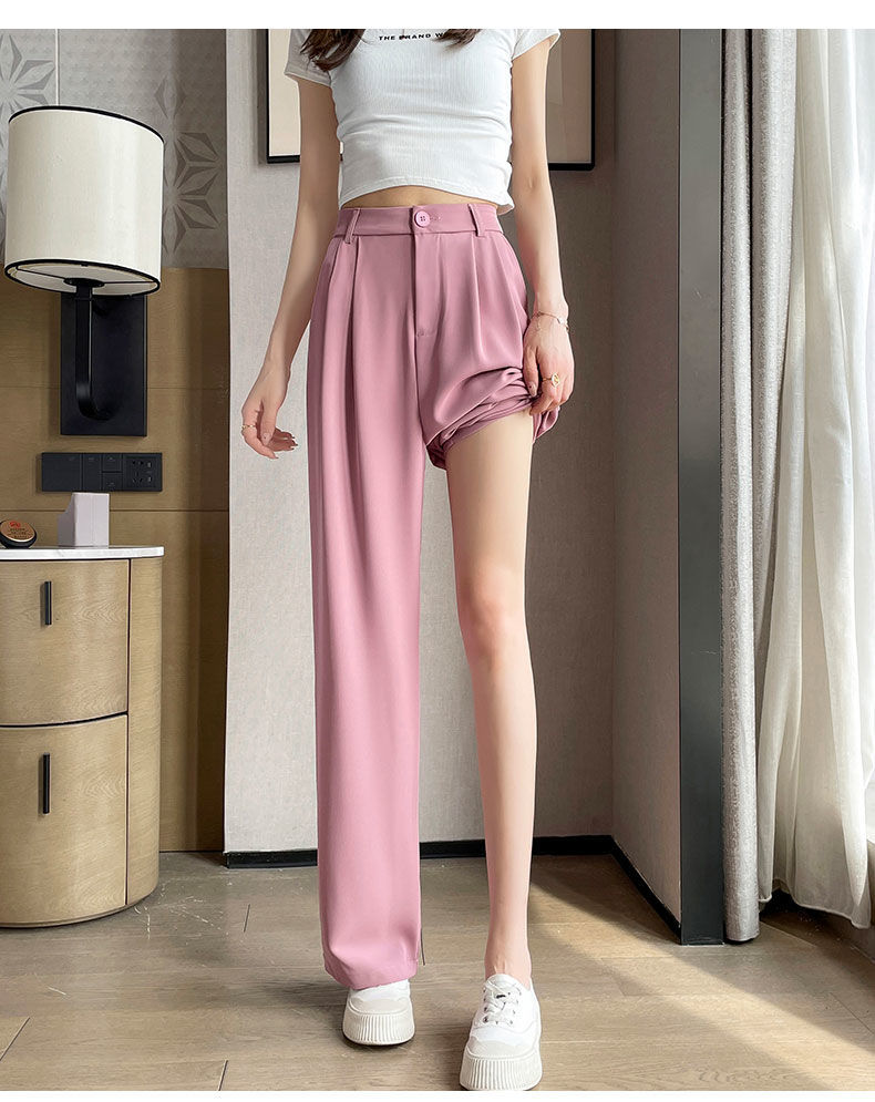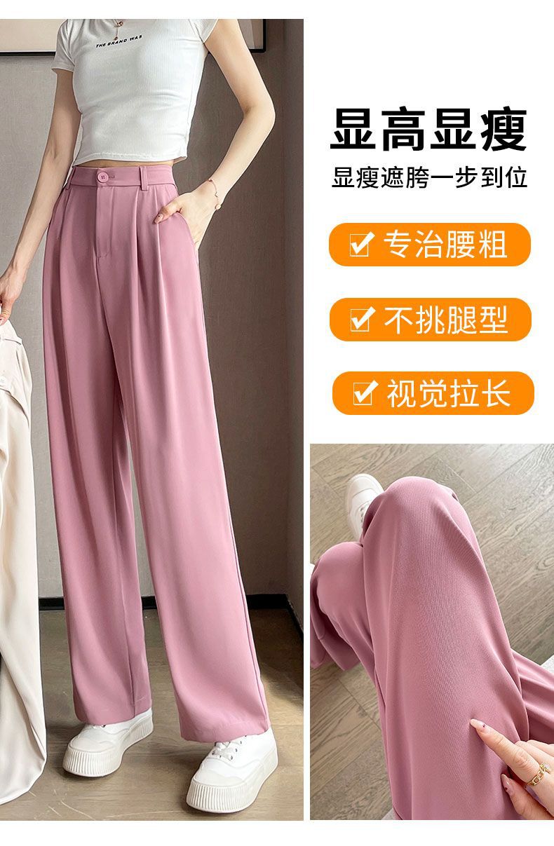 핑크 세트 바지 여성용 여름 얇은 여름 하이 엔드 센스 작은 바지 스트레이트 하이 웨이스트 슬림 와이드 다리 바지