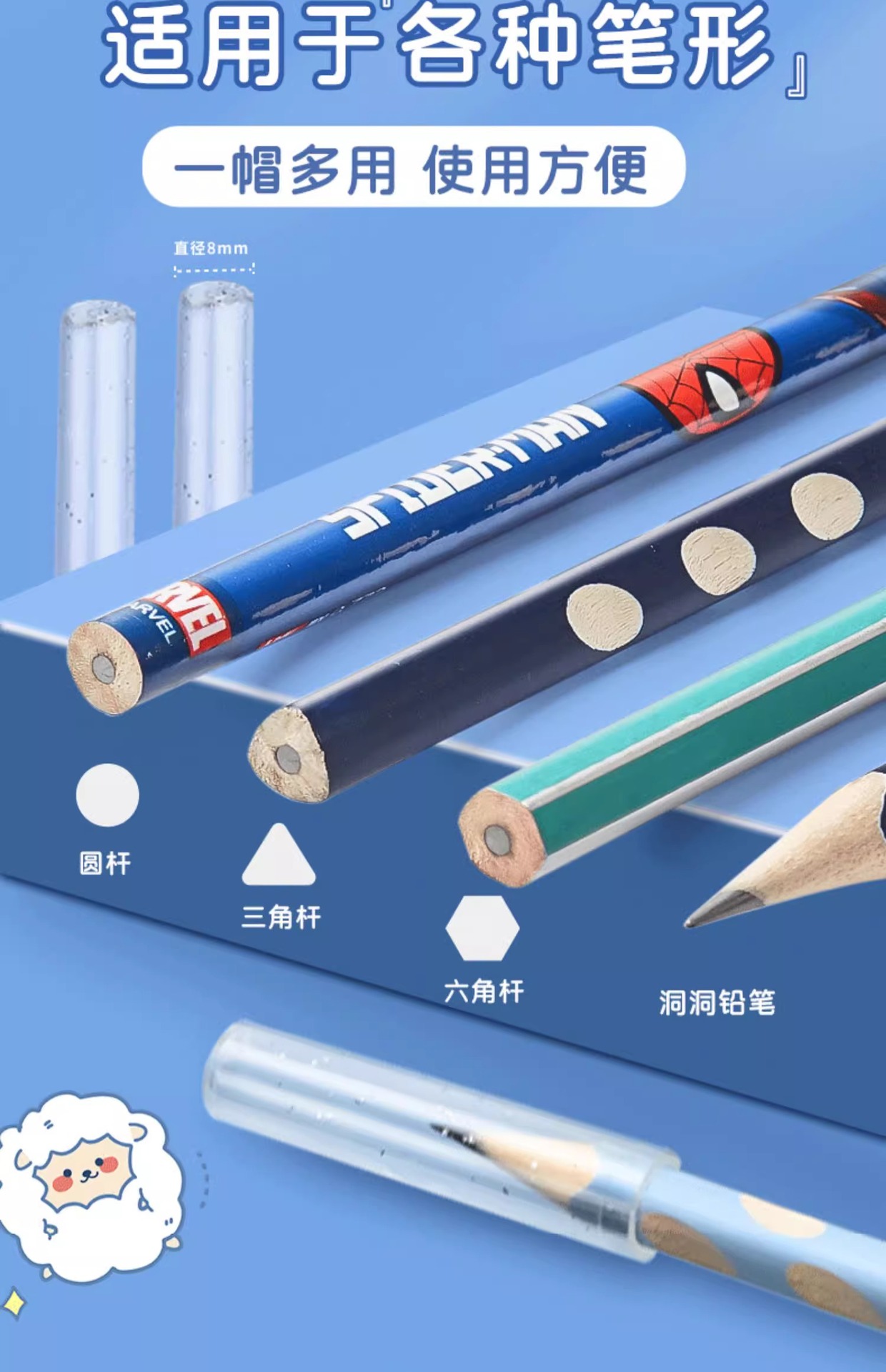 초등학교 학생을위한 Kappi Bala 연필 캡 펜 세트 1 학년 소년과 소녀 연필 머리 유치원 초보자를위한 보호 세트스토어 가기