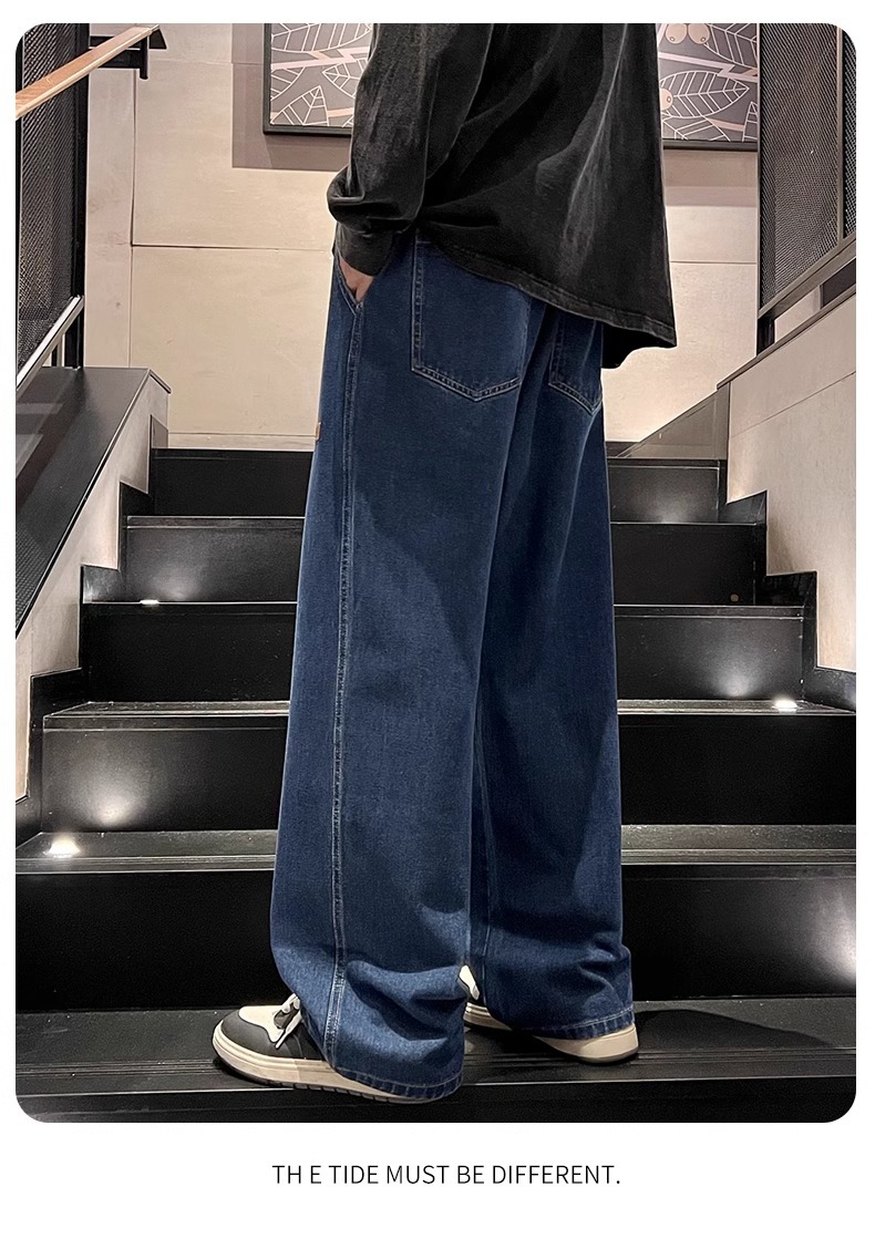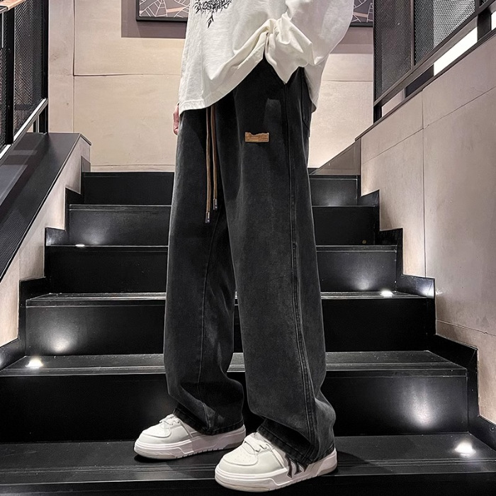 봄과 가을 검은 회색 청바지 남성용 스트레이트 튜브 느슨한 미국 스타일 하이 스트리트 2025 새로운 십대 소년 긴 바지