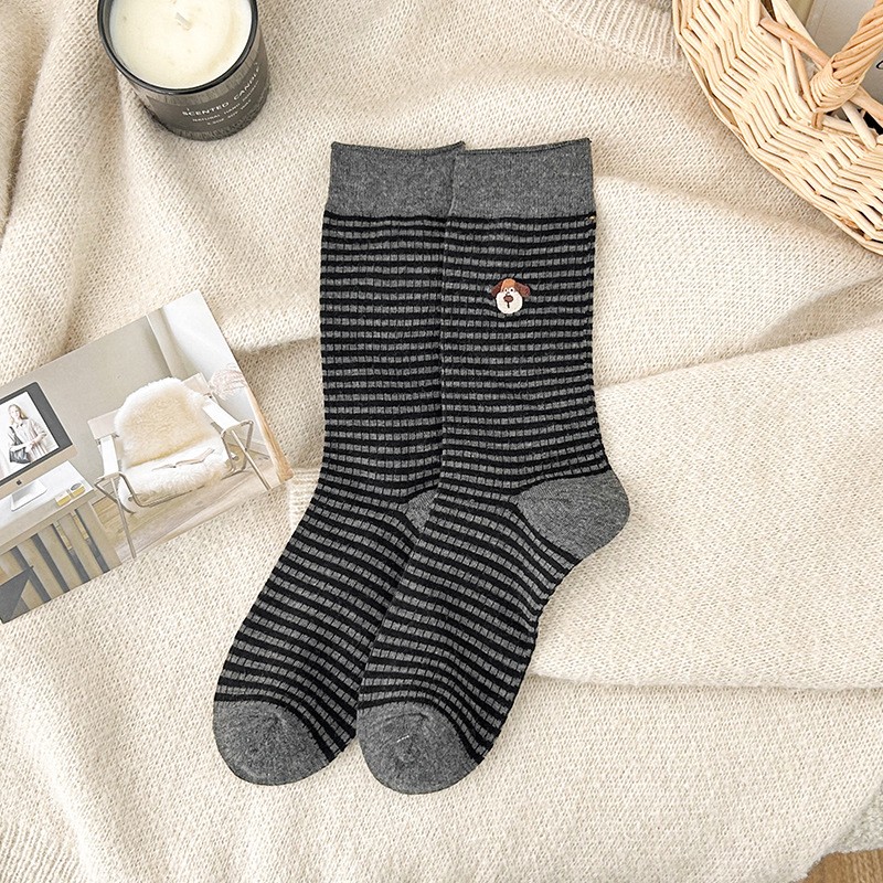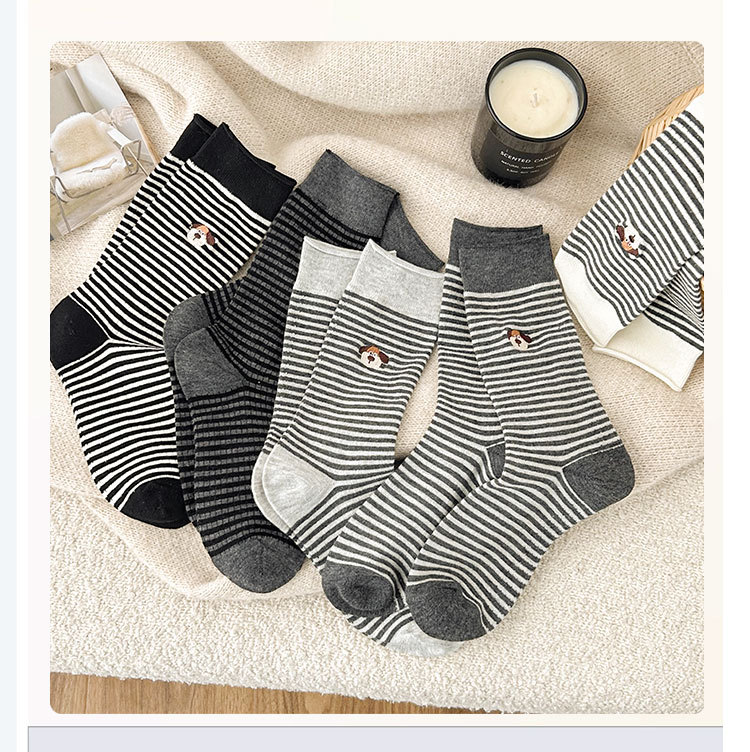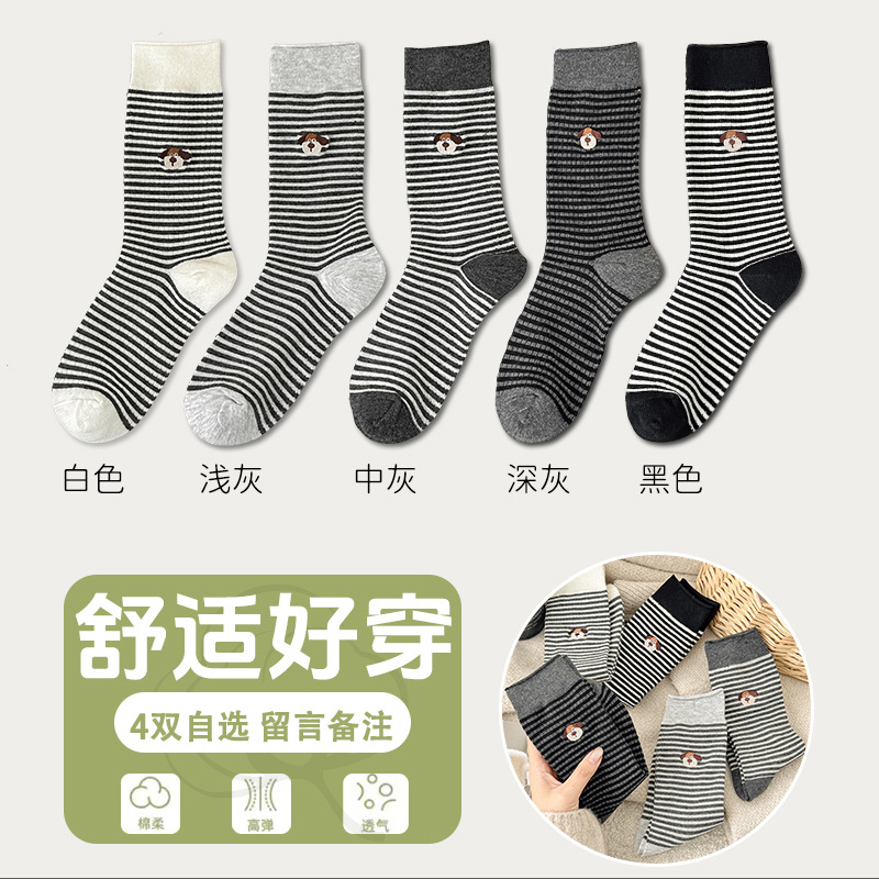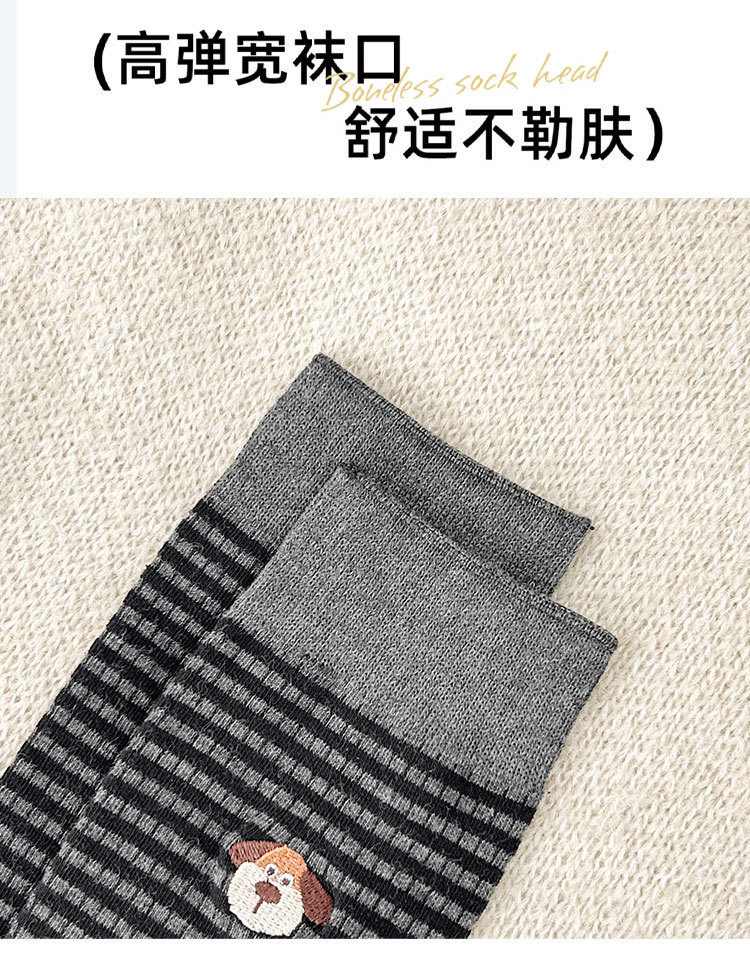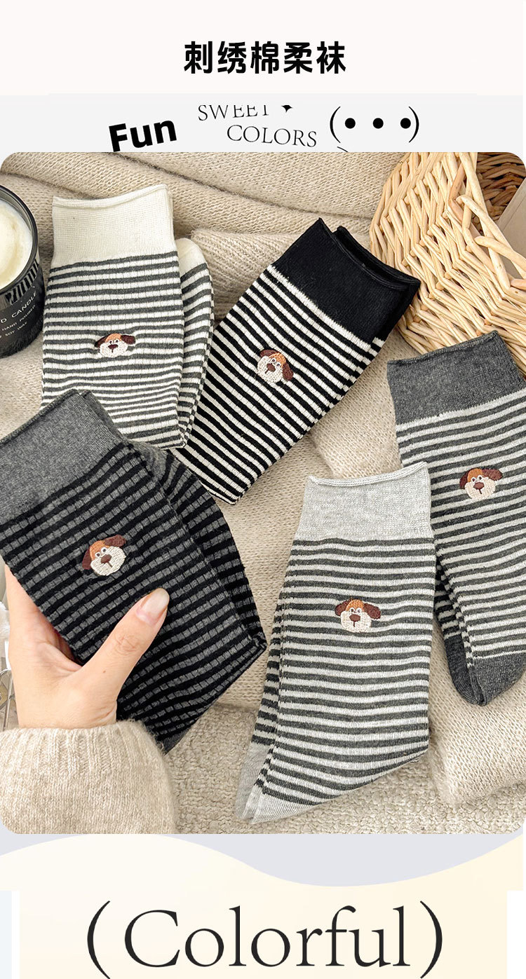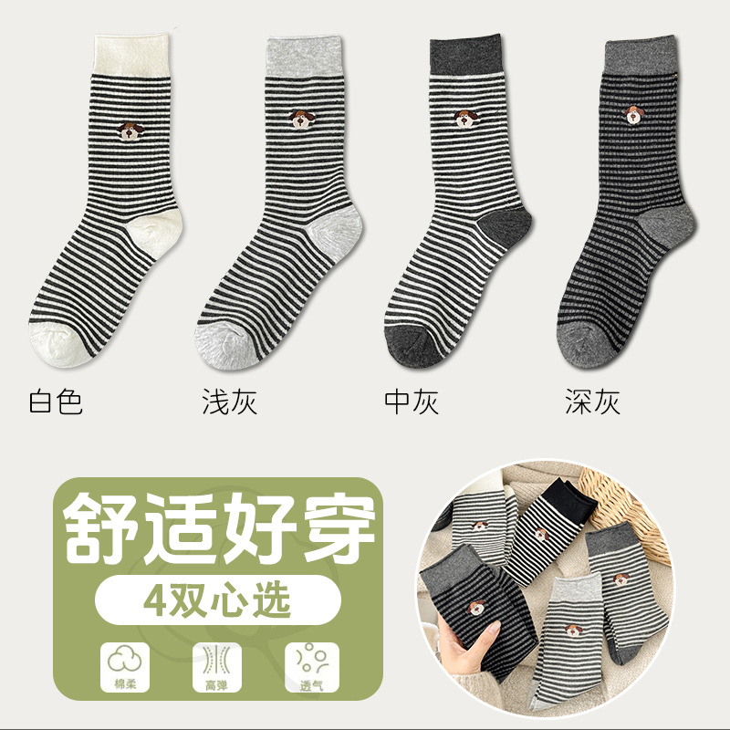 개별 포장 양말 여성용 봄 여름 중목 양말 면 양말 인스 트렌드 스트라이프 자수 강아지 롱 양말 여성용 파일 양말스토어 가기