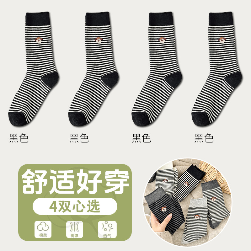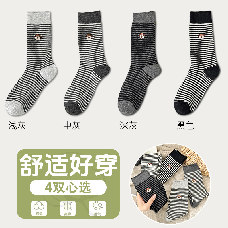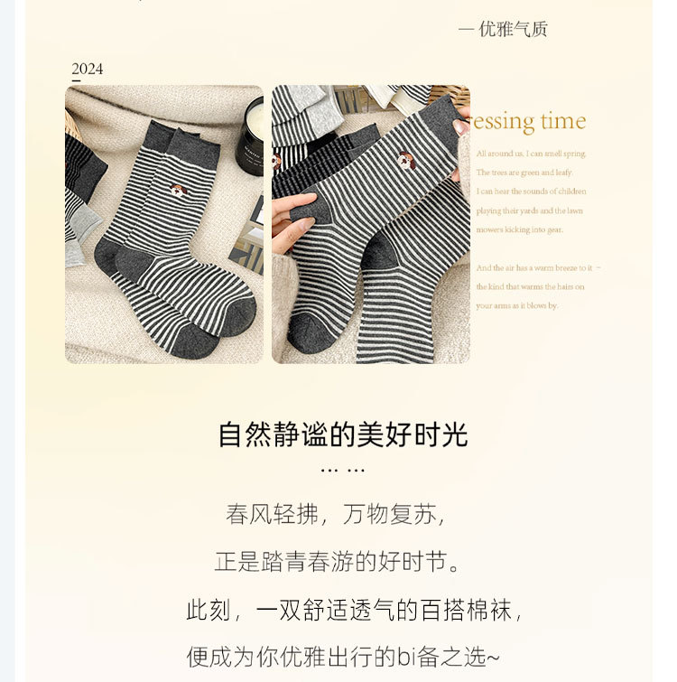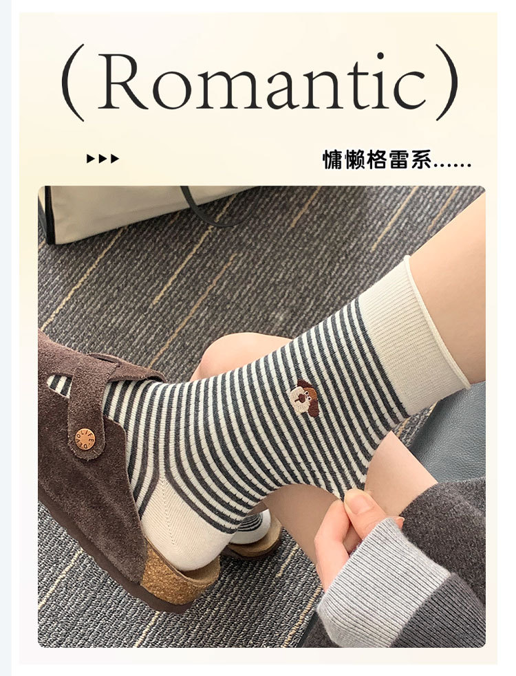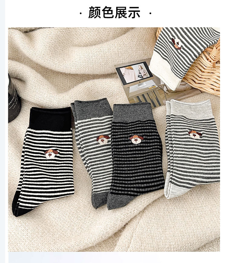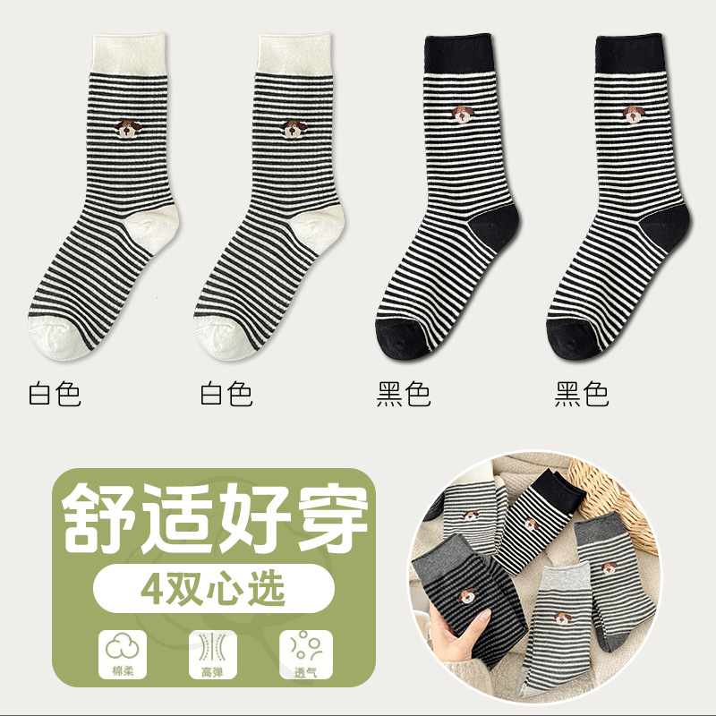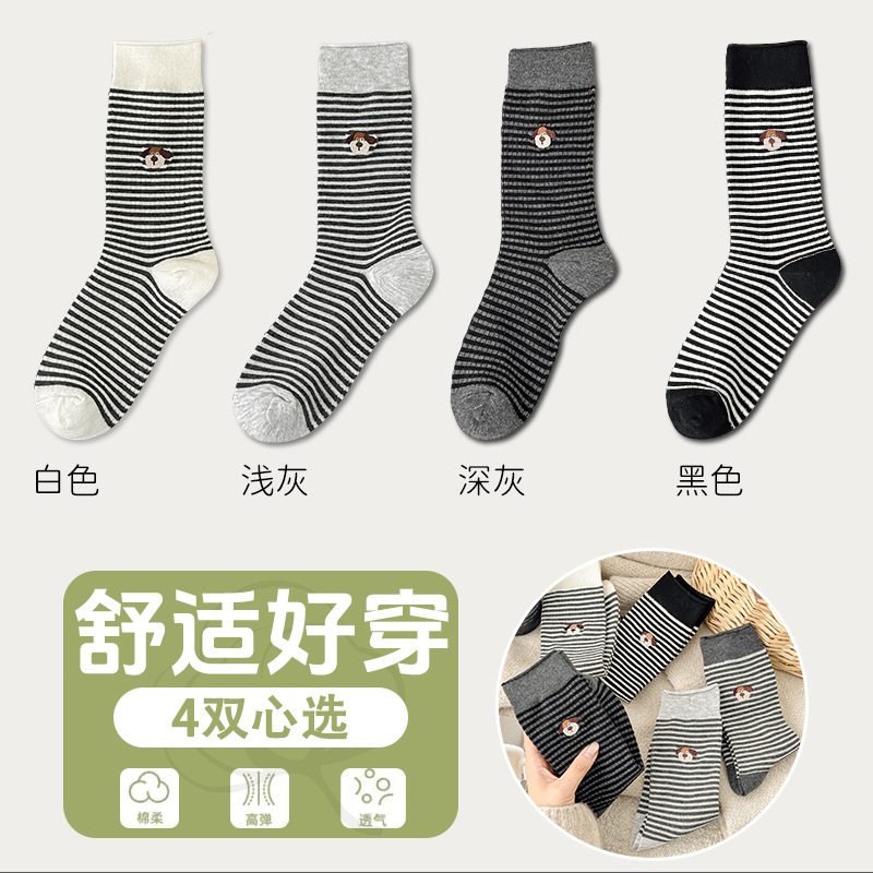 개별 포장 양말 여성용 봄 여름 중목 양말 면 양말 인스 트렌드 스트라이프 자수 강아지 롱 양말 여성용 파일 양말스토어 가기