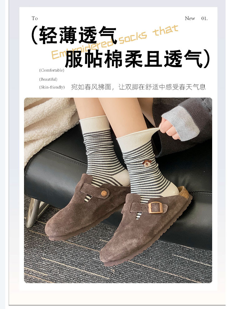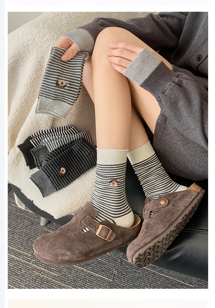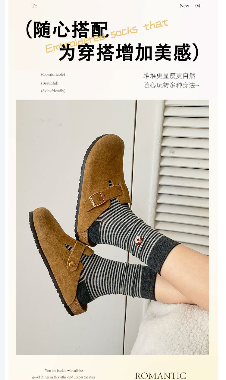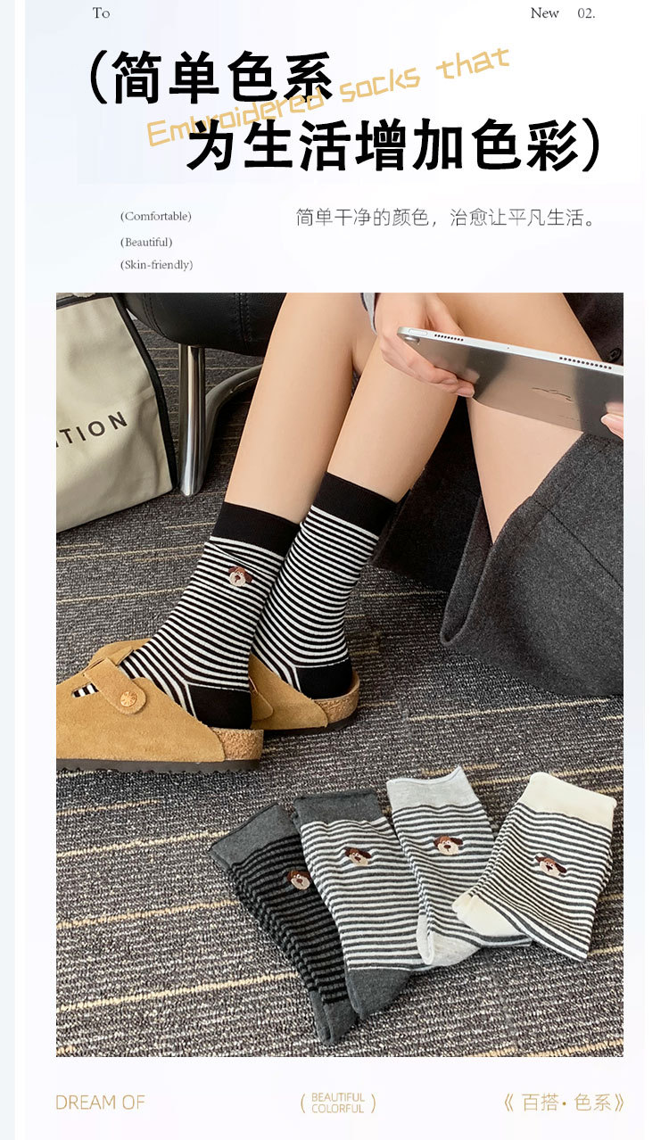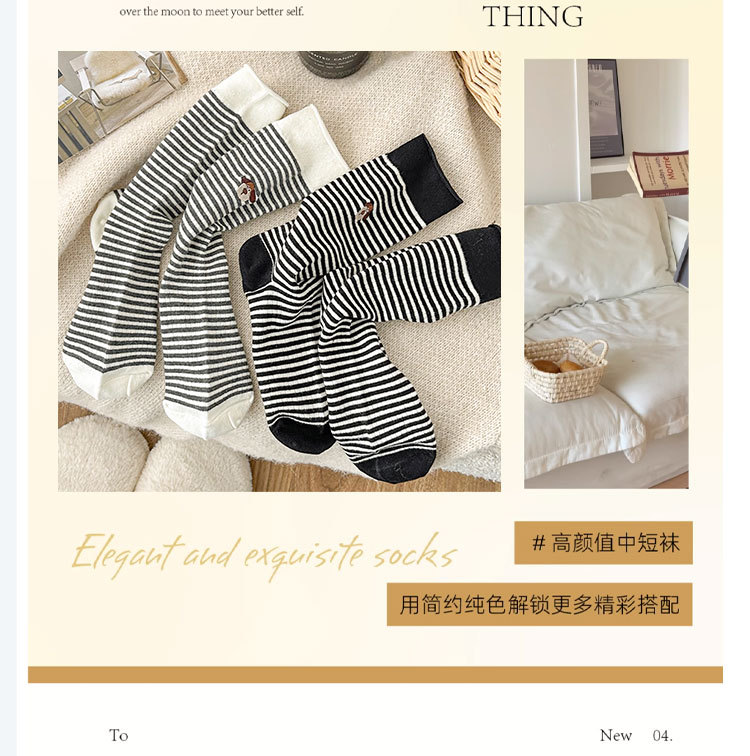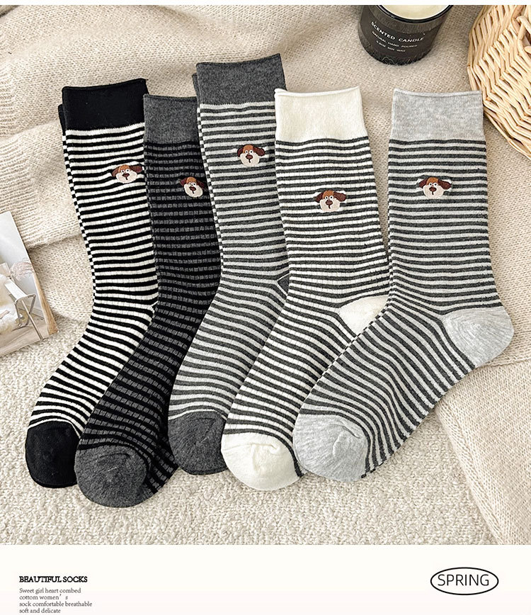 개별 포장 양말 여성용 봄 여름 중목 양말 면 양말 인스 트렌드 스트라이프 자수 강아지 롱 양말 여성용 파일 양말스토어 가기