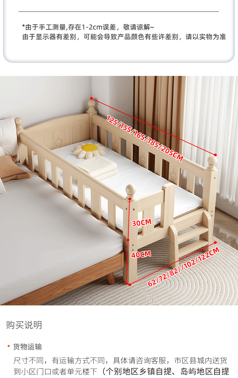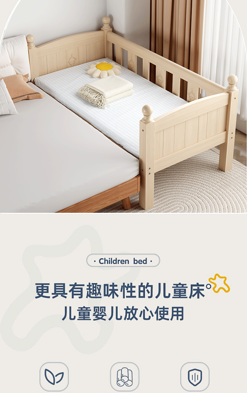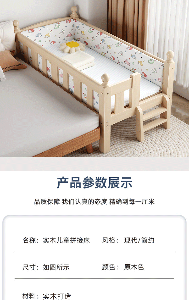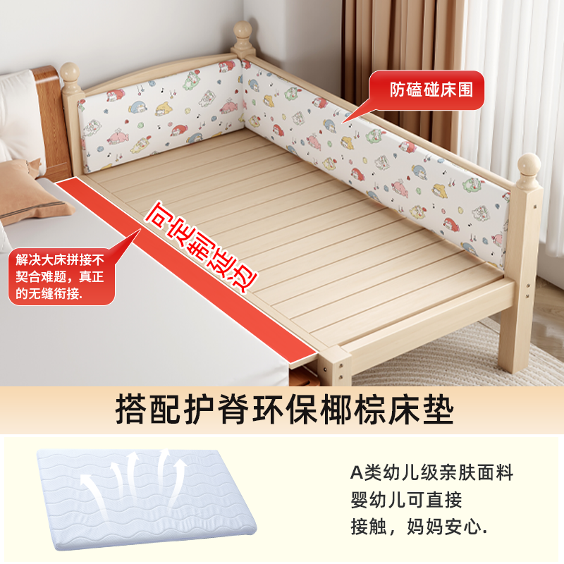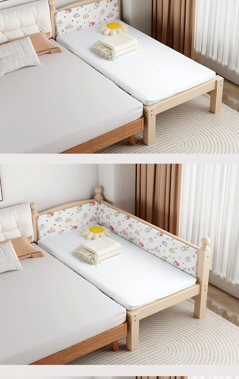 D * 단단한 나무 어린이 접합 침대가있는 가드 레일 침대 인클로저 아기 작은 침대 접합 큰 침대를 고정하고 넓힐 수 있습니다.스토어 가기