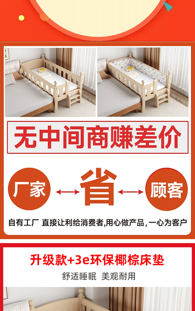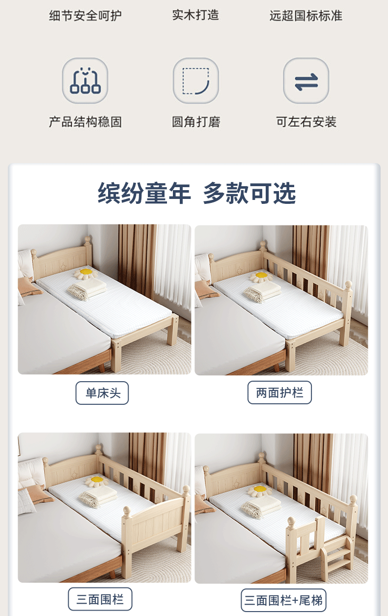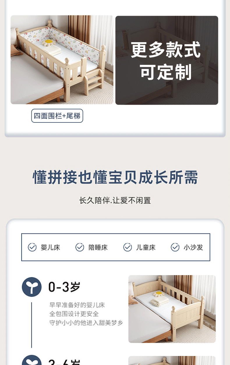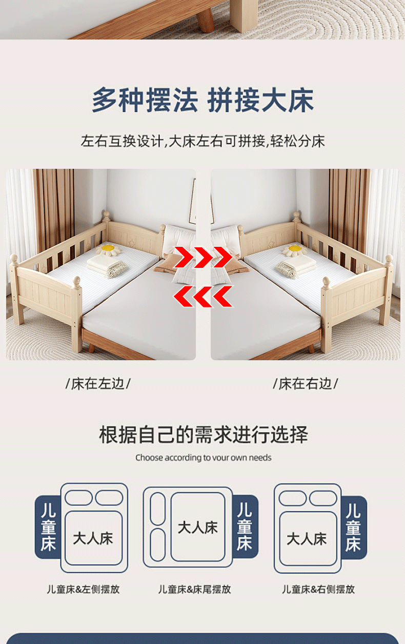 D * 단단한 나무 어린이 접합 침대가있는 가드 레일 침대 인클로저 아기 작은 침대 접합 큰 침대를 고정하고 넓힐 수 있습니다.스토어 가기