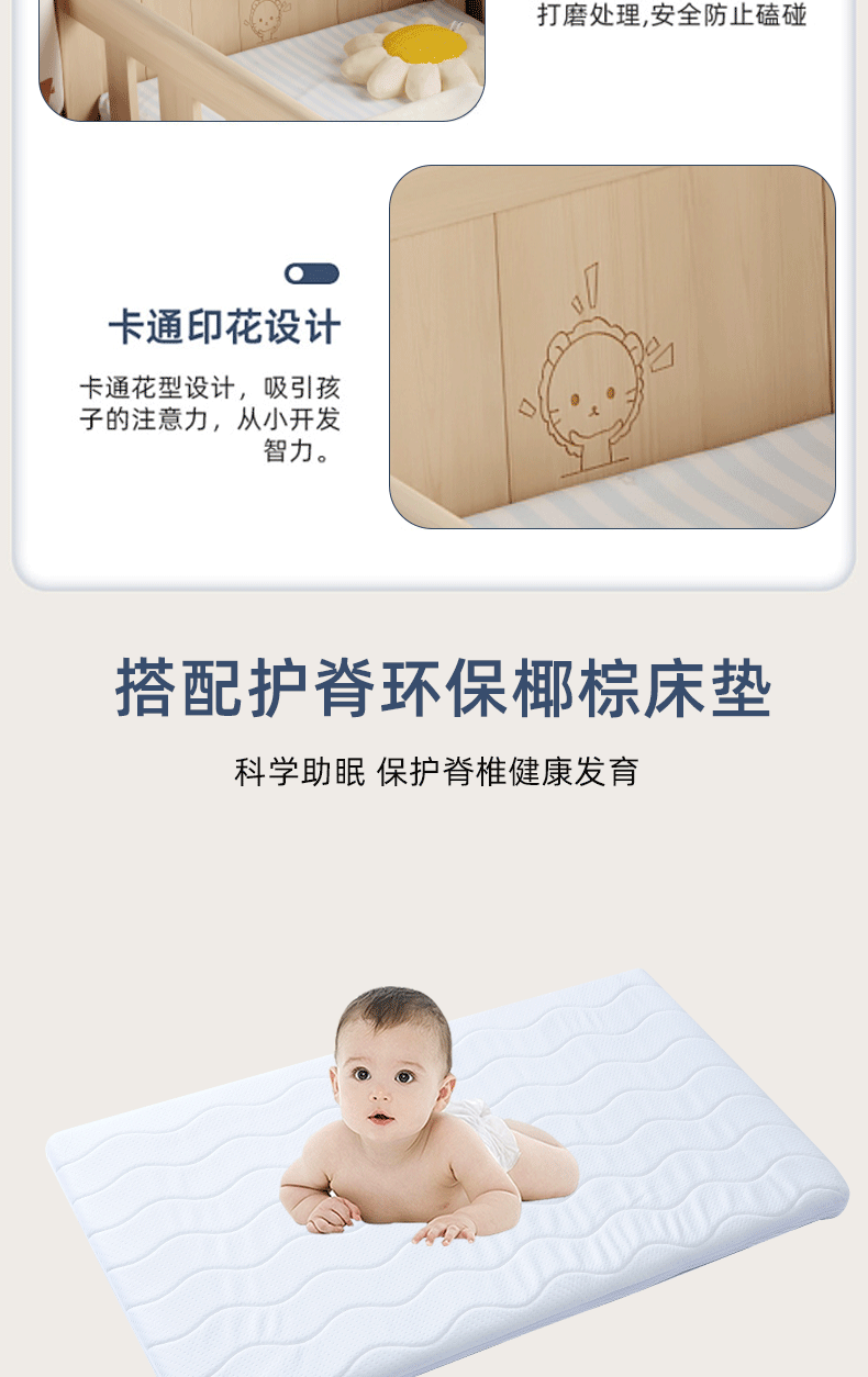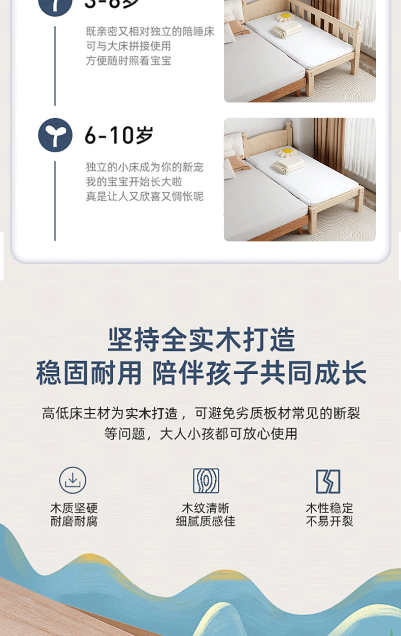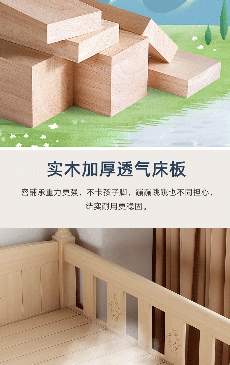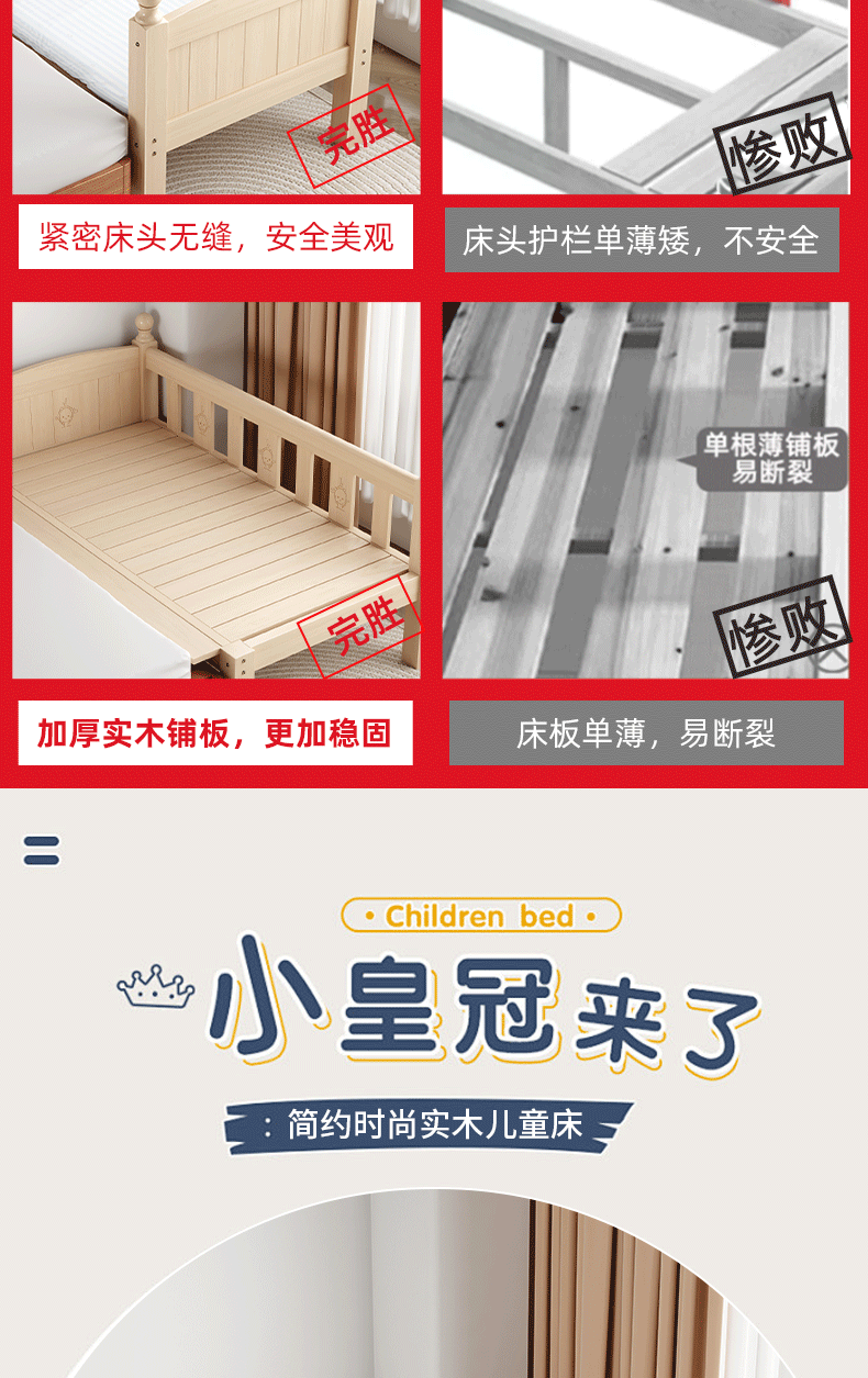 D * 단단한 나무 어린이 접합 침대가있는 가드 레일 침대 인클로저 아기 작은 침대 접합 큰 침대를 고정하고 넓힐 수 있습니다.스토어 가기