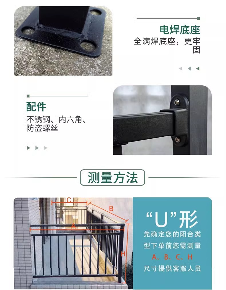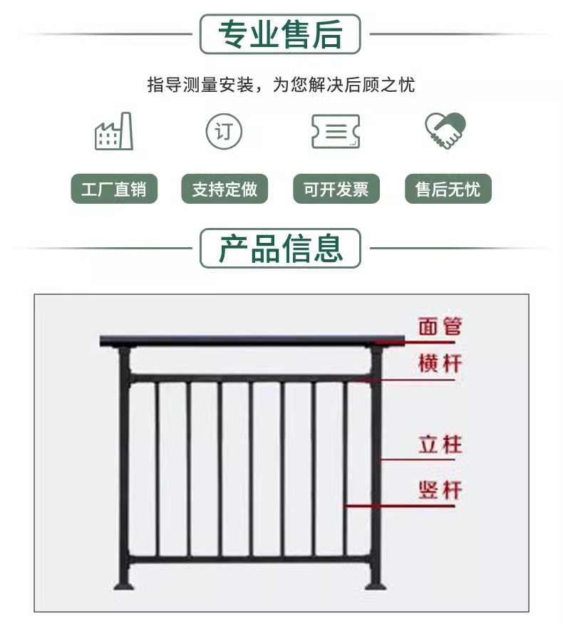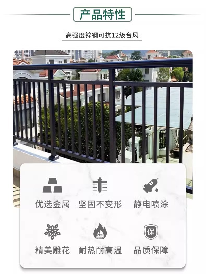 발코니 난간 공장 도매 조립 아연 강철 계단 난간 테라스 안전 울타리 실내 베이 창 울타리