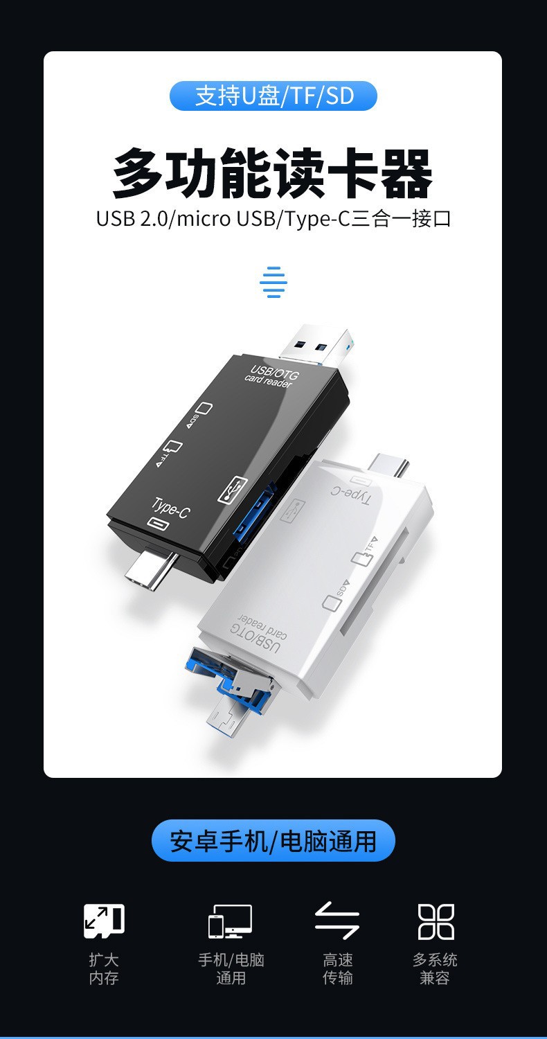 6-in-1 카드 리더기 다기능 휴대폰 카드 리더기 TD SD 메모리 카드 리더기 OTG 카드 리더기 USB 디스크