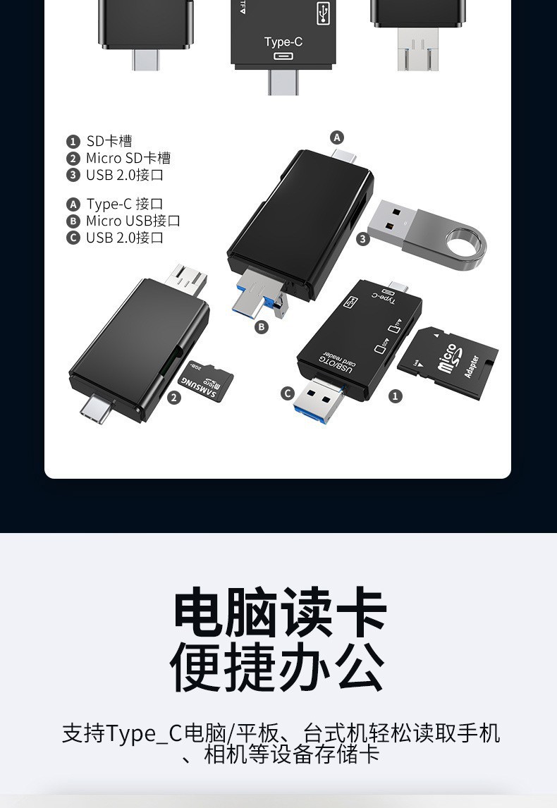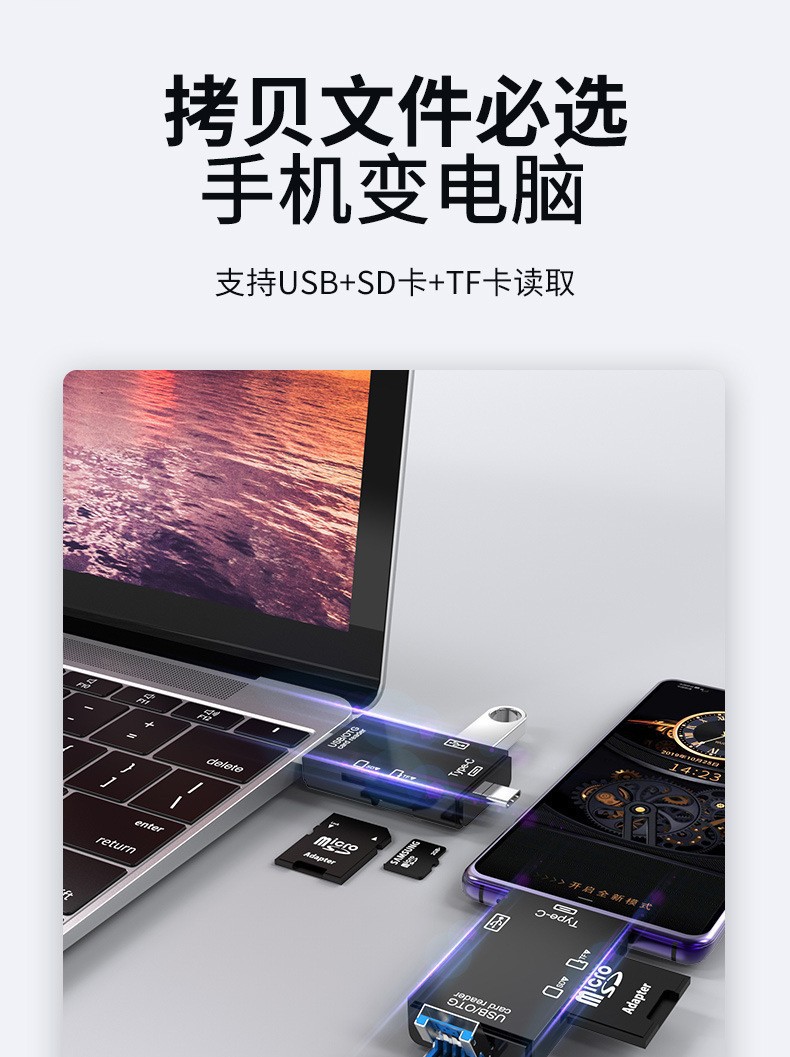 6-in-1 카드 리더기 다기능 휴대폰 카드 리더기 TD SD 메모리 카드 리더기 OTG 카드 리더기 USB 디스크스토어 가기