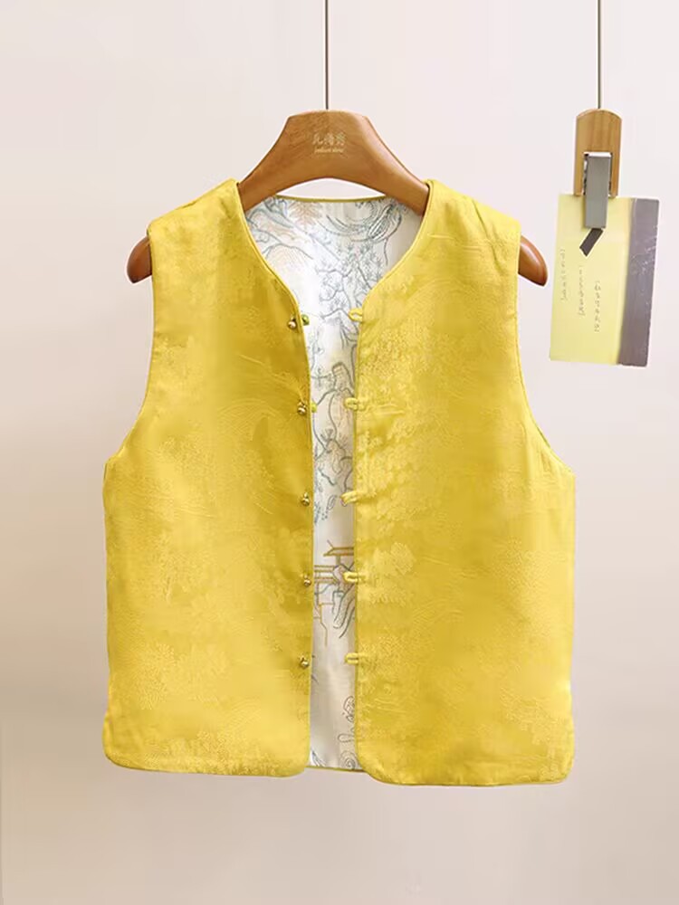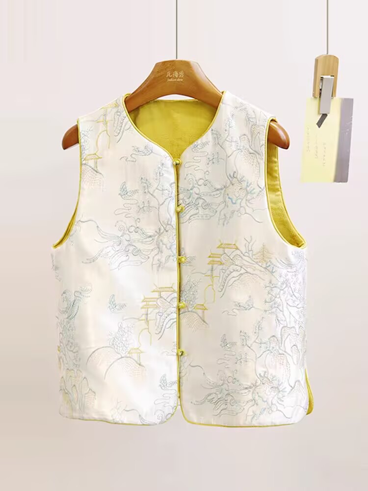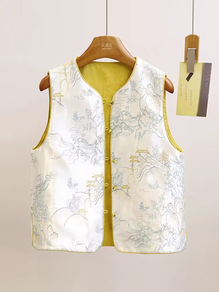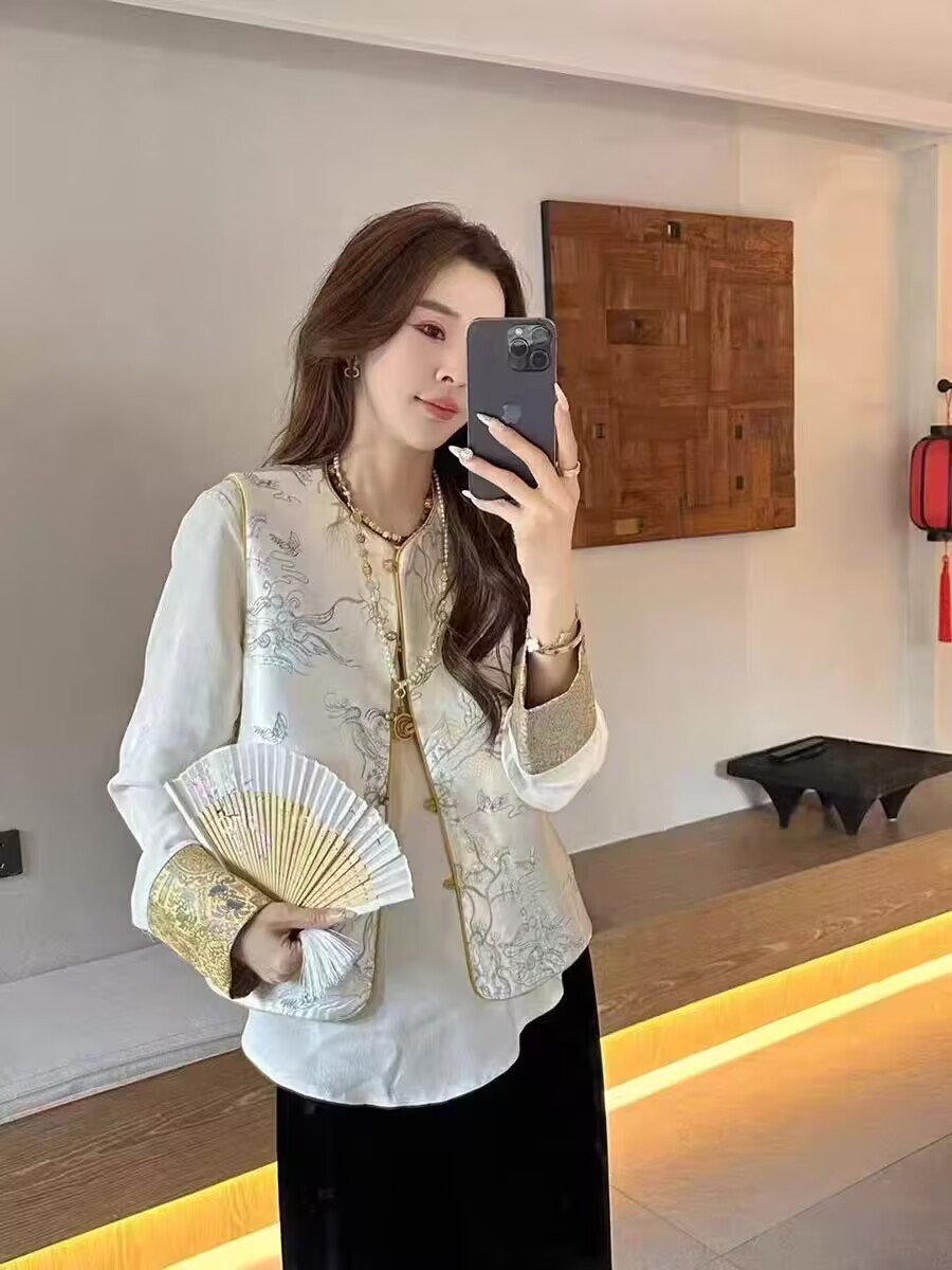 공장 직판 중국풍 여성 자수 조끼 루즈핏 셔츠 봄 양면 착용 조끼 재킷 레트로 스타일