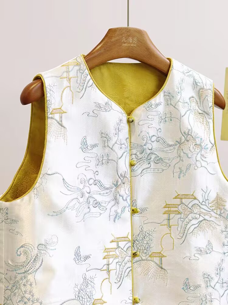 공장 직판 중국풍 여성 자수 조끼 루즈핏 셔츠 봄 양면 착용 조끼 재킷 레트로 스타일스토어 가기