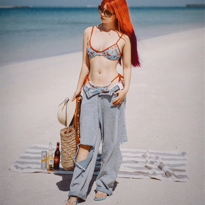 패션 수영복 여성의 2025 새로운 스플릿 비키니 스틸 트레이서 등받이 하이 엔드 온천 섹시한 슬리밍 수집