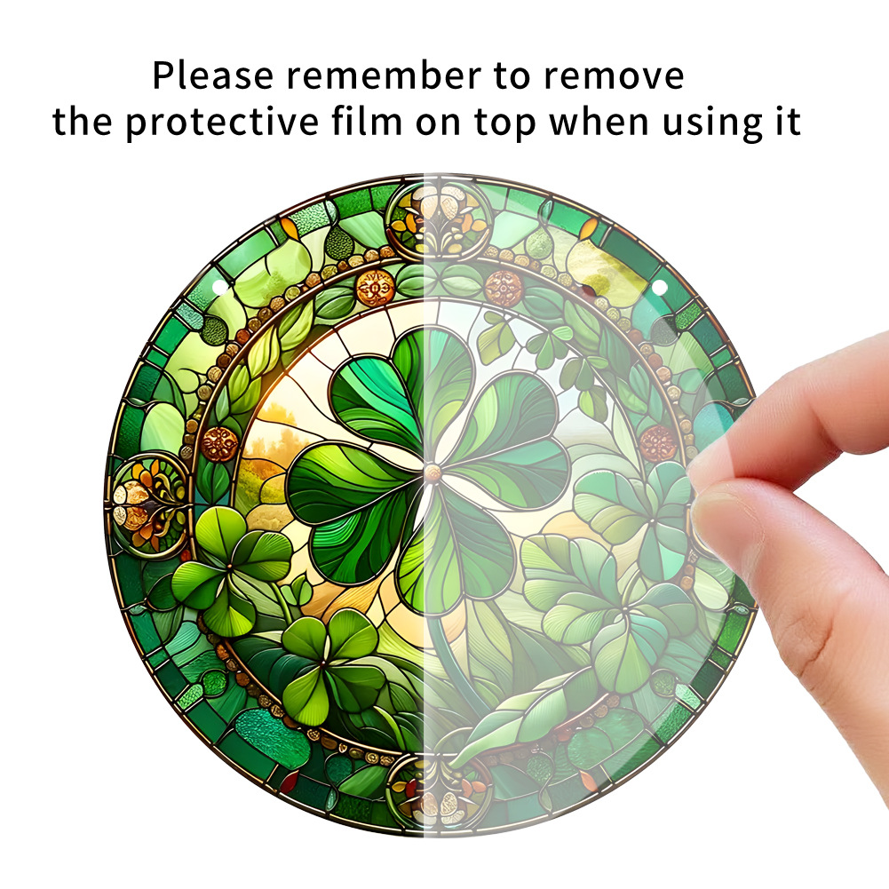 국경 간 폭발 작은 신선한 녹색 4 잎 클로버 아크릴 디스크 로프 펜던트 야외 창 장식 현관스토어 가기