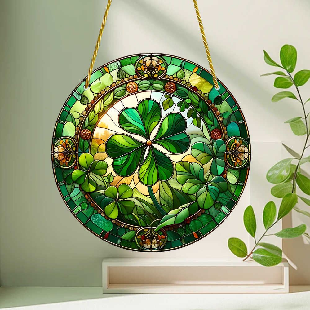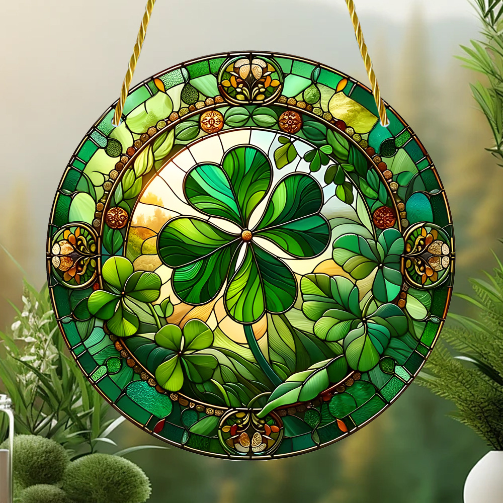 국경 간 폭발 작은 신선한 녹색 4 잎 클로버 아크릴 디스크 로프 펜던트 야외 창 장식 현관
