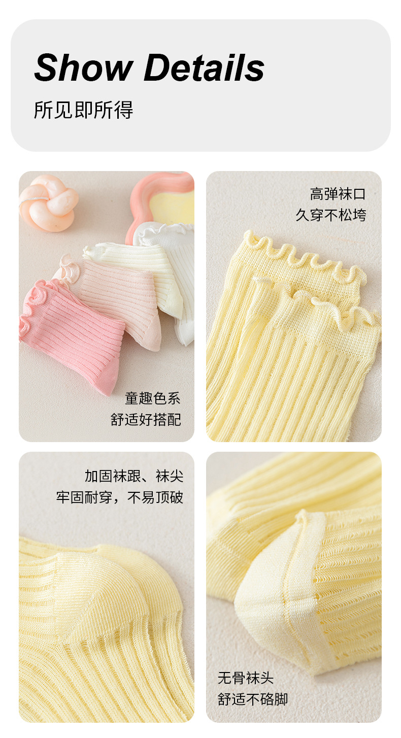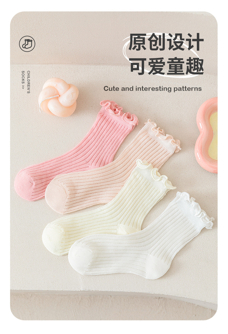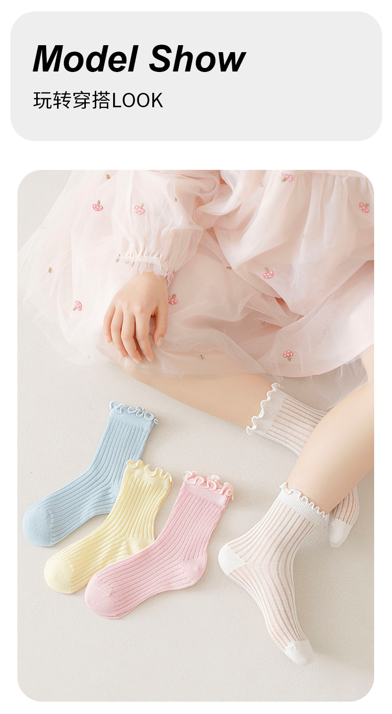 봄과 여름 소녀를위한 소녀의 뼈없는 양말 어린이 여름 얇은 메쉬 미드 튜브 양말을위한 한국식 나무 귀 더미 양말스토어 가기