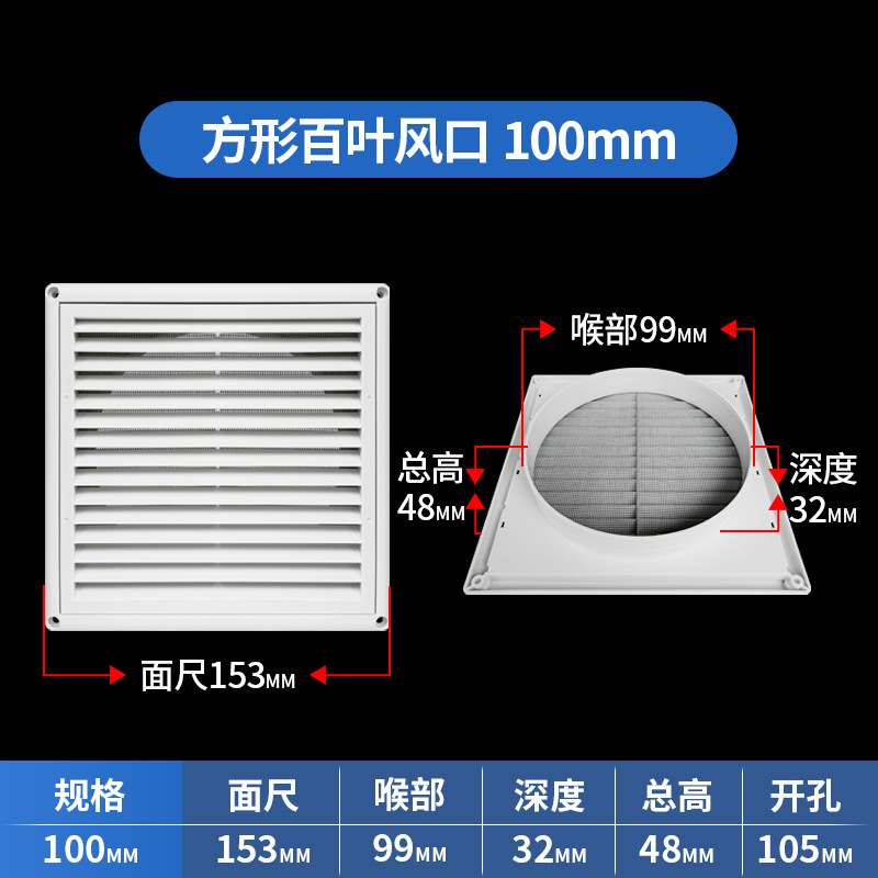 사각 루버 벤트 커버 배기 마스크 광장 둥근 신선한 에어컨 에어 아울렛 반환 공기 아울렛 장식 그릴스토어 가기