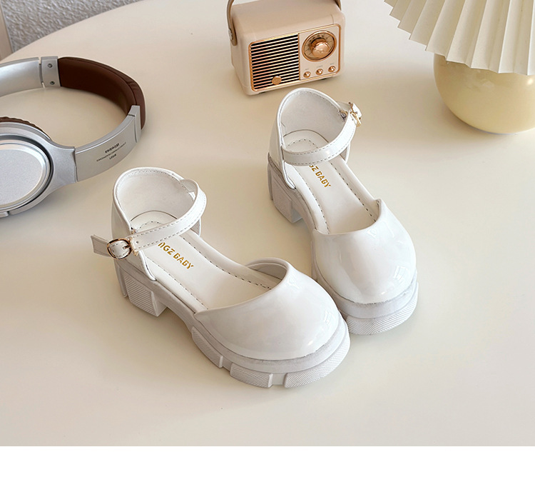 2025 봄과 가을 새로운 소녀 중공 가죽 신발 한국 두꺼운 밑창 가죽 어린이 샌들 패션 버클 어린 소녀 신발