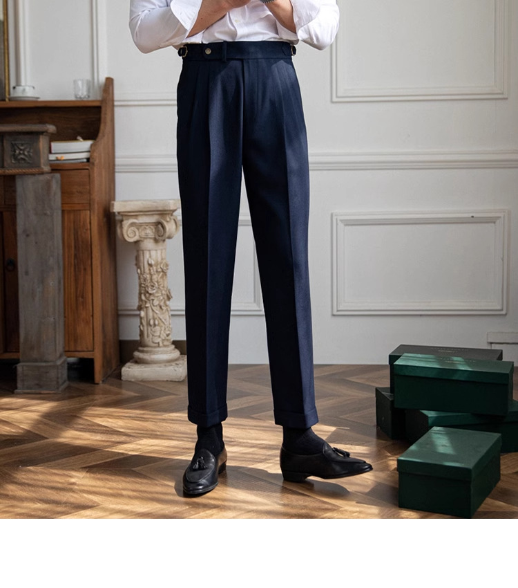 영국 남성 비즈니스 캐주얼 바지 하이 엔드 레트로 슬림 핏 발목 길이 바지 디자인 틈새 한국식 트렌디 바지