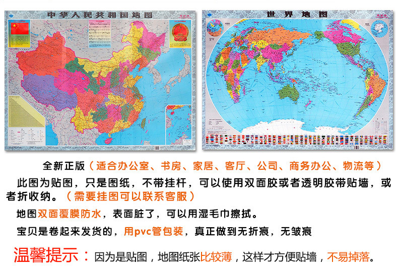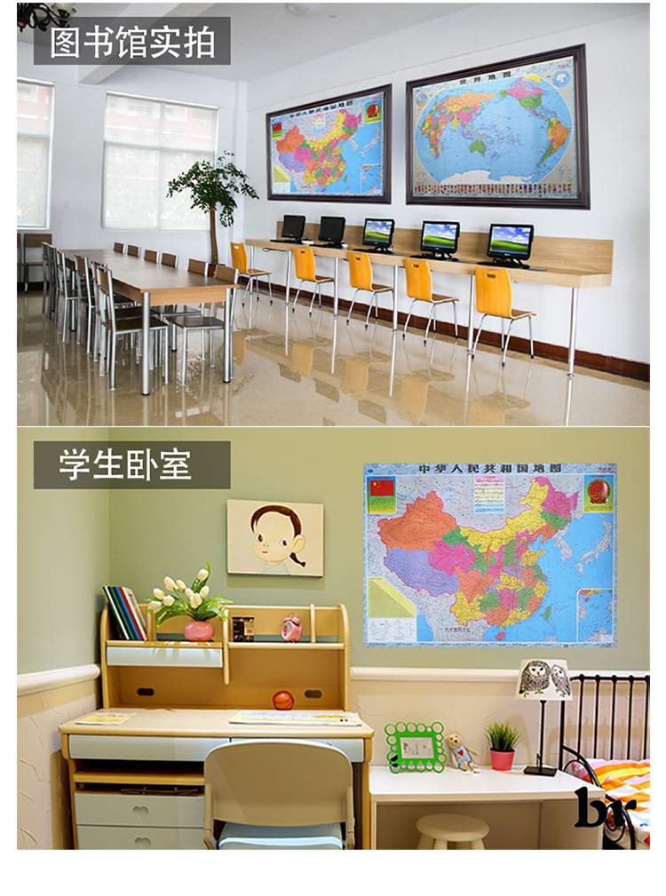 중국지도 2024 신판 및 세계지도 대형 중학교 및 초등학교 사무실 벽 스티커 벽지도스토어 가기