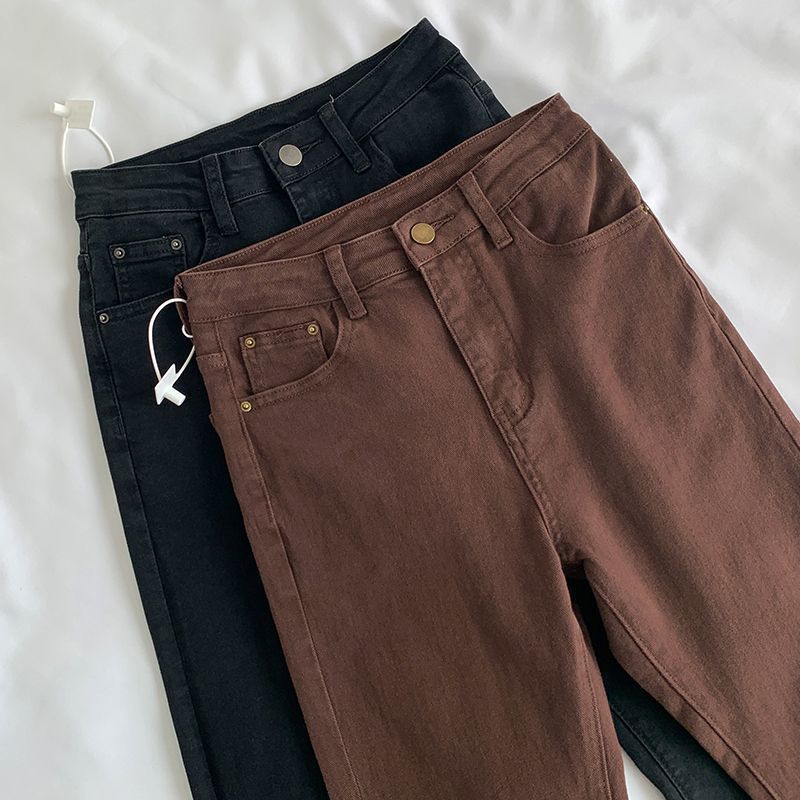 마이크로 플레어 청바지 여성용 높은 허리 새 가을과 겨울 꽉 슬림 스트레이트 스트레이트 루즈 트렌디 트레일 링 팬츠스토어 가기