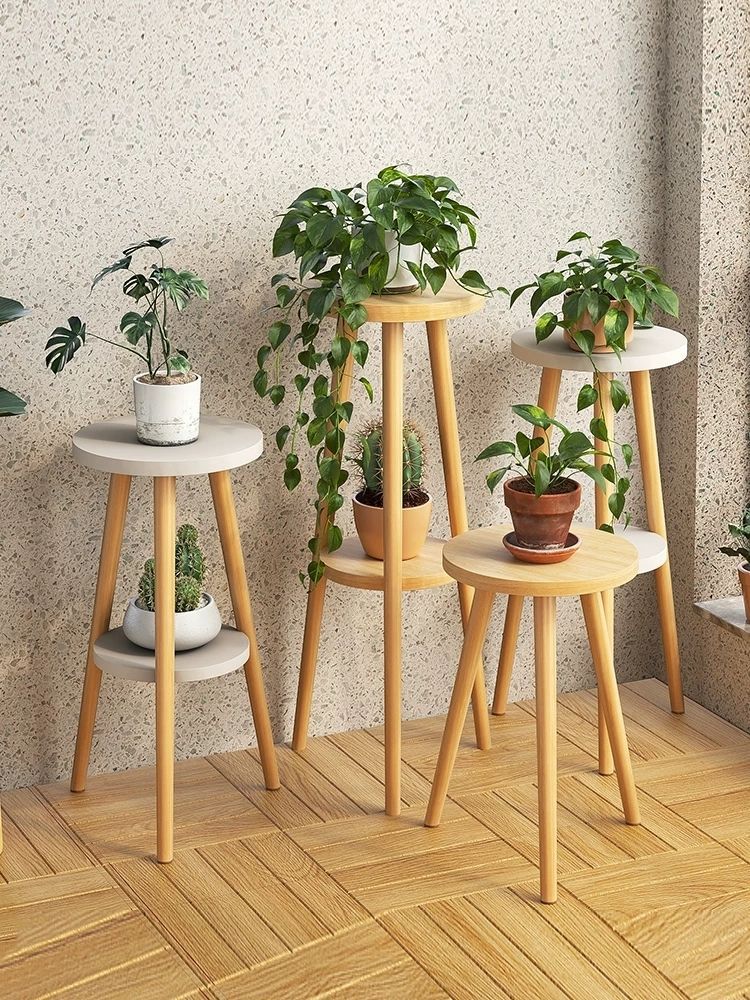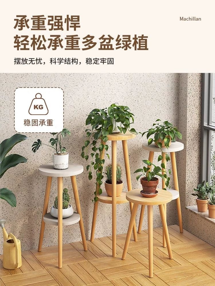 2025 새로운 꽃 랙 단단한 나무 저장 랙 발코니 식물 다층 꽃 냄비 선반스토어 가기