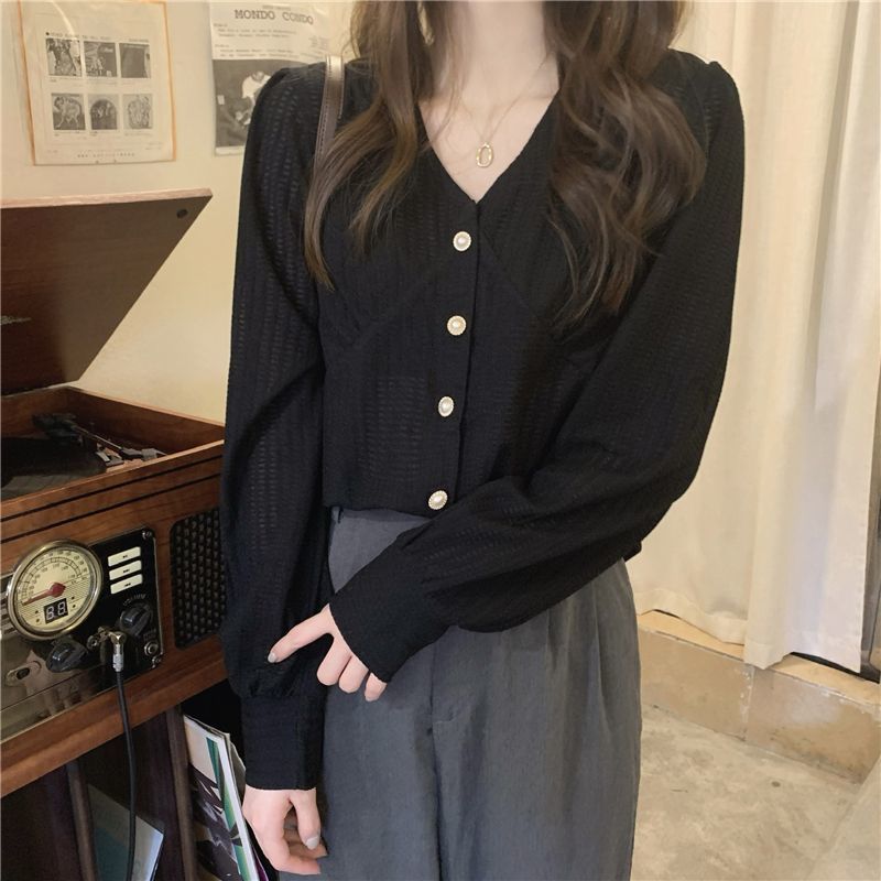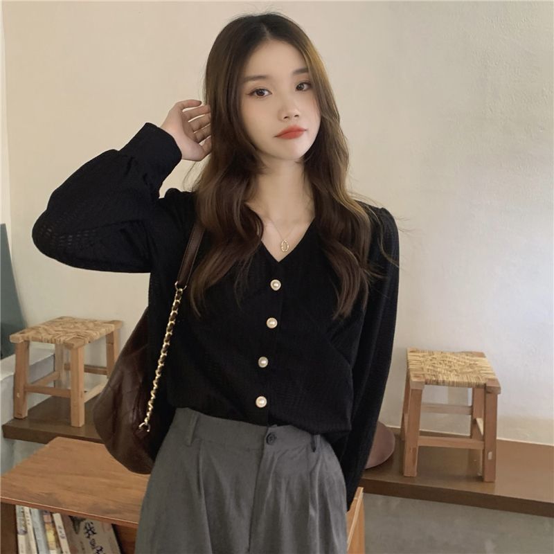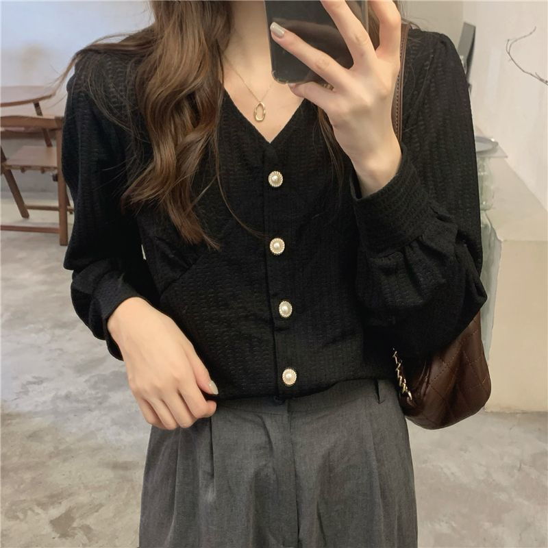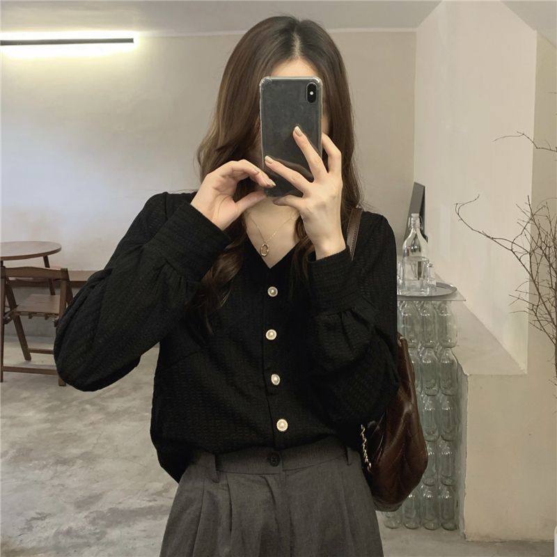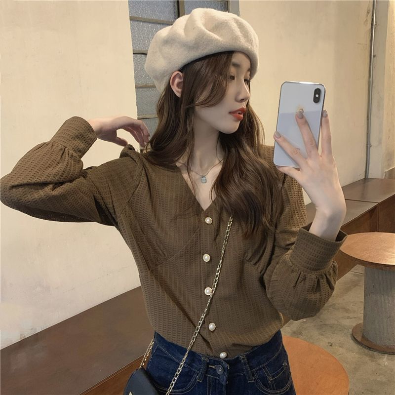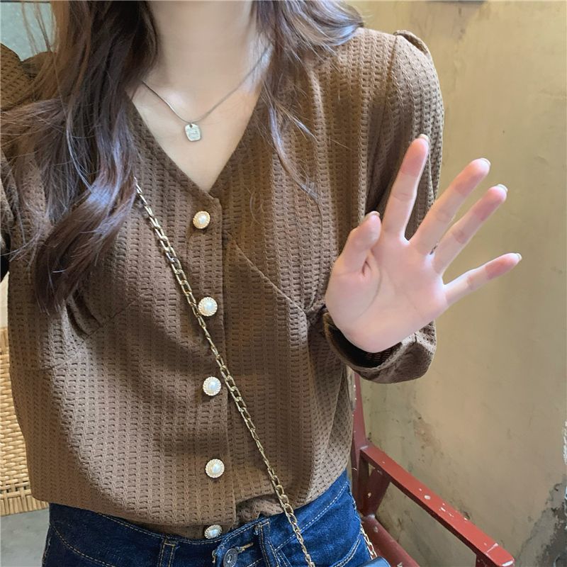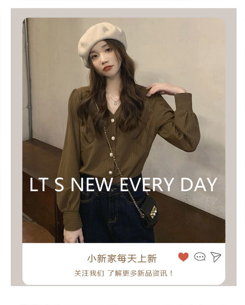 봄과 가을 원피스 2025 새로운 스타일 서양식 작은 셔츠 아름다운 칼라 고급 다크 브라운 프랑스 셔츠 여성 디자인 감각 틈새스토어 가기